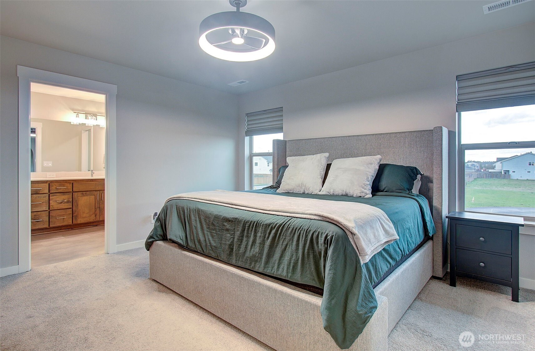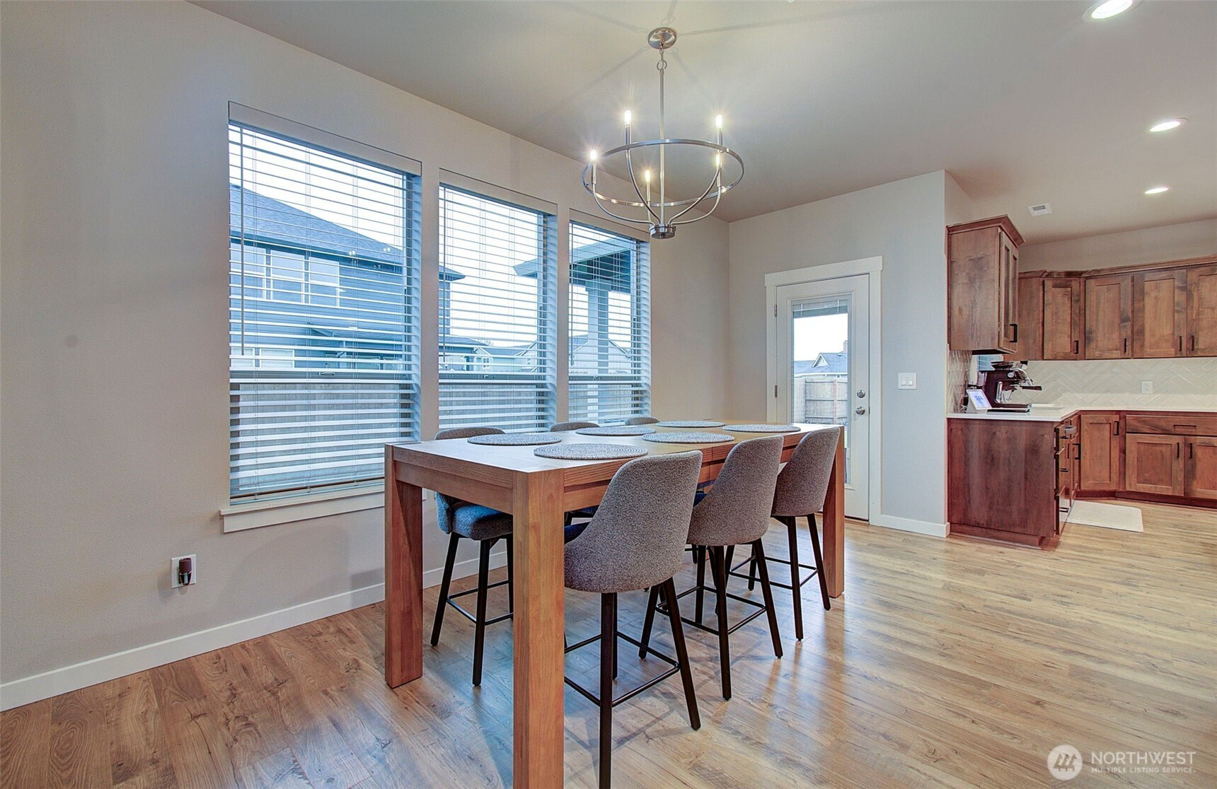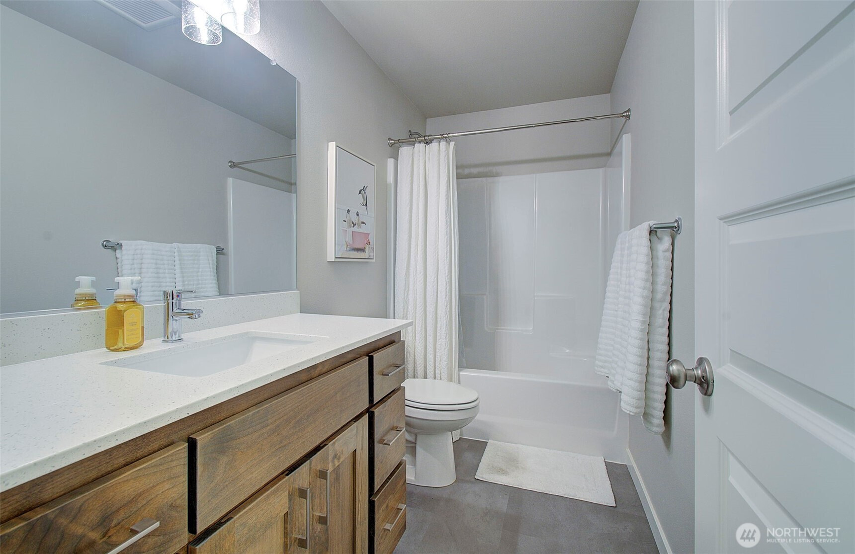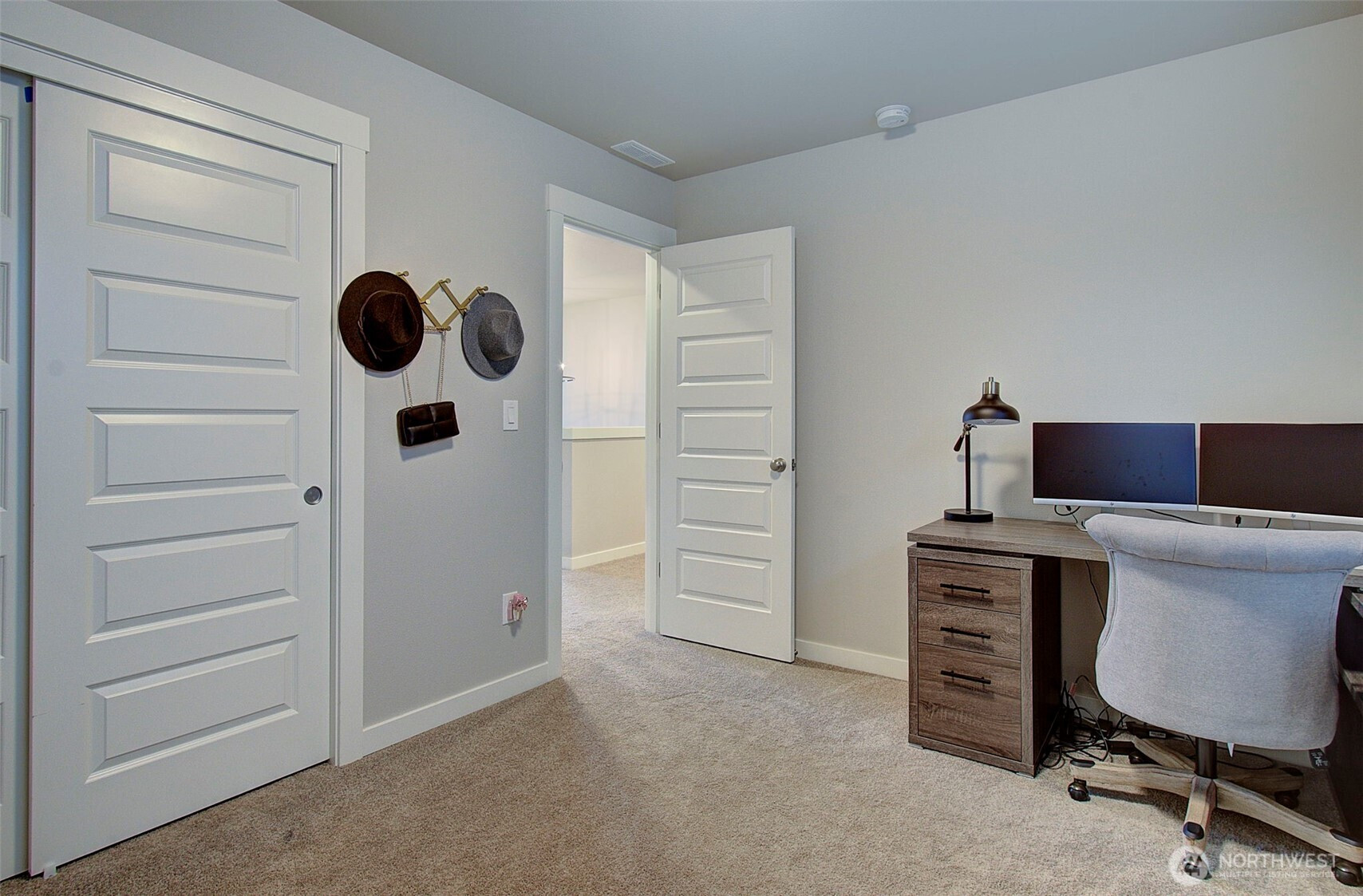 2024 build on large double corner lot near greenspace and open field. 2,295 sf with 4 bedrooms & main-floor den with French doors and 2 full baths. Quartz island kitchen with pantry, soft-close cabinets, stainless appliances and refrigerator included. Great room opens to a 13x11 covered patio and oversized fenced yard with sprinklers and above-ground pool negotiable. Primary suite features custom walk-in closet, soaking tub and walk-in shower. Washer and dryer included. Heat pump with AC, smart thermostat, luxury vinyl plank floors and finished 2-car garage. Enjoy modern finishes and plenty of smart storage. Nearly .30ac, min to shopping and schools in quiet Brush Prairie. Structural builder warranty believed transferable (buyer to verify).