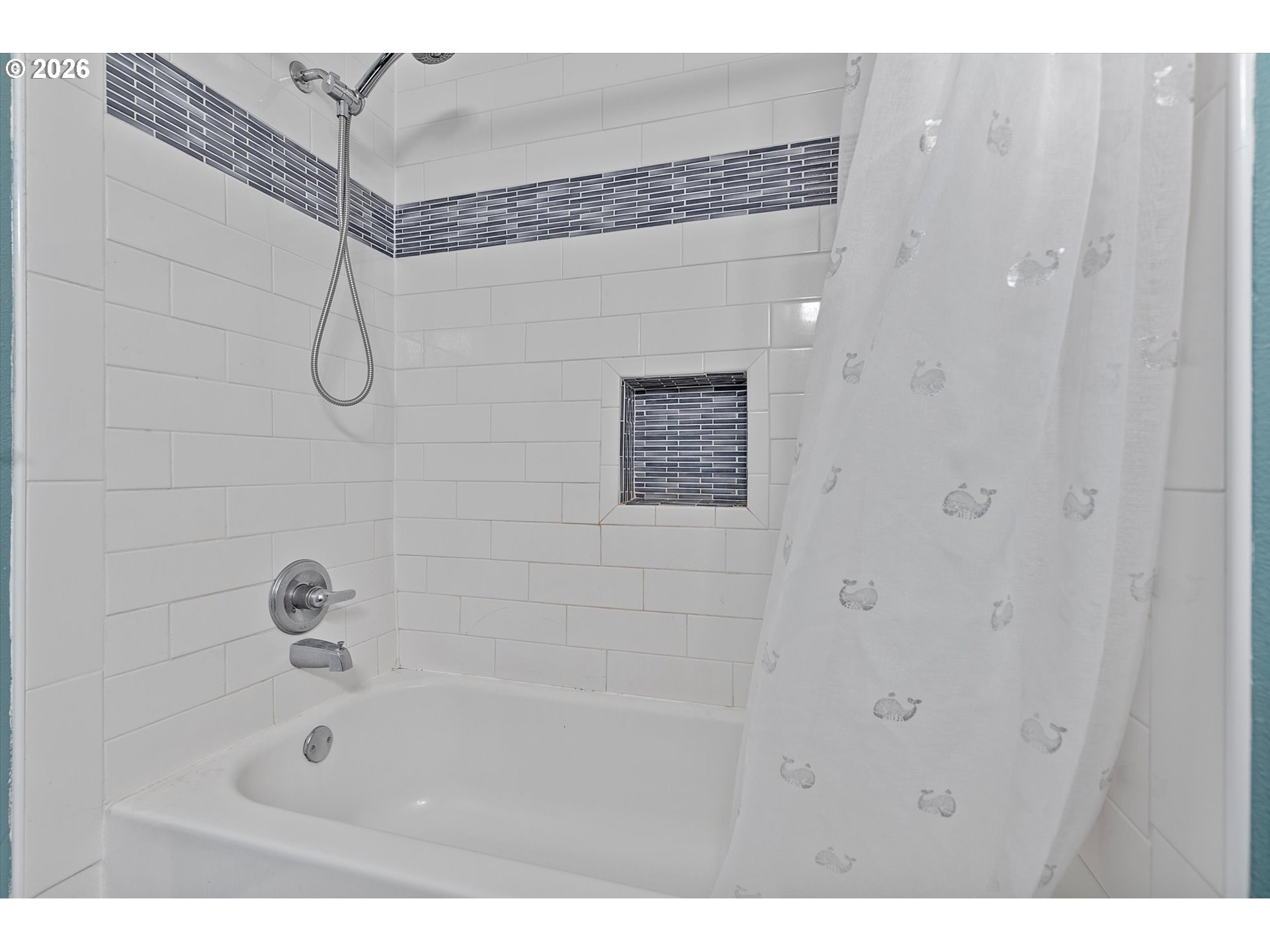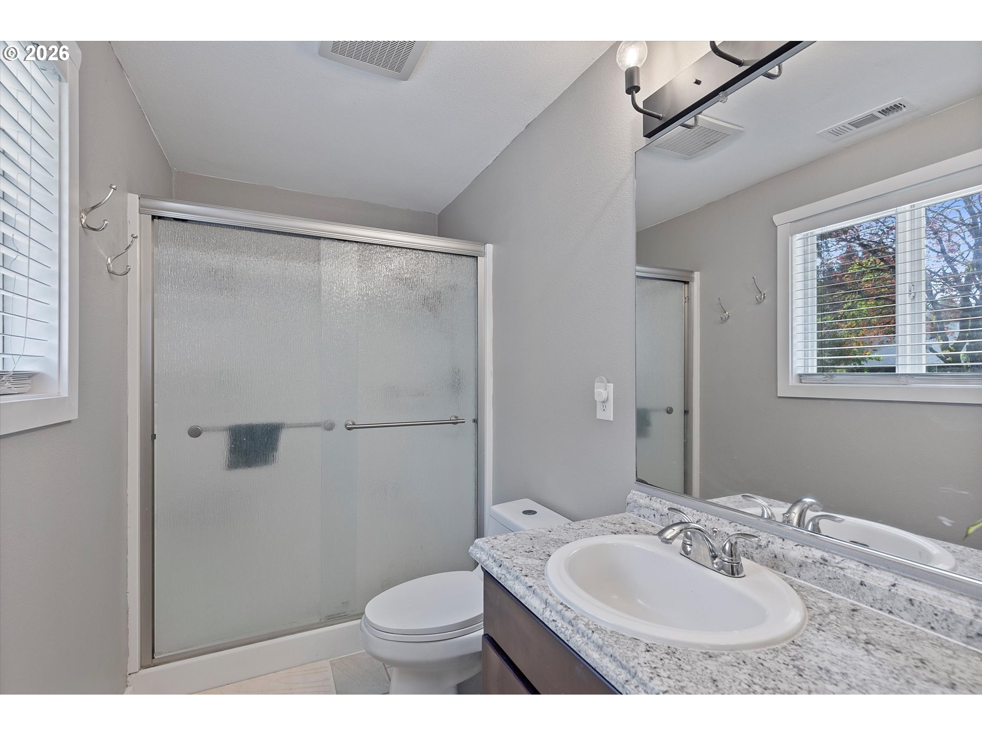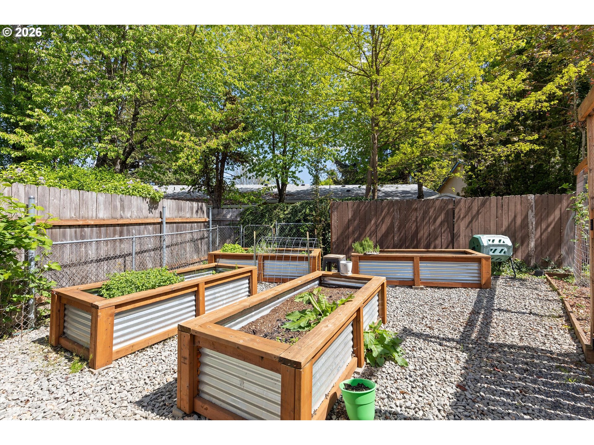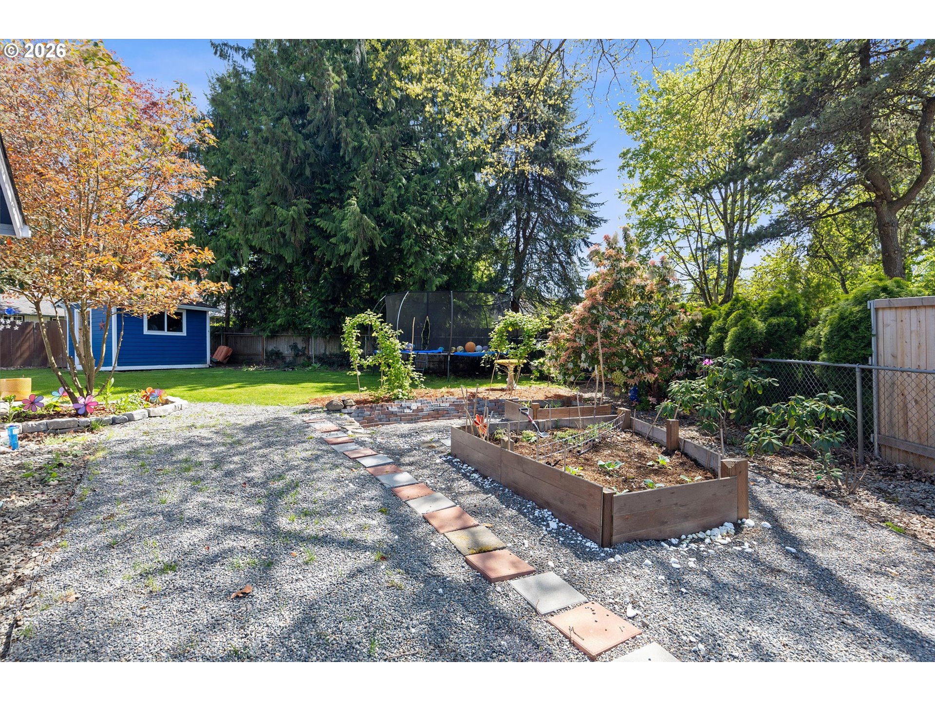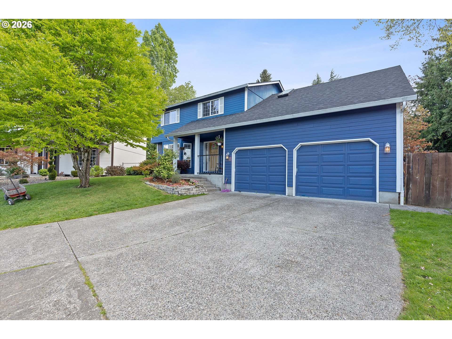 You pull into the driveway and it finally clicks... this is what they mean when they say "curb appeal". Mature trees, lush landscaping, and a bold blue exterior make this home easy to fall in love with and hard to forget. The front porch just big enough to actually use, and a two car garage that has room for everything that needs to disappear. Inside, the main level opens into a spacious living and dining space perfect for quiet nights in or entertaining. The kitchen has been thoughtfully updated with granite counters, stainless appliances, and a peninsula that keeps you connected to the rest of the room. The window above the sink looks straight out into the backyard, which makes even doing dishes feel less like a chore. The laundry room is thoughtful. Custom cabinetry to the ceiling, a hanging rod, a wood bench, and a washer and dryer already in place. It's the kind of detail that makes daily life feel a little more organized. Upstairs, a vaulted primary bedroom with skylights pulls in natural light and feels genuinely like an oasis. The backyard is where this home really delivers. Raised garden beds with corrugated steel sides, a fully fenced lawn, a covered patio for eating outside even when it's sprinkling, and a matching blue shed tucked in the back corner that's ready for tools, projects, or whatever you need it to be.On a quarter acre lot. Four bedrooms. Two and half baths. Room to spread out, room to grow, room to dream. Come see it.