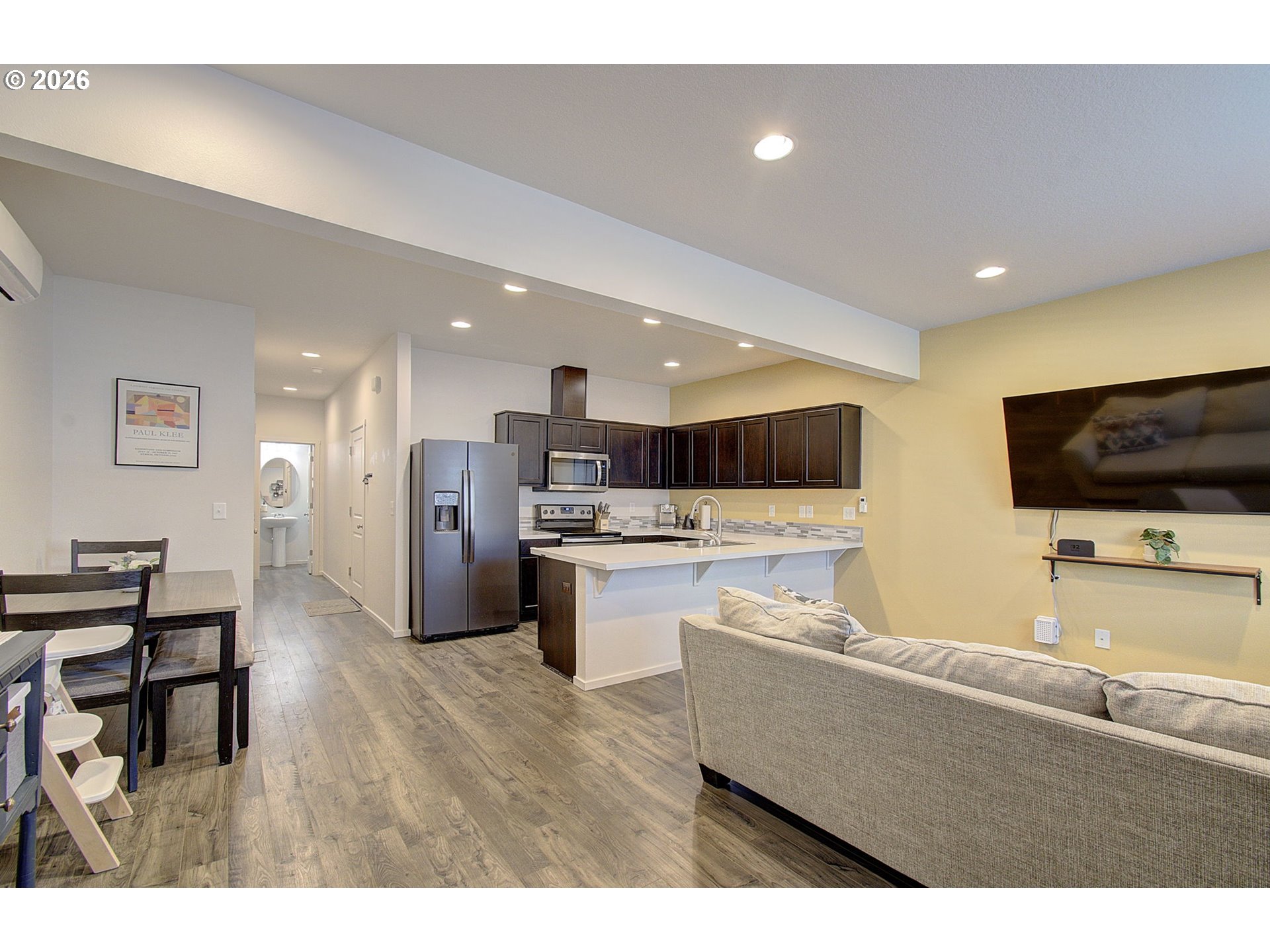 Spacious living without the upkeep! This 3BR - 2.5BA town home lives large with an open 1446sqft floor plan. The main level features durable laminate flooring, kitchen hosting a built-in microwave, dishwasher and slow close cabinets and drawers. Upstairs laundry makes for efficient access. Wall to wall carpet and rear facing one-car garage with a long and wide driveway giving ample space for parking. The HOA covers exterior community maintenance and landscaping, offering truly low-maintenance living and includes access to a fully fenced community dog park nearby.