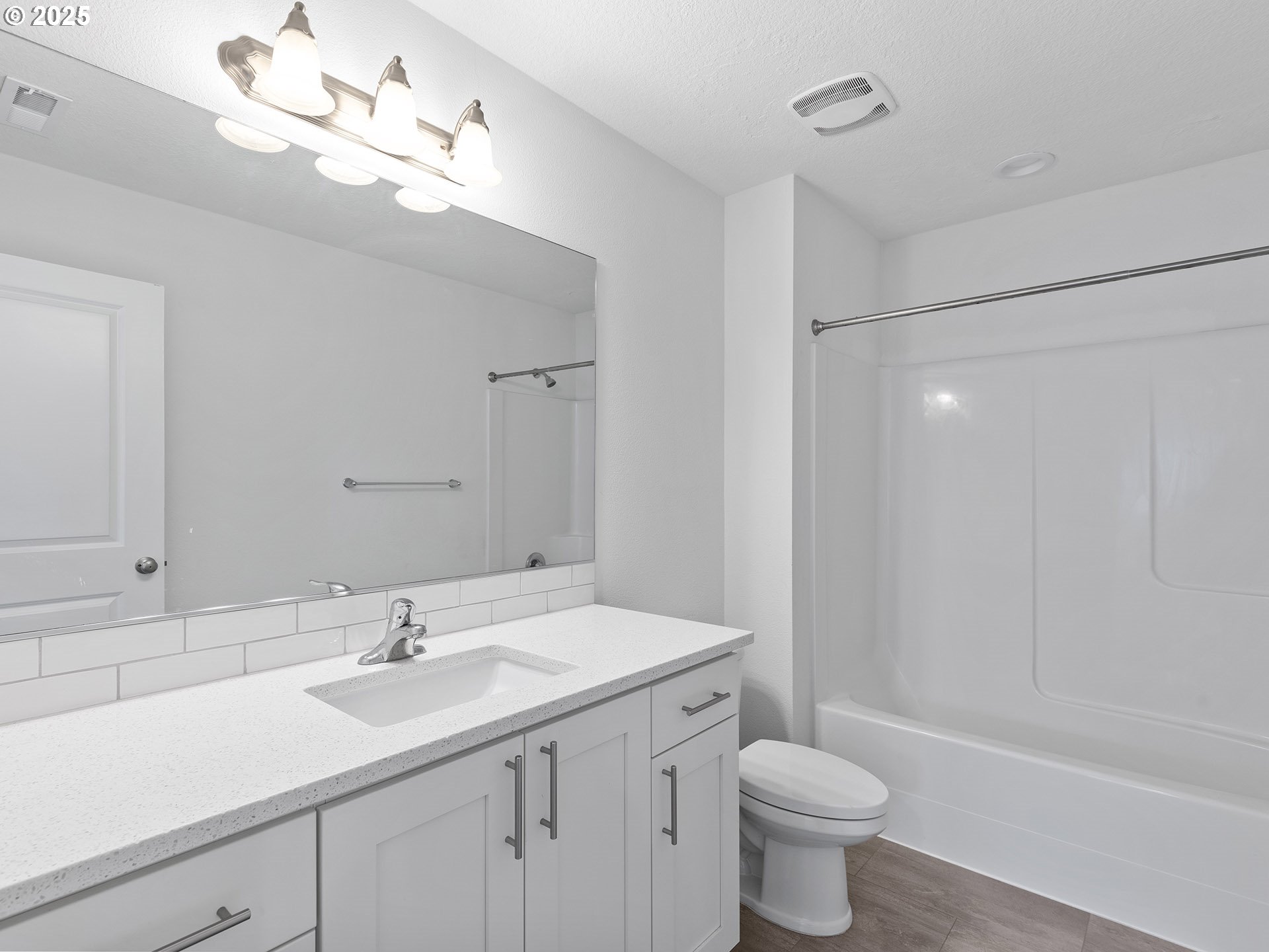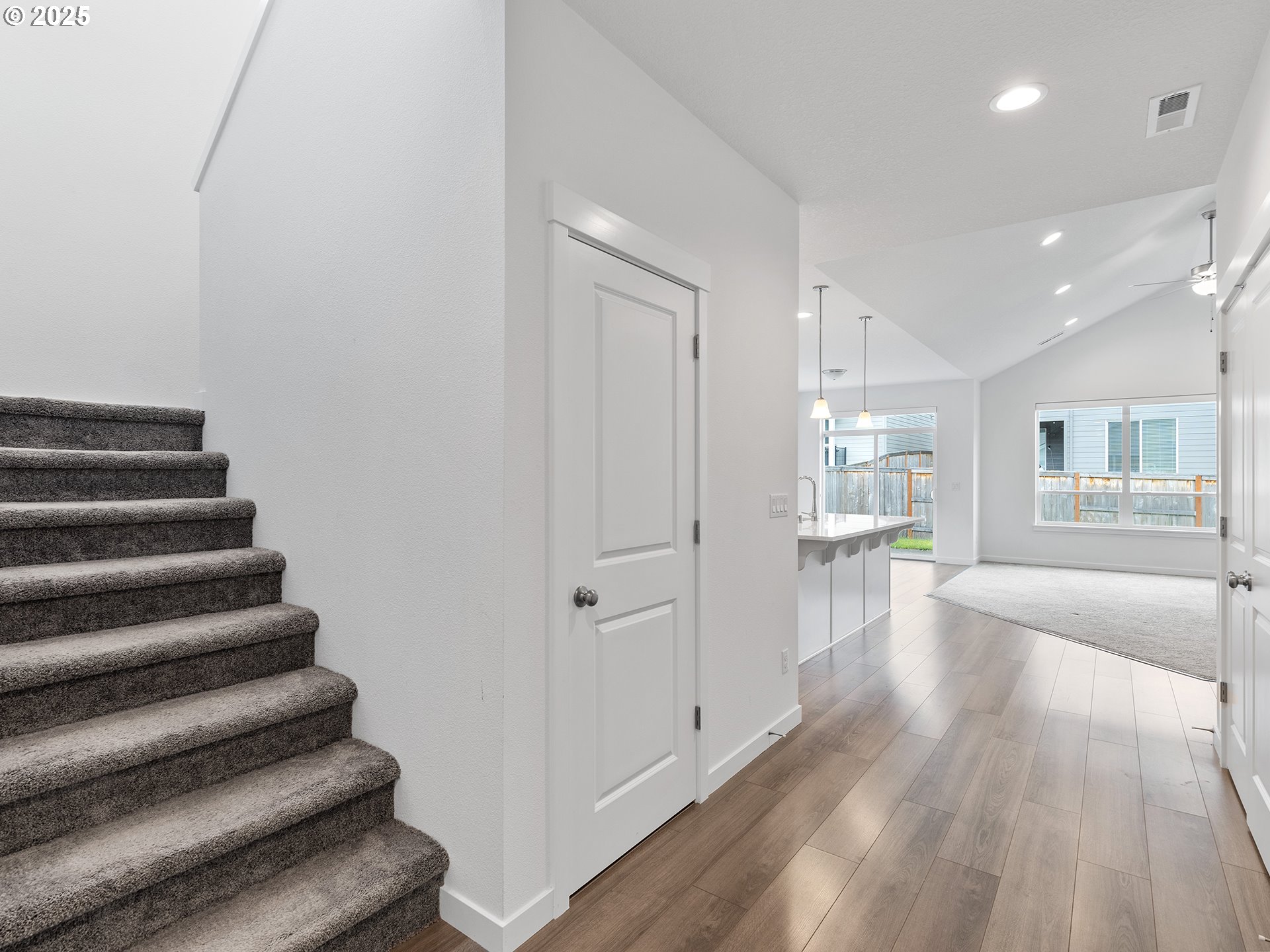 Primary on Main! This home has been thoughtfully designed with massive vaulted ceilings in the living room that make the space feel open and airy. A cozy fireplace serves as a stunning focal point, complemented by massive windows that bathe the space in natural light. The kitchen feels inviting with a large island, a perfect place for entertaining or a quick meal, and is equipped with a built-in oven, built-in microwave, induction stove, and hook up for a gas stove, making this kitchen feel high-end. The primary bedroom is conveniently located on the main level and includes a generously sized ensuite including a walk-in shower, soaking tub, double sinks and walk-in closet. Upstairs you will find a large, versatile loft that can be used as a second living space, along with two bedrooms and full size bathroom. Step outside to a sprawling, level yard that is ideal for gardening, play, or future outdoor enhancements. This home also offers an oversized utility room with storage, and sink -- a perfect landing spot before entering the home from the 3-car garage. Just minutes away from downtown Battle Ground and surrounding schools, this home is ready to be yours!