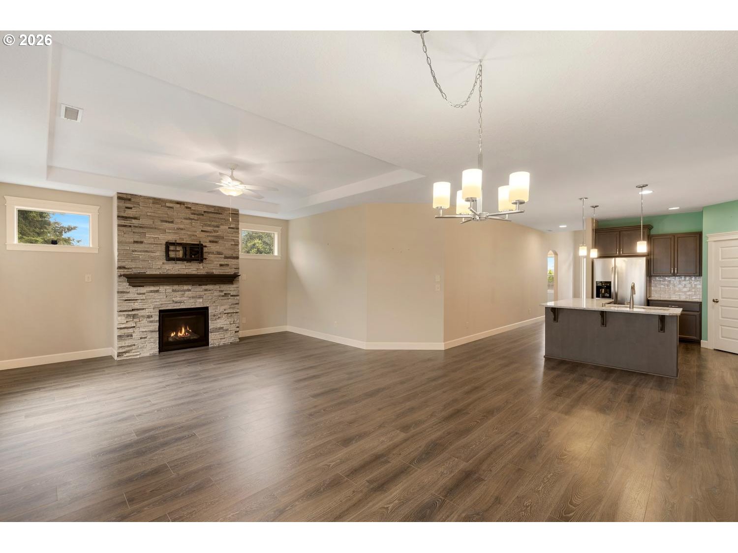 CeilingFan, Coved, Fireplace