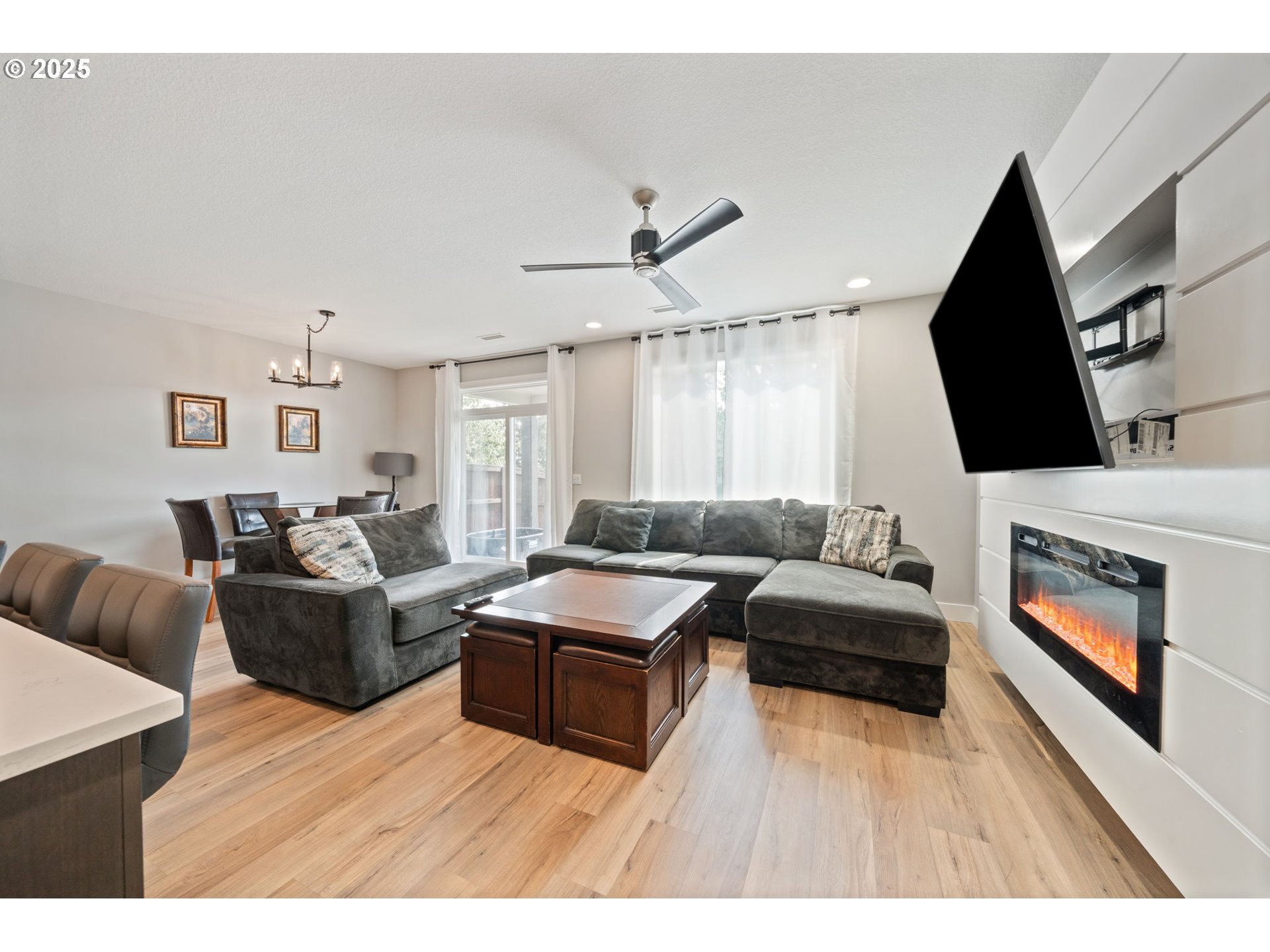 OPEN HOUSE this Saturday 11/1 from 10am - 12pm! Experience luxurious, low-maintenance living in this stunning NW Contemporary townhome. Designed with modern style and convenience in mind, this home offers both comfort and sophistication. Step outside to a private, fully fenced backyard featuring a covered patio, and easy-care turf lawn—perfect for year-round enjoyment. The community amenities enhance your lifestyle with open green spaces, walking paths, a children’s play area, and gathering spots with tables and benches. Inside, the heart of the home is a show-stopping kitchen featuring a large island, white quartz countertops, modern dark cabinetry, and a spacious corner pantry. A slide-in stainless steel gas range, microwave, and dishwasher elevate both form and function. The open living area is anchored by a sleek linear electric fireplace with a custom shiplap accent wall, creating a warm yet contemporary focal point. Upstairs, discover three generously sized bedrooms plus a versatile loft—ideal for a home office, playroom, or lounge. The primary suite features a walk-in closet with built-in organizers for effortless storage. Bathrooms have been thoughtfully upgraded with white quartz counters and dark cabinetry that combine everyday practicality with spa-like design. Every detail has been curated for style and ease, from the finishes to the floor plan. Whether entertaining friends and family, enjoying quiet evenings by the fire, or exploring the community amenities, this townhome offers the perfect blend of sophistication and comfort in a desirable setting just 15 minutes to Portland.