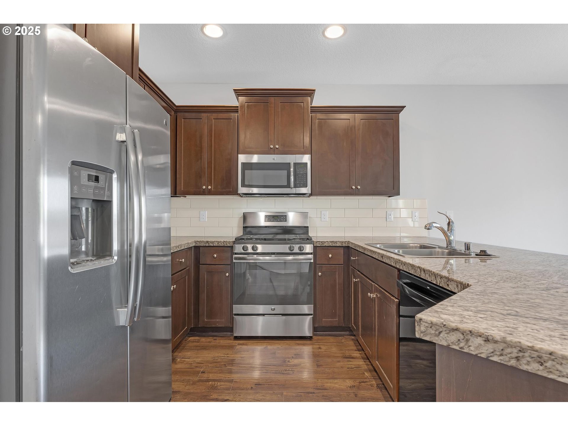New interior paint and carpet (Aug 2025)! Situated on a spacious corner lot, this 2016-built home offers a 3-car garage, 4 bedrooms, 2.5 baths, plus a main-level office/den. The open floor plan features a bright great room with gas fireplace, dining area, and a modern kitchen with island seating, stainless steel appliances, and ample storage. Upstairs, the primary suite includes a walk-in closet and private bath with dual vanities. Fully fenced backyard with patio (uncovered) provides outdoor living space. Convenient upstairs laundry. Excellent location close to schools, shopping, and freeway access. Truly move-in ready!
