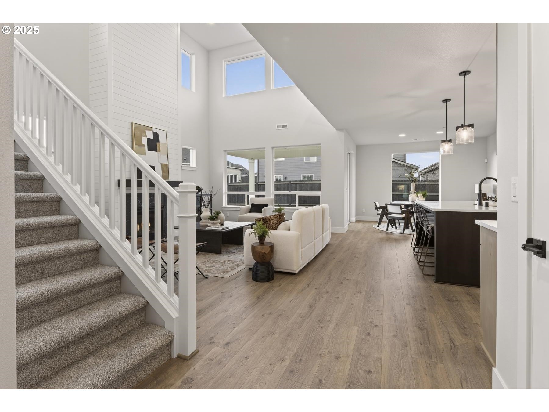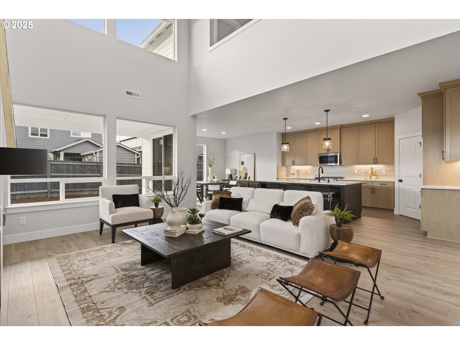 (503) 893-8874This thoughtfully designed home showcases a dramatic two-story great room filled with natural light and a floor plan tailored for today’s lifestyle. Offering 4 bedrooms, the home features a well-appointed kitchen with a large island, slab countertops, and stainless steel appliances—perfectly positioned within an open-concept layout ideal for both entertaining and everyday living. Professionally designed and move-in ready, the home is complemented by a generously sized, fully landscaped and fenced yard. Smart Home technology is included. Located in a beautiful gated community within a highly sought-after school district, the neighborhood offers walkable access to local shopping and direct trail connections. Conveniently close to Downtown Ridgefield, the Wildlife Refuge, Costco, and I-5.