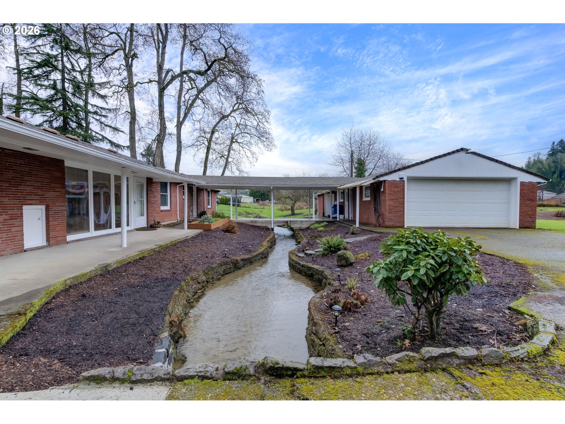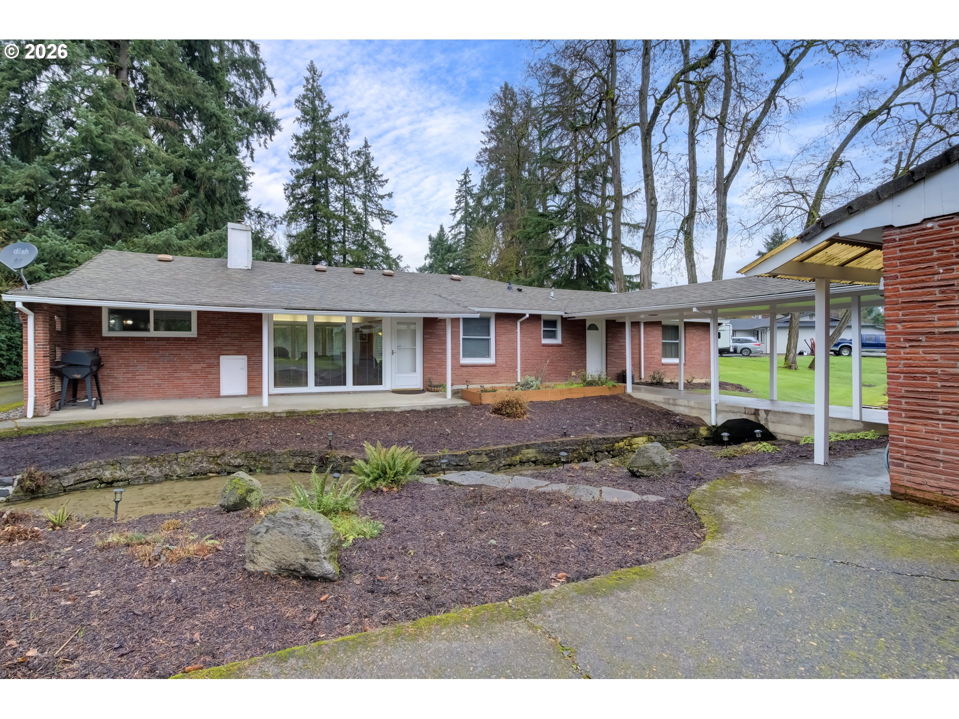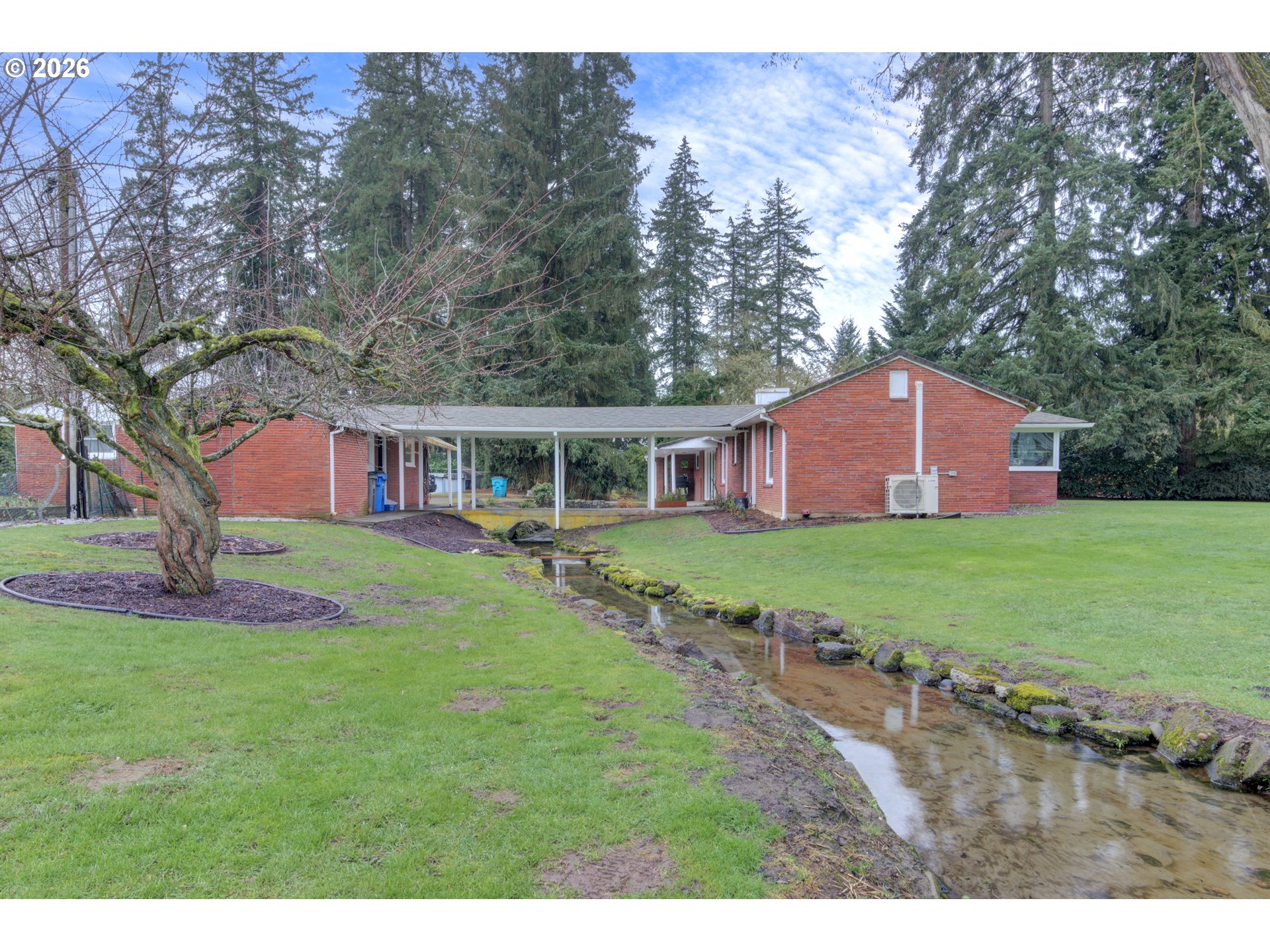 ONE LEVEL BRICK HOME ON THE CREEK. 3 bedrooms, 1 bathroom, 1379 sqft, on a .83 acre property. Large living room w/ laminate flooring & pellet stove. Office/den is vaulted w/ wood stove & small closet (which makes the 3rd bedroom). Kitchen has stainless appliances and the refrigerator is included. Formal dining room w/ laminate floors. Primary bedroom w/ ceiling fan & two closets. Second bedroom w/ two closets. Bathroom is all tile w/ one sink & a shower/tub. Laundry room has lots of storage. Home includes Milgard windows, ductless heat pump and has been PUD weatherized with added insualation in the attic, so utility bills are very low. Public water and private septic. Oversized 2 car detached garage has tons of room and is connected to the house by a breezeway that bridges over Fern Creek, which runs through the property. A covered back patio sits right on the creek and overlooks the partially fenced acreage that includes a large yard, garden, fruit trees & above ground pool. Excellent Salmon Creek location near freeways, shopping & restaurants. This place is remarkable.