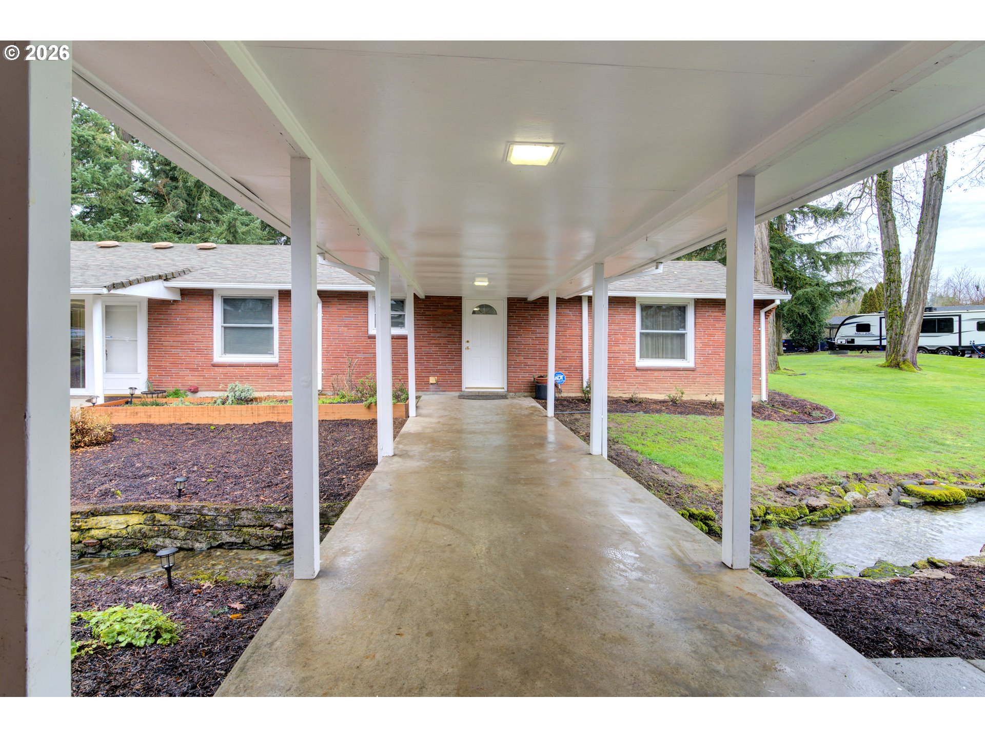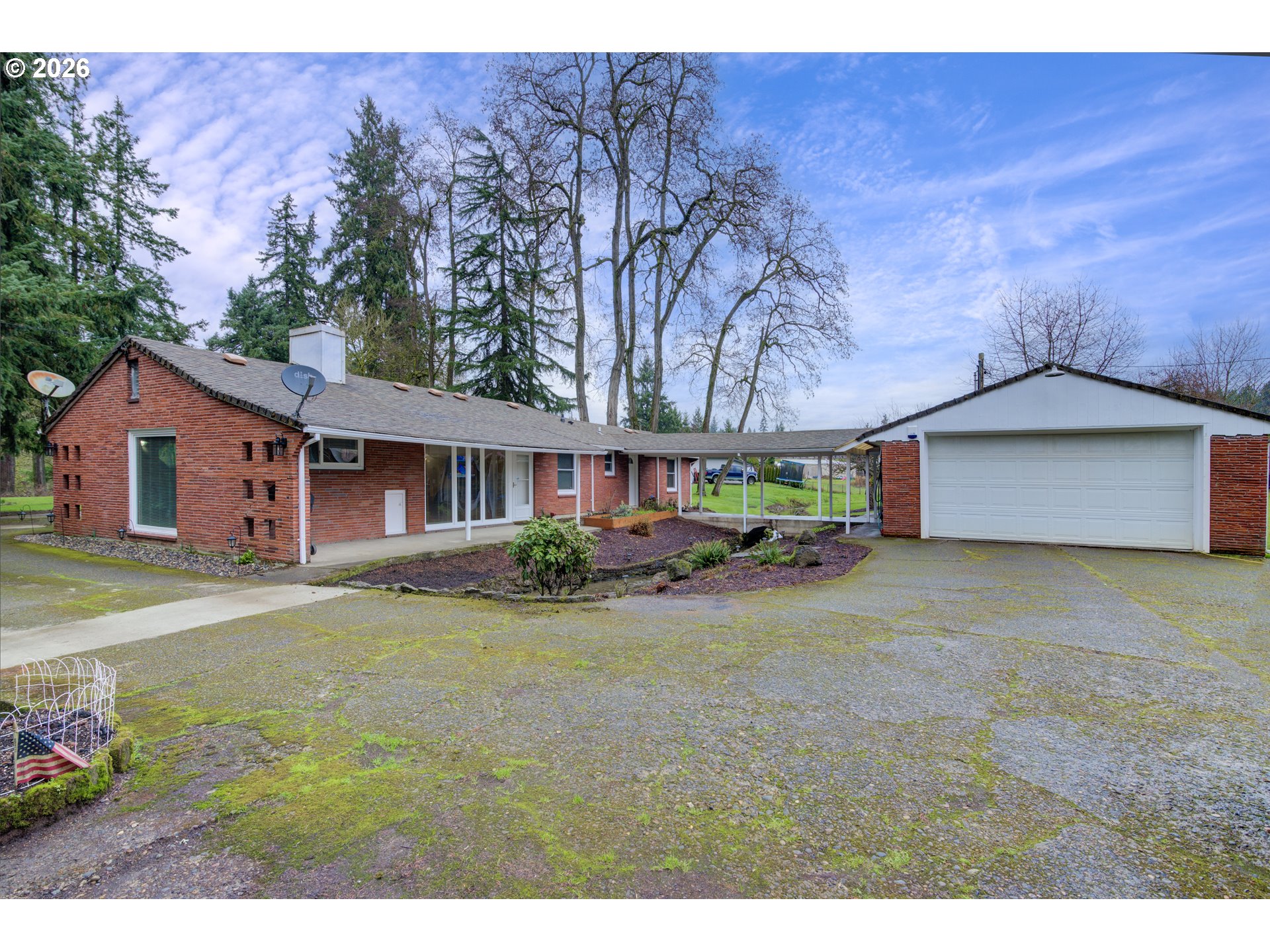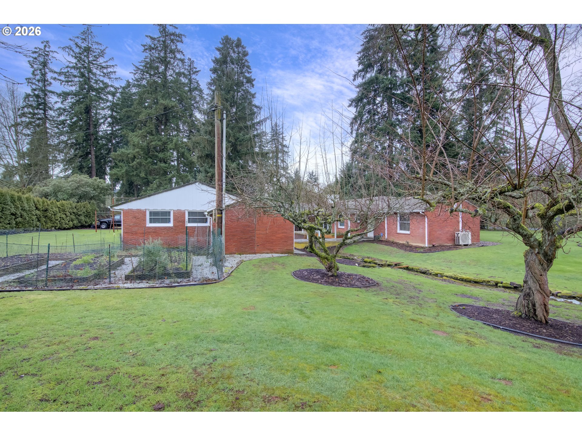 ONE LEVEL BRICK HOME ON THE CREEK. 3 bedrooms, 1 bathroom, 1379 sqft, on a .83 acre property. Large living room w/ laminate flooring & pellet stove. Office/den is vaulted w/ wood stove & small closet (which makes the 3rd bedroom). Kitchen has stainless appliances and the refrigerator is included. Formal dining room w/ laminate floors. Primary bedroom w/ ceiling fan & two closets. Second bedroom w/ two closets. Bathroom is all tile w/ one sink & a shower/tub. Laundry room has lots of storage. Home includes Milgard windows, ductless heat pump and has been PUD weatherized with added insualation in the attic, so utility bills are very low. Public water and private septic. Oversized 2 car detached garage has tons of room and is connected to the house by a breezeway that bridges over Fern Creek, which runs through the property. A covered back patio sits right on the creek and overlooks the partially fenced acreage that includes a large yard, garden, fruit trees & above ground pool. Excellent Salmon Creek location near freeways, shopping & restaurants. This place is remarkable.