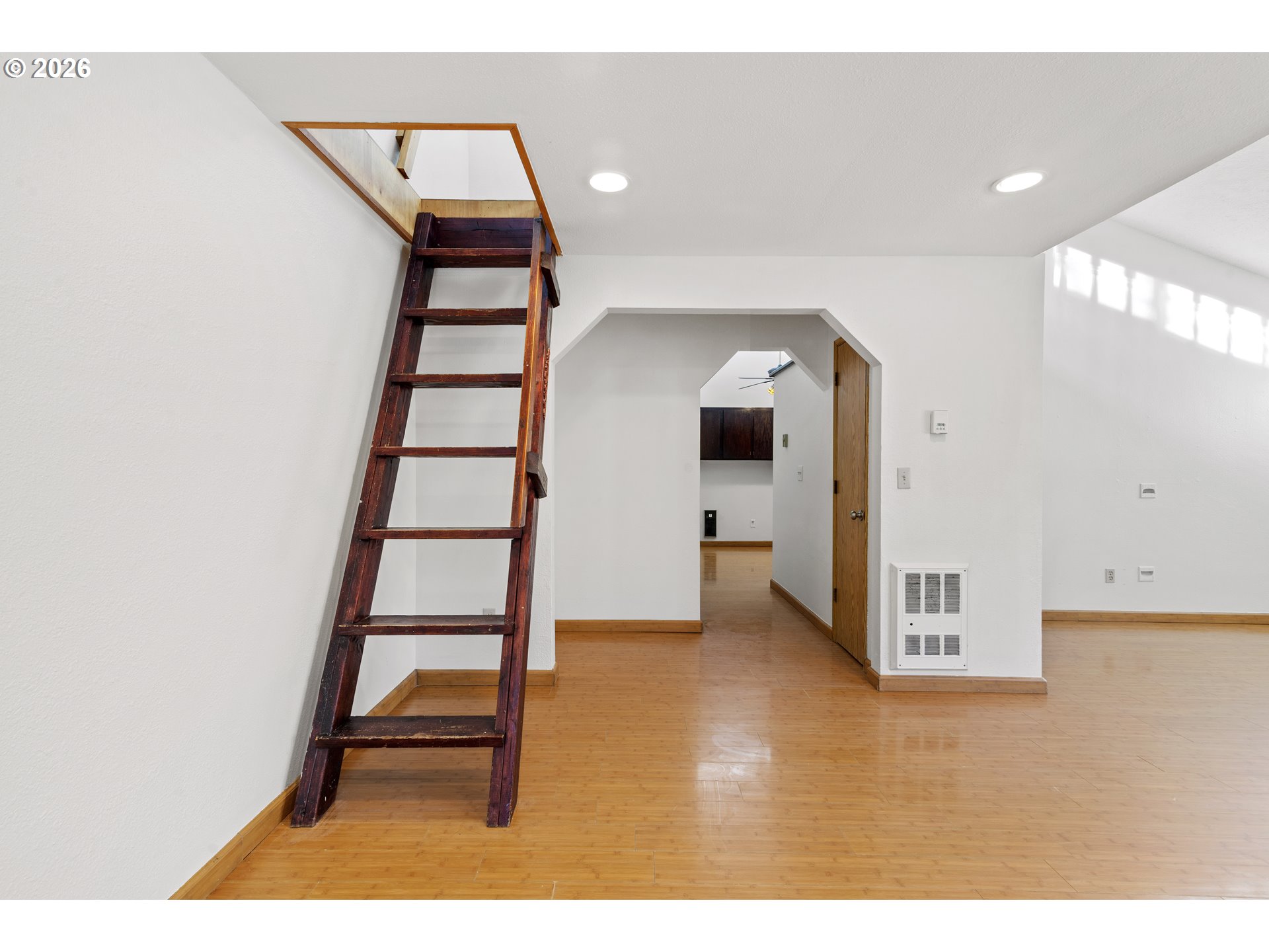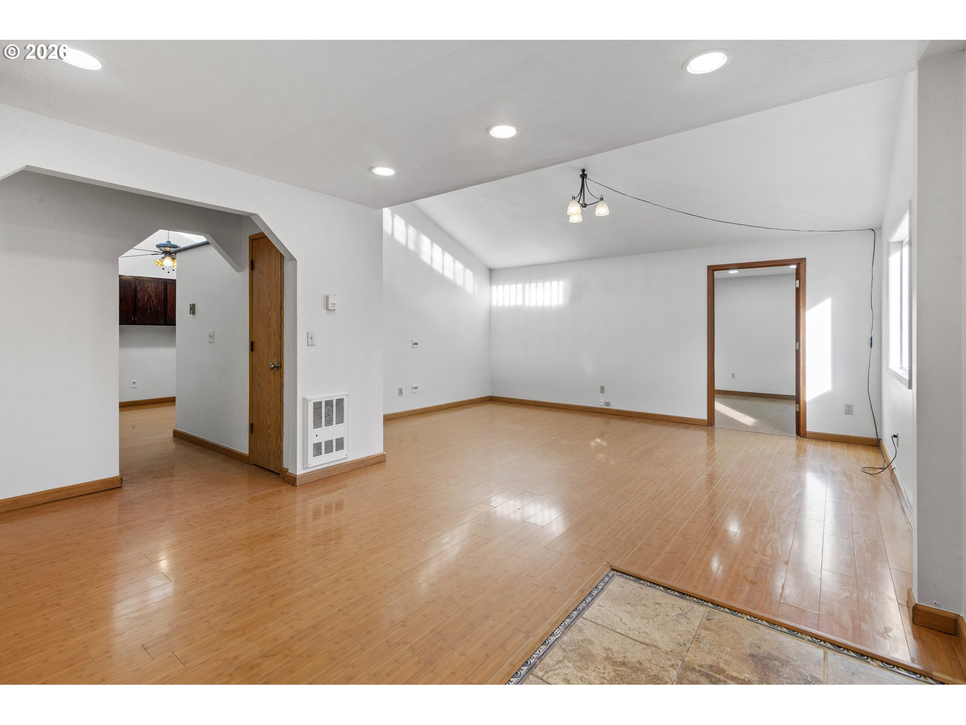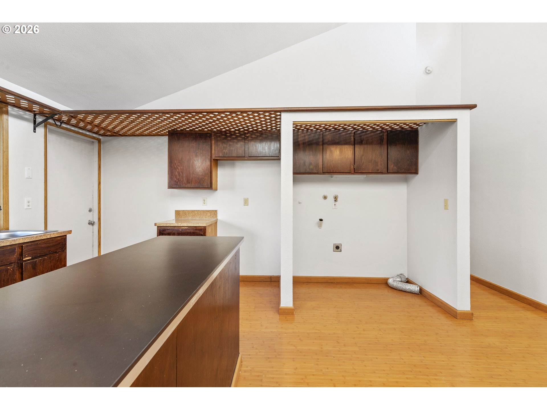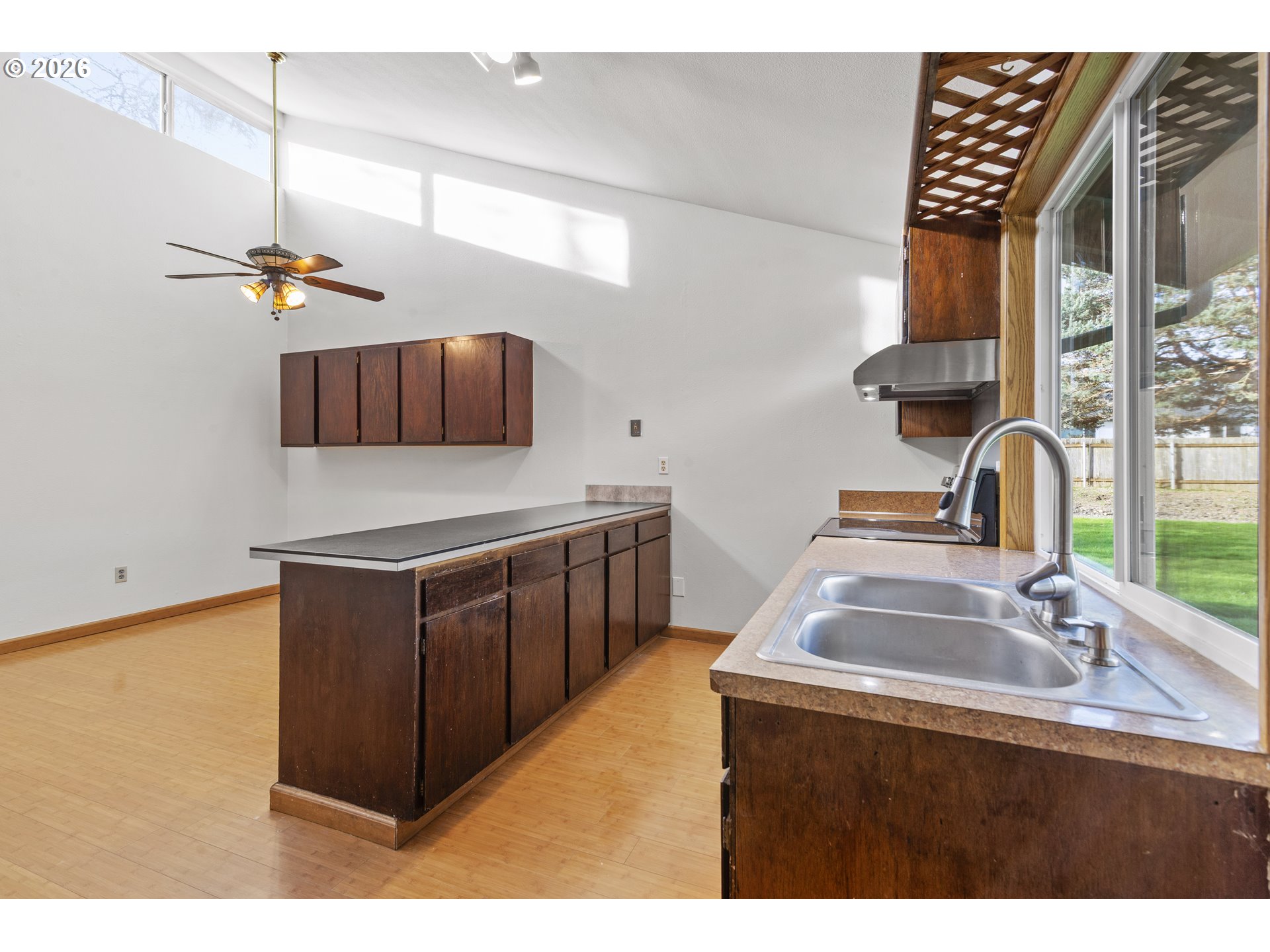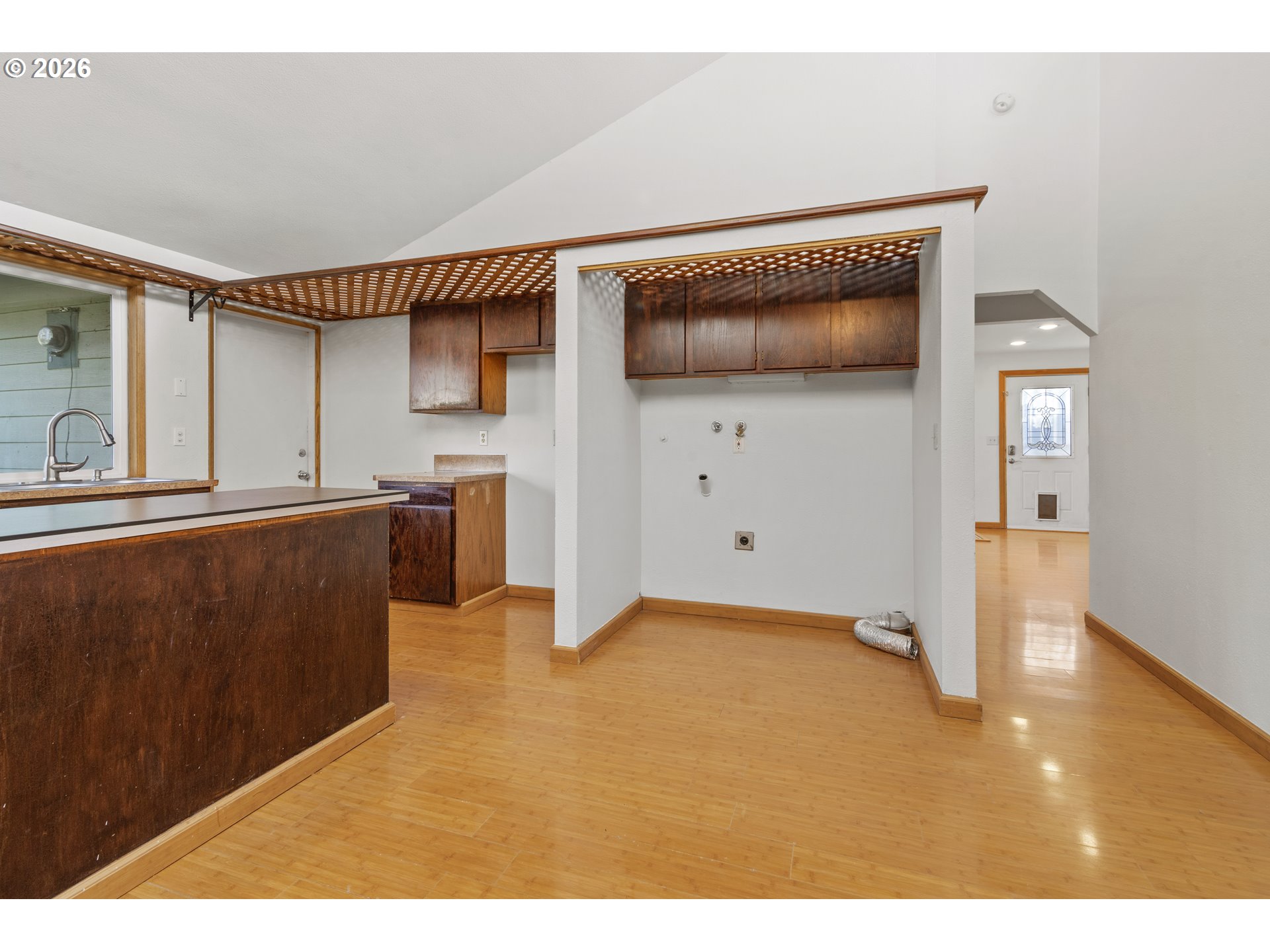GREAT ONE LEVEL HOME IN SALMON CREEK. 3 bedrooms + office, 2 bathrooms, 1388 sqft, backing to greenspace. Home has bamboo flooring throughout. Vaulted living room with door to the home office (which is built into a partial garage conversion). Loft above living room is not included in square footage. Kitchen has large peninsula, new dishwasher & opens to the vaulted dining room w/ ceiling fan & built-ins. Primary bedroom has a full bathroom w/ shower. Bedrooms 2 & 3 are large w/ closets. Laundry closet inside. 1 1/2 car garage. Small yard area w/ private deck, garden beds & tool shed. Home backs to a large community green space that also offers sport courts, RV storage & more.