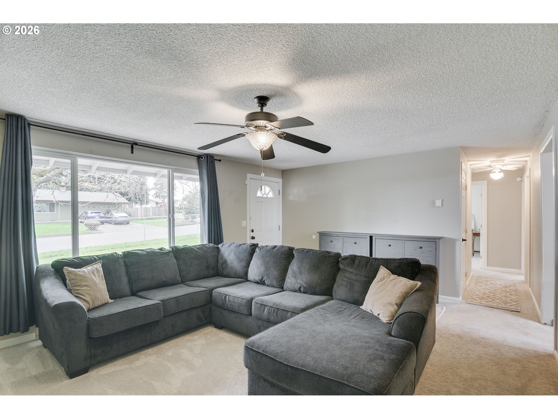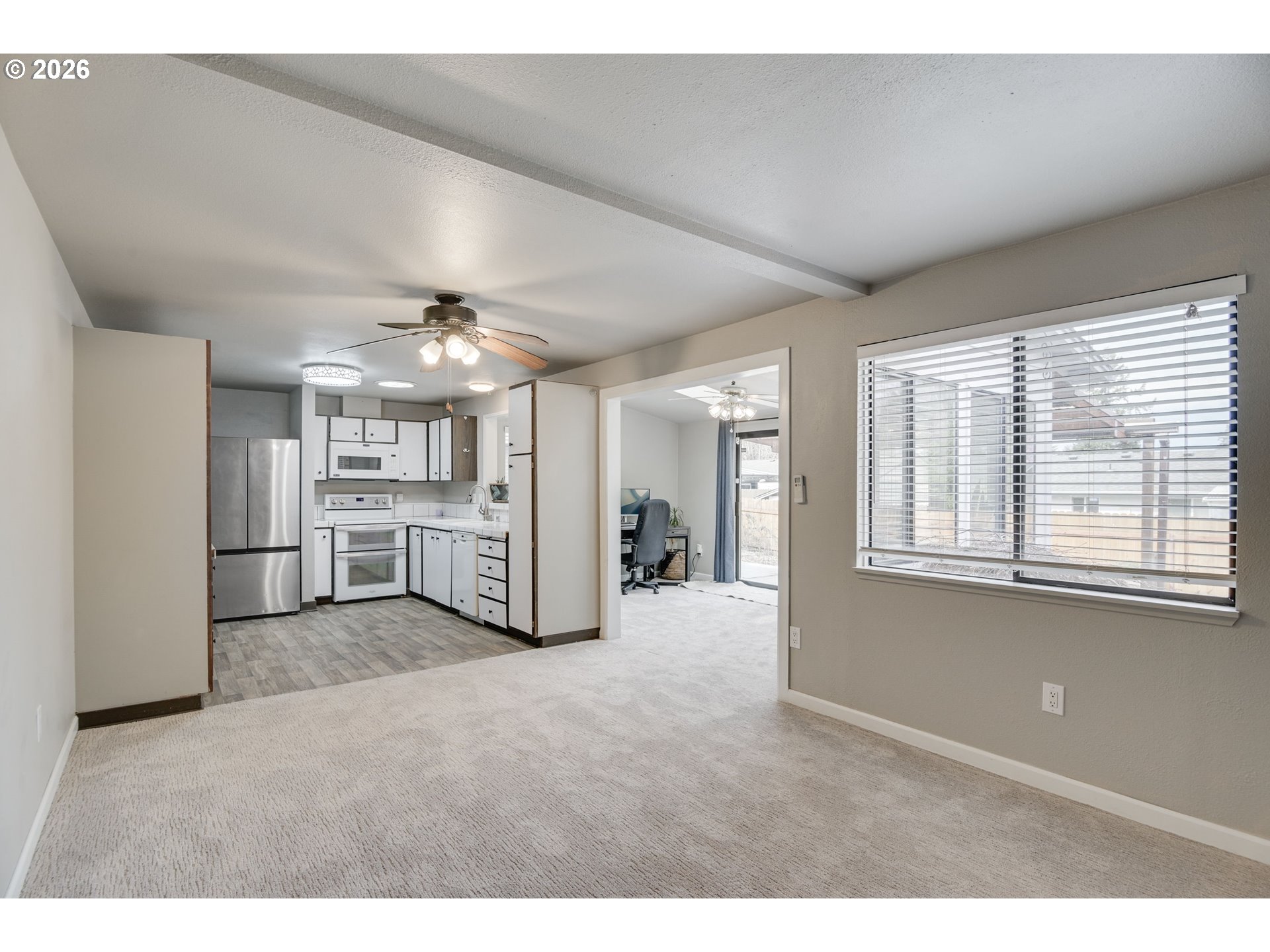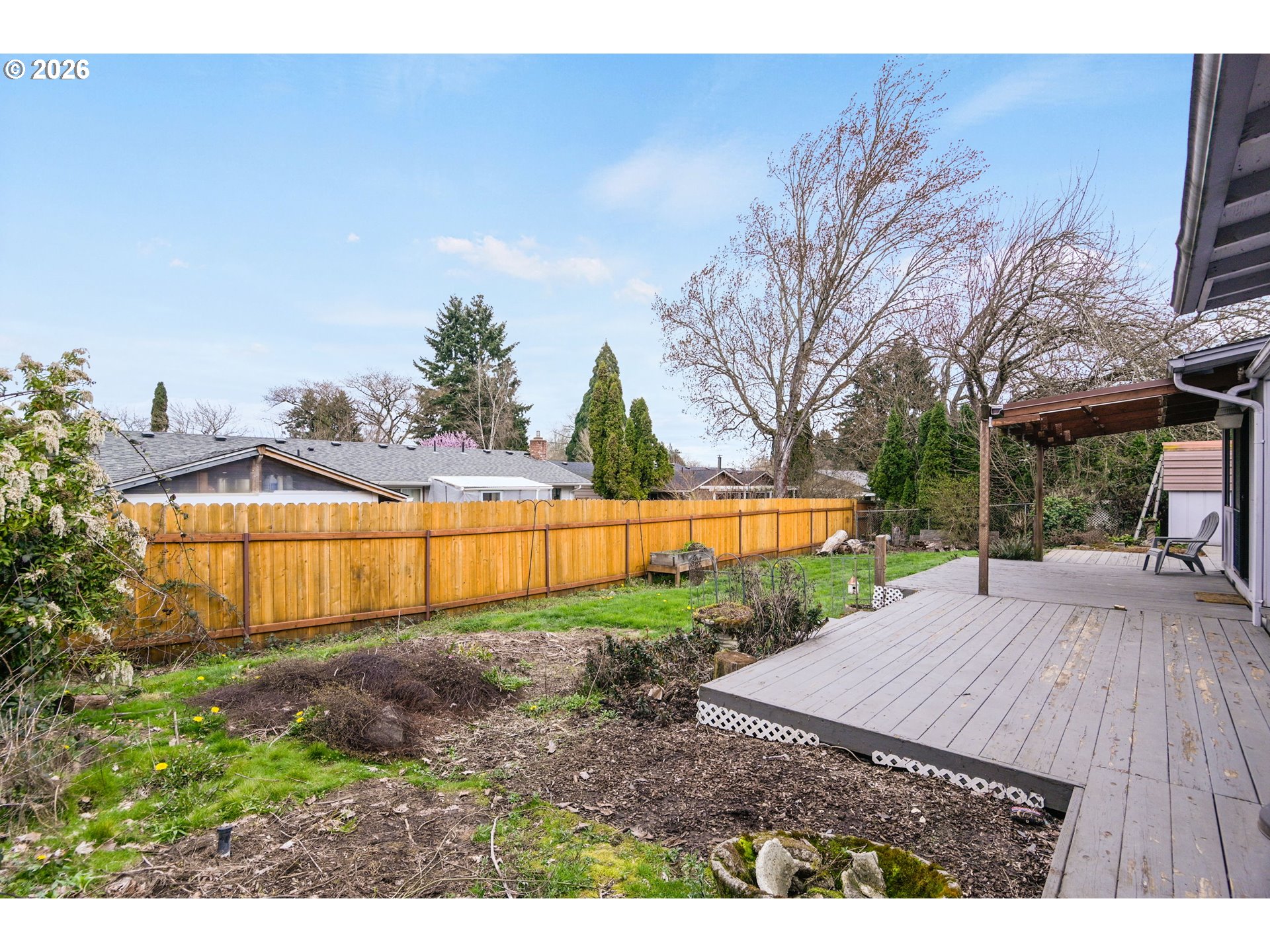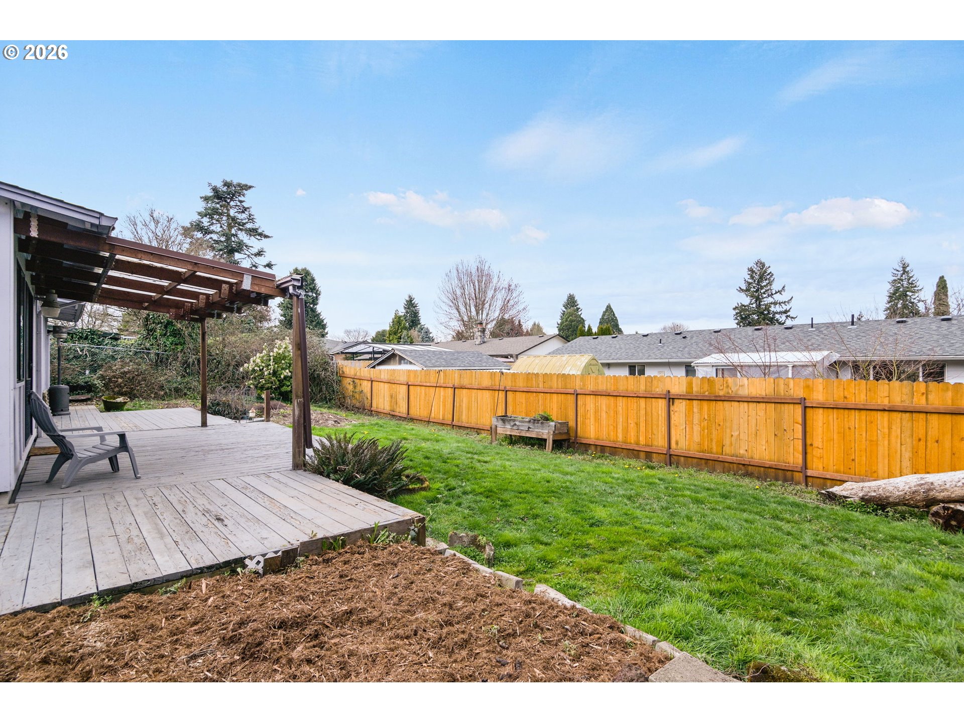 This westside 3 bedroom, 2 bathroom house offers a spacious and flexible living space. The home features an abundance of natural light throughout, creating a bright and airy atmosphere. The open layout includes a spacious living area with a fireplace, providing a comfortable gathering space. The kitchen is equipped with ample cabinetry, offering generous storage options. Adjacent to the kitchen, the large dining area seamlessly transitions to the bonus living area and covered patio, allowing for indoor-outdoor living. The primary bedroom features a walk-in closet and access to a private deck. The bathrooms are thoughtfully designed, with one serving as the en-suite for the primary bedroom. The home's exterior features a spacious lot with mature landscaping and a fenced yard, providing a private oasis. The property also offers RV parking, accommodating a variety of vehicles. Situated in a great neighborhood, this home is conveniently located for an easy commute. The home has been well-maintained, with updated carpeting throughout. The single-level floor plan offers overall comfort and accessibility of the space.