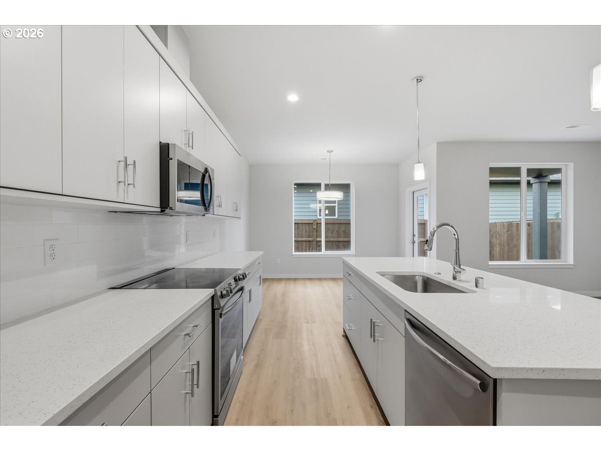 Brand-new two-story home offering 3 bedrooms, open loft, 2.5 bathrooms, and a large 3 car garage perfect for a variety of lifestyles and family sizes. This home showcases the design, craftsmanship, quality & features you would want & expect in your new home. Custom finished cabinetry, woodwork, lighting & fixtures throughout. Stylish kitchen with island, walk-in pantry, quartz countertops and stainless Frigidaire Gallery Appliances. Spacious great room with modern linear fireplace, opening to large covered outdoor living area ideal for entertaining and BBQs. Primary suite with double sinks and a walk-in closet. Beautifully landscaped yard complete with sprinkler system & full fencing for privacy & convenience. Central A/C included for year-round comfort. Quick access to Padden, 1-205 and shopping.