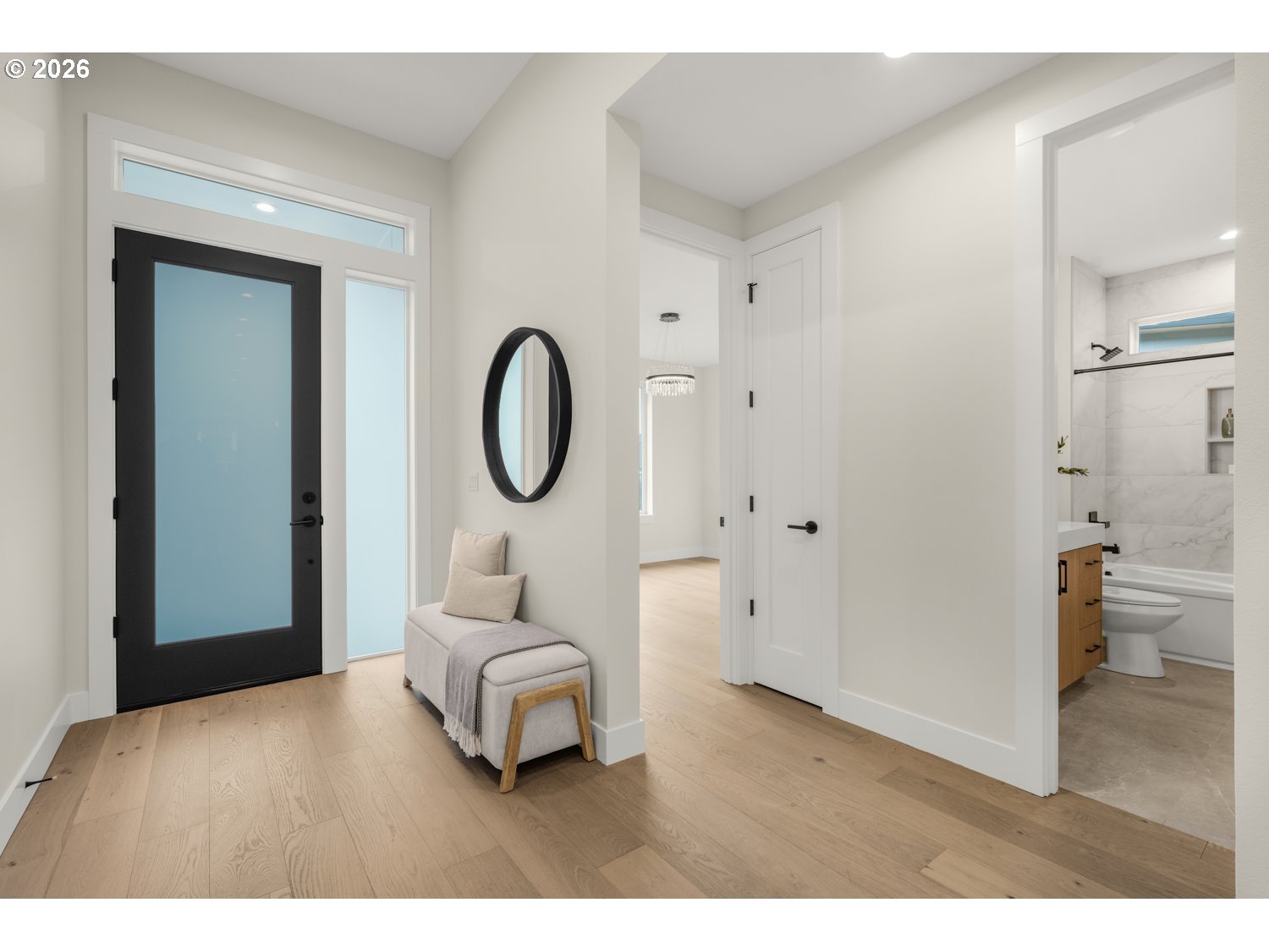 Nestled in the gated Royal Glen community in Salmon Creek, this newly built custom ranch home combines upscale finishes with a bright, open layout ideal for modern living and entertaining. Offering 3 bedrooms, 3 bathrooms, and a 3-car garage, the home is filled with natural light and features tall ceilings in the entry and main living areas that create an airy, welcoming feel. Quality craftsmanship is showcased throughout with engineered hardwood flooring, custom cabinetry, Delta plumbing fixtures, designer accents, and ambient lighting in the kitchen and main living spaces.The gourmet kitchen includes quartz countertops, Energy Star appliances, an induction cooktop, built-in side-by-side refrigerator and freezer, InstaHot water filler, pot filler, oversized island with coordinating backsplash, soft-close cabinetry, and a fully equipped butler’s pantry. A dedicated mudroom adds everyday convenience.The primary suite offers a private retreat with heated tile floors in the primary bath, pre-wiring for a smart toilet/bidet outlet, dual vanities, soaking tub, and a spacious walk-in closet with custom built-in drawers. Additional bathrooms feature modern finishes and thoughtful design.Upgraded insulation and an energy-efficient HVAC system enhance comfort and efficiency, while a hot water circulation pump provides quick hot water throughout. Outside, enjoy a fully landscaped yard with covered patio and zoned sprinklers. The 3-car garage is pre-wired for an EV charger. HOA will provide front yard landscaping once the community reaches approximately 75% completion.Move-in ready and beautifully finished, this home is located just minutes from I-205, Salmon Creek hospitals, Costco, Chuck’s, and Klineline Pond. Builder incentive available.