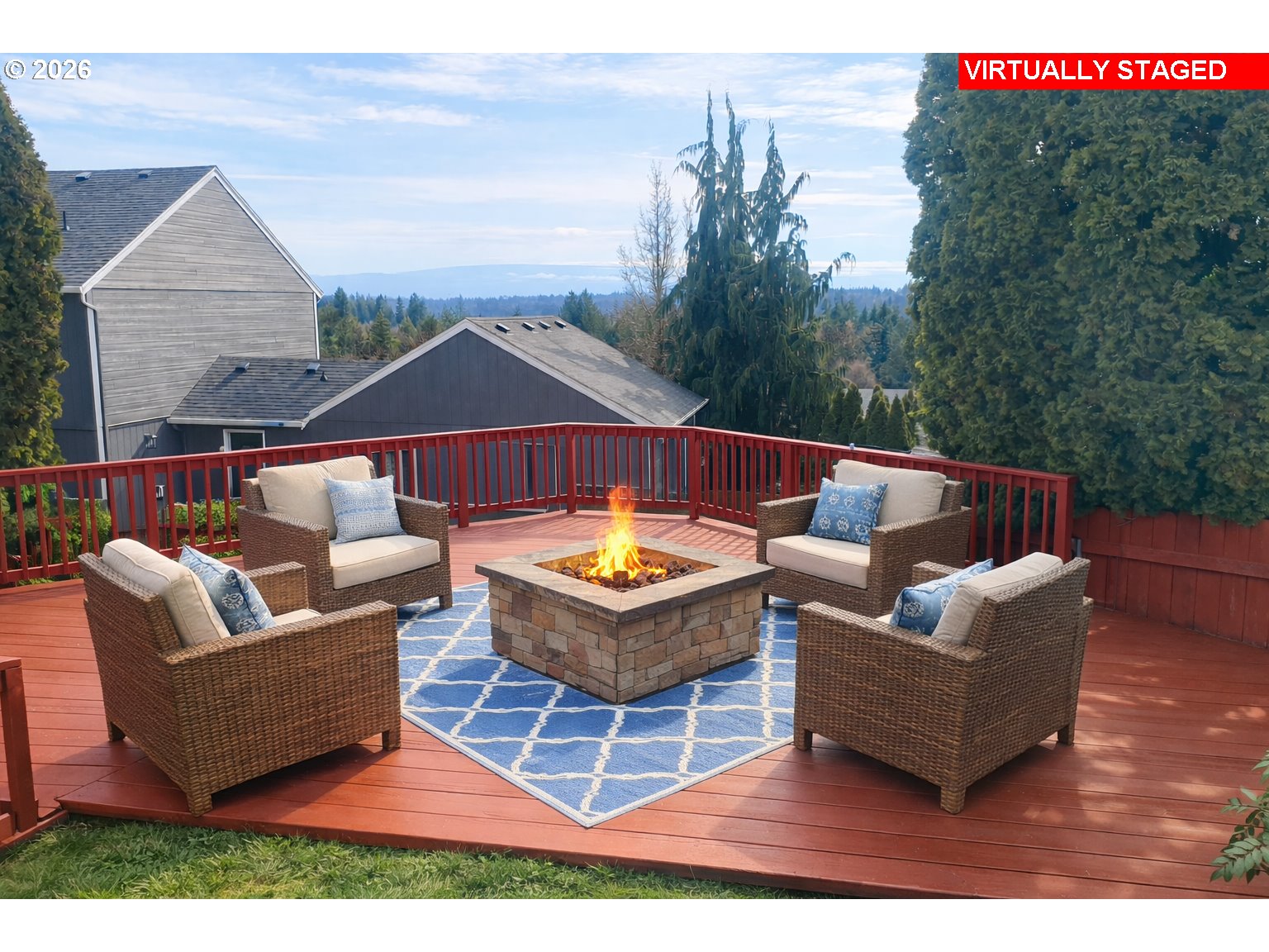 Rare one-level view home in the highly sought-after Southview Heights community of La Center! Built in 1995, this 1,545 sq ft, 3-bedroom, 2-bath home offers sweeping views of the Lewis River Valley and an open, light-filled layout designed for comfortable living and effortless entertaining.Huge picture windows frame the stunning scenery, while a sliding glass door off the dining room leads to an expansive wrap-around deck — the perfect place to host gatherings or simply unwind and watch the sunsets. A separate private deck offers a peaceful retreat for quiet evenings.Inside, you'll find gleaming laminate floors, an open floor plan, a cozy gas fireplace, ceiling fans, and central air conditioning for year-round comfort. The fully landscaped .21-acre lot features an outdoor sprinkler system, garden area, dog run, and tool shed — offering both beauty and functionality.The spacious 3-car garage provides ample storage and parking. All this just minutes from the freeway for easy commuting, yet tucked into one of La Center’s most popular neighborhoods.View homes like this — especially single-level — rarely come available. Don’t miss it!