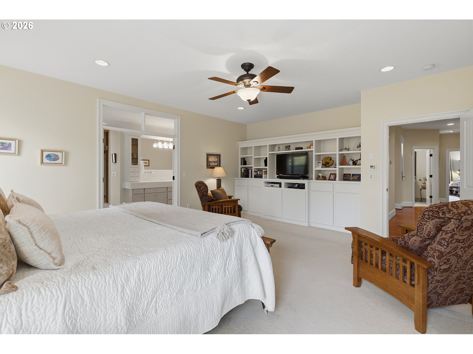 (503) 893-8874Welcome to this immaculate custom home in the coveted Felida community. 4 bedrooms plus 3 full bathrooms, this home has an open floor plan with wide hallways and generous living spaces. 3038 sq ft, plus enclosed stunning sunroom with additional 400 sq ft all one level. With entertaining in mind, this NW vibe chef's kitchen boasts 2 refrigerators, 5 burner gas range, double ovens, walk-in pantry and slate flooring. Extended eating bar makes for great additional seating. Details abound with luxury craftsmanship and warm hardwood flooring. Custom detailed millwork throughout, coffered ceilings, gas fireplace with beautiful built-in shelving and mantle. The special space created in the enclosed sunroom will likely be your favorite of this home! Bathed in light and viewing the backyard with large blueberry bushes, this truly brings the outdoors in. You will enjoy coming home to a luxury primary suite retreat with its own patio, light filled windows, tiled walk-in shower, soaking tub, double sink vanity, and an extra-large walk-in closet. Front bedroom has an attached full bathroom as well. Outside you will find garden beds, established plantings and two large patio spaces. A large attached 3 bay garage completes the home, with an extra deep 3rd bay with a taller overhead door. Wired with a back-up generator to cover the heating, primary and refrigerators in case of power outage. Home built by Pete Gecho. Located on a quiet residential street, it is an easy walk or drive to Felida park, Farra's Bistro, additional restaurants, Salmon Creek Greenbelt trails, salon & fitness facilities.