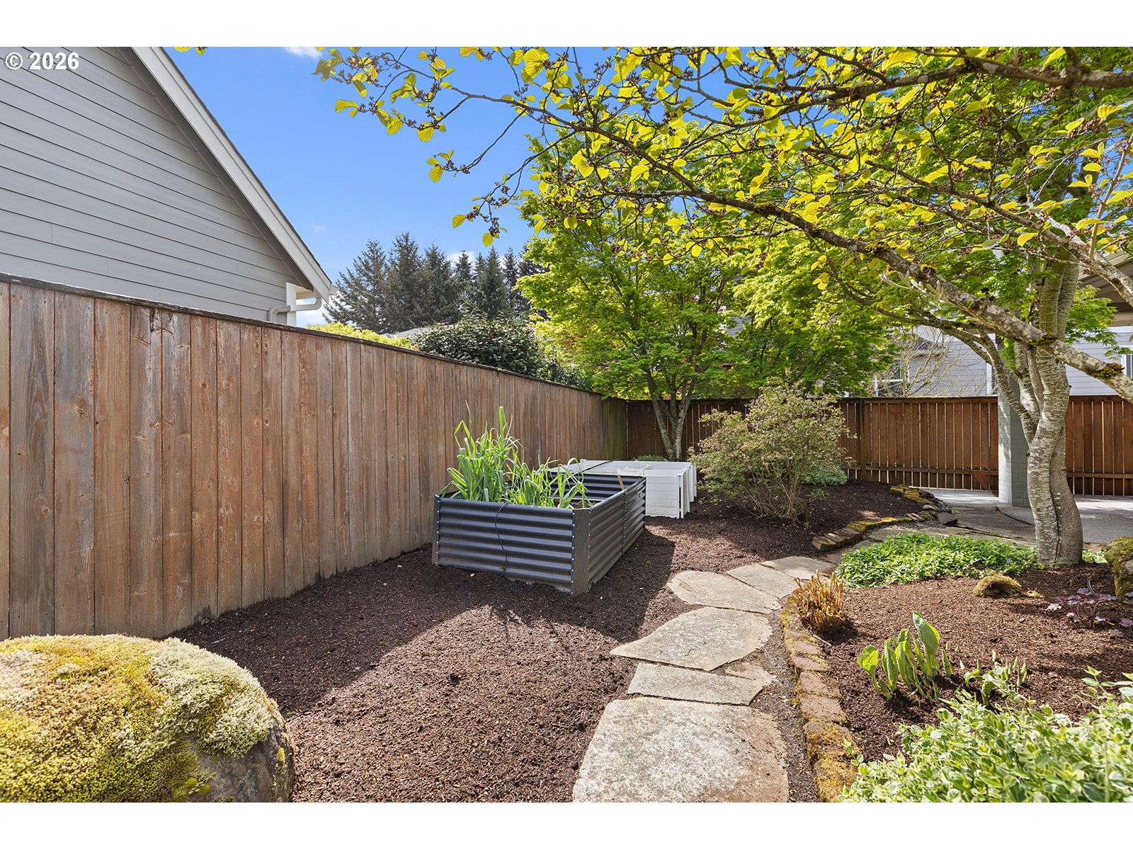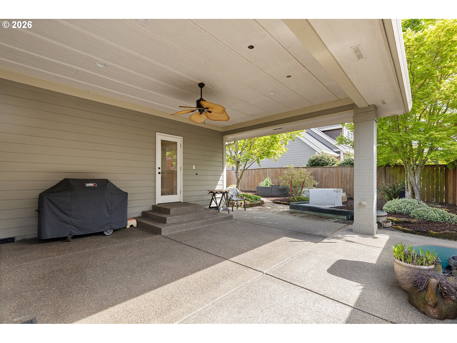 CoveredPatio, Fenced, Garden, Patio, Porch, RaisedBeds, Sprinkler, Yard