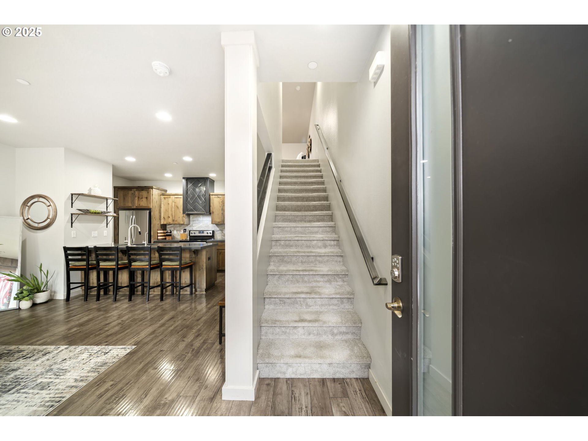 (503) 893-8874Beautifully maintained and incredibly affordable, this low-maintenance home offers no rental cap and a $190/mo HOA that covers siding, roof, exterior maintenance, and leaf blowing—meaning no irrigation or landscaping needs. The front yard is finished with AstroTurf for the easiest upkeep possible. Inside, enjoy refinished concrete counters in the kitchen and baths, floating shelving in the kitchen and laundry, floating cabinetry, blinds throughout, and ultra-low electric bills with its all-electric setup. The living and dining areas feature reclaimed wood accents and warm knotty cabinetry for a true Pacific Northwest vibe. Downstairs offers a comfortable living room, while upstairs provides a second living space large enough for an office, playroom, or whatever fits your lifestyle. The primary suite includes 14 ft ceilings, a walk-in closet with real wood shelving, and a beautiful en-suite bathroom with a walk-in tile shower and glass door. Two additional bedrooms, a full bathroom, and a dedicated laundry space complete the upper level. The 2017 Samsung washer and dryer stay. The garage includes overhead storage, tote organizers, and a second area that can be converted if desired, plus two driveway parking spots. The community also offers a nearby park, extra guest parking, and on-street parking for convenience. No shoes and no animals have ever been in the home, ideal for those with allergies. All located in one of Ridgefield’s most convenient and walk-able communities—steps to groceries, new shops and restaurants, miles of trails, and just minutes to the new Costco. One of the best-kept and most move-in-ready homes to hit the market at this price point, offering a lifestyle people dream about.