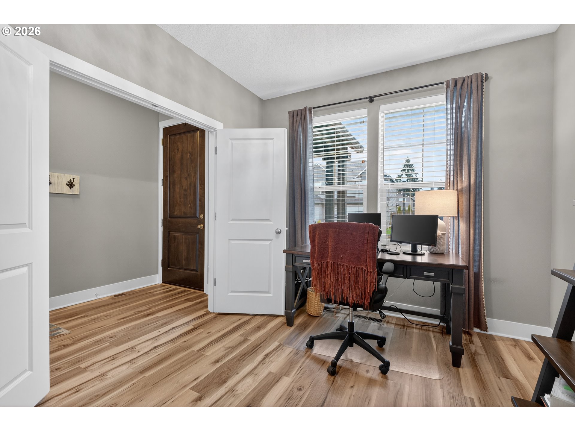 Built in 2019 by Manor Homes, this thoughtfully upgraded NE Vancouver home delivers comfort, style, and smart functionality at every turn. The main level features an easy flow layout highlighted by added living-room cabinetry, accent windows that bring in natural light, and an enlarged pantry for effortless storage. Just off the dining area, an extended back patio creates a great space for outdoor dining and relaxation.Upstairs, the media room is equipped with built-in speakers for an immersive entertainment experience, while the spacious primary suite offers a supersized shower and a comfortable retreat from the day. The laundry room is fully dialed in with cabinetry and a built-in sink, adding everyday convenience.Additional upgrades include a whole-home water filtration and softening system, five overhead garage storage racks, and a custom “Harry Potter” pet room tucked neatly beneath the staircase. With modern finishes, efficient ductless comfort, and a location close to shopping, dining, and commuter routes, this home stands out for buyers seeking turnkey living with thoughtful enhancements throughout.