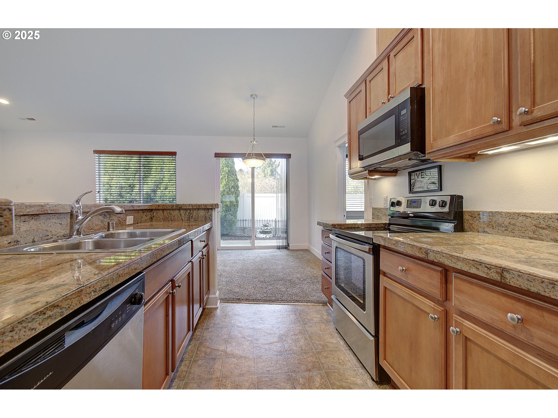 Impeccably maintained with newer carpet and fresh paint throughout, this spacious single-story residence is move-in ready and designed for effortless living. Nestled within the gated 55+ community of Villas at Salmon Creek, the home features 3 bedrooms, 2 full baths, and a light-filled living room with vaulted ceiling & fan. The kitchen showcases granite countertops and a generous walk-in pantry & all appliances included. The backyard is a peaceful retreat with a charming water feature, expansive patio space with an awning and low-maintenance landscaping. Front yard landscaping is taken care of by the HOA. With no stairs and convenient access to parks, shopping, dining, and entertainment, this home offers comfort, convenience, and community. Schedule your private tour today.