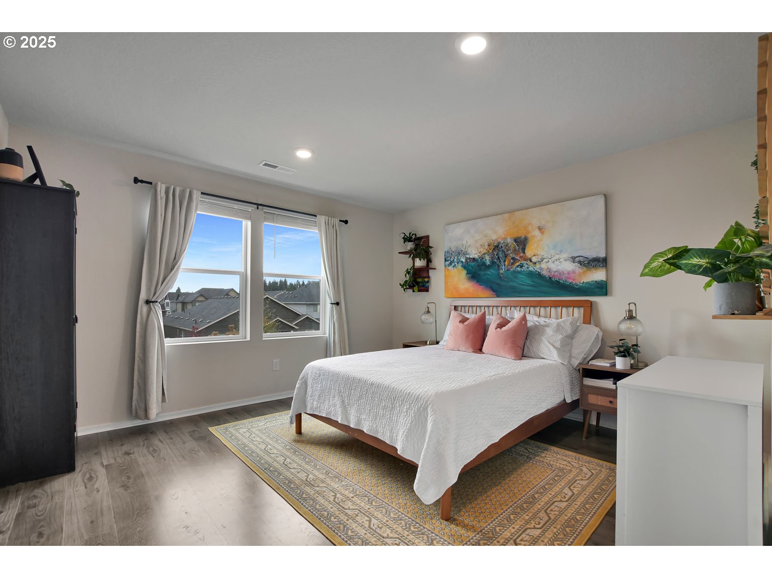Better than new! This 2023-built home on a quiet cul-de-sac showcases modern design and inviting, well-planned spaces. The open main level features updated flooring, a bright kitchen, and a versatile nook that can serve a variety of purposes. Upstairs offers three bedrooms, including a primary suite with an attached full bath, a second full bath, and a sitting area ideal for reading, relaxing, or media use. The fenced and landscaped backyard features a covered patio, pavers, garden beds, and a buffer space behind for added privacy.
