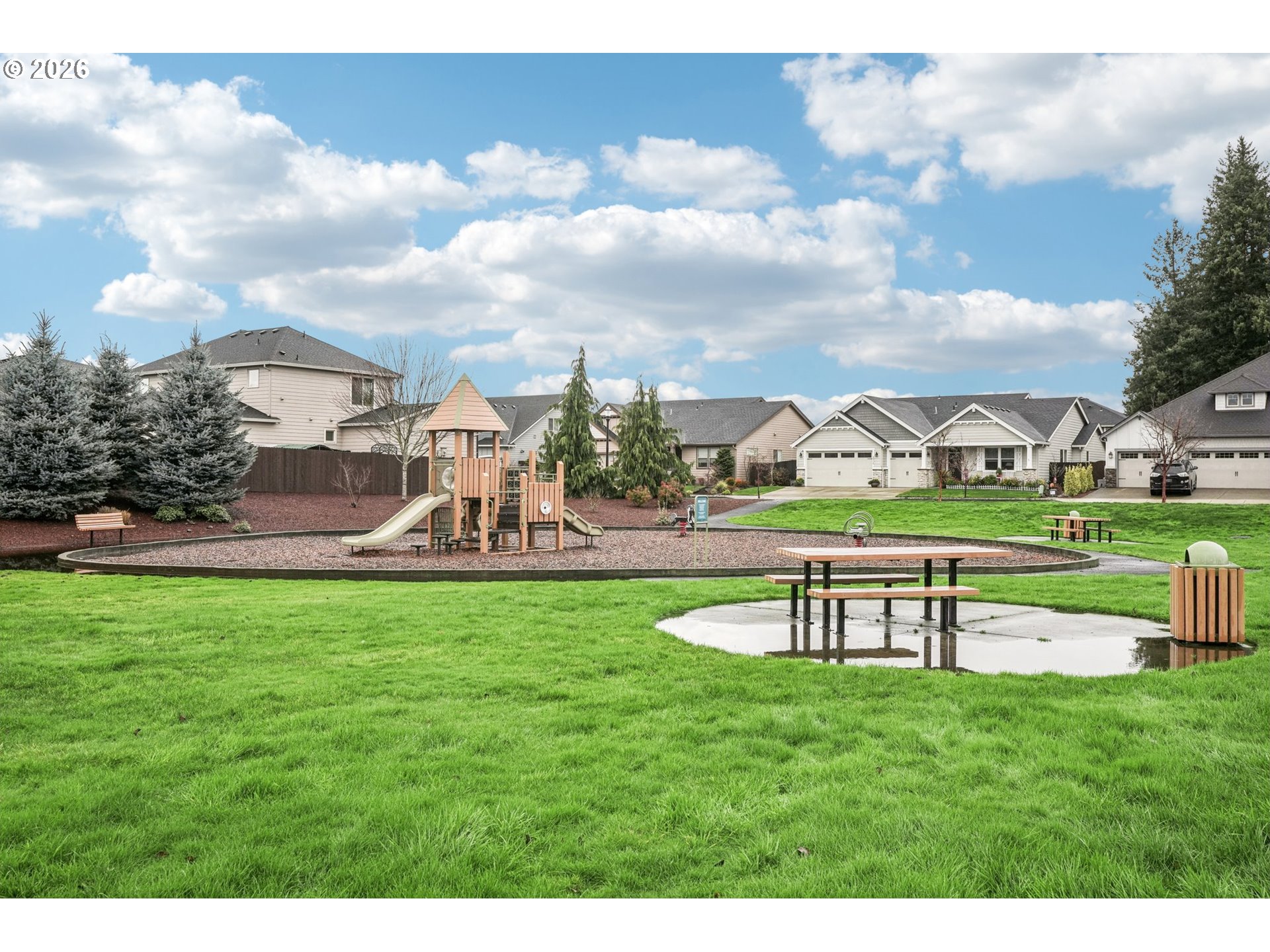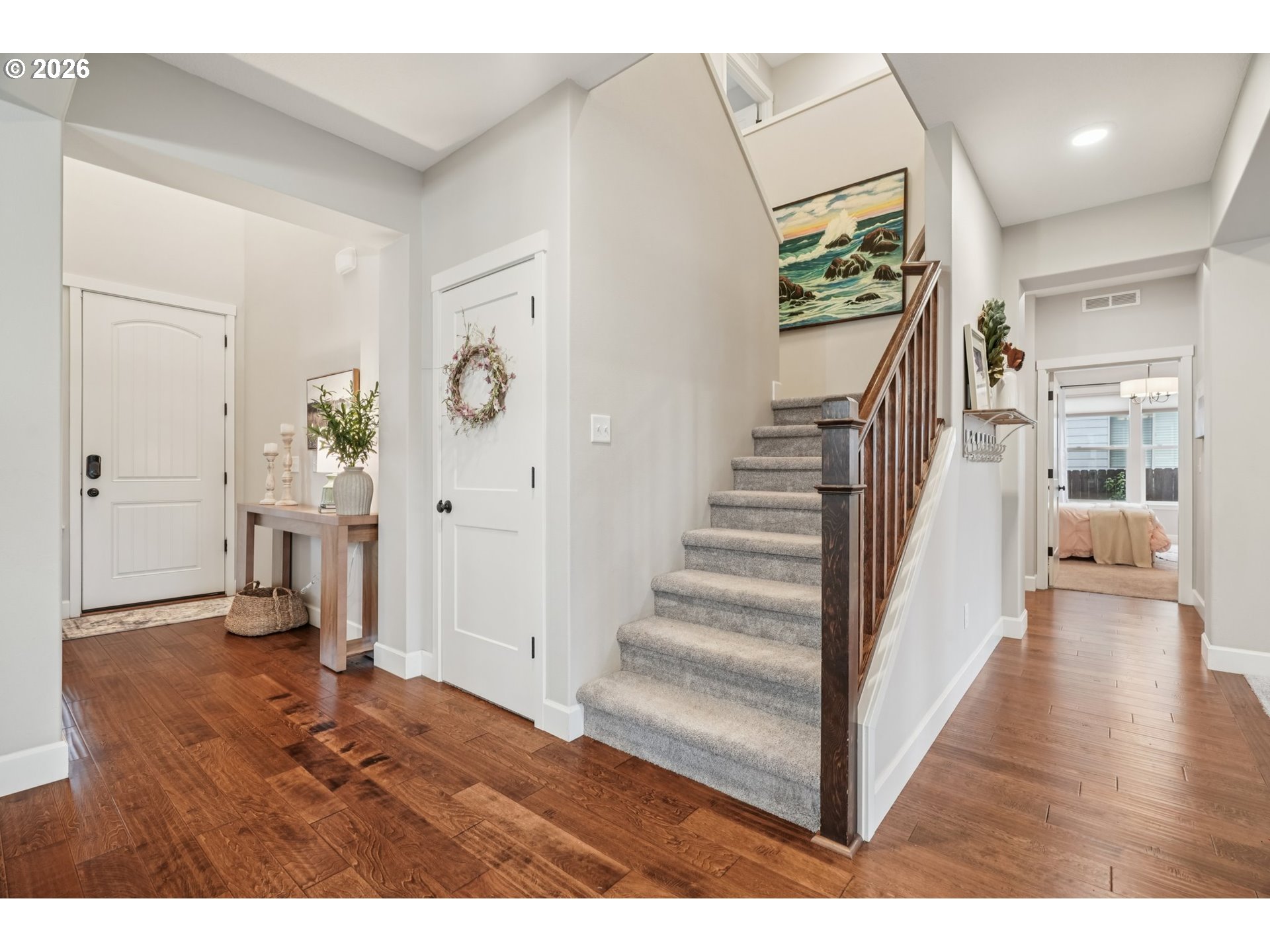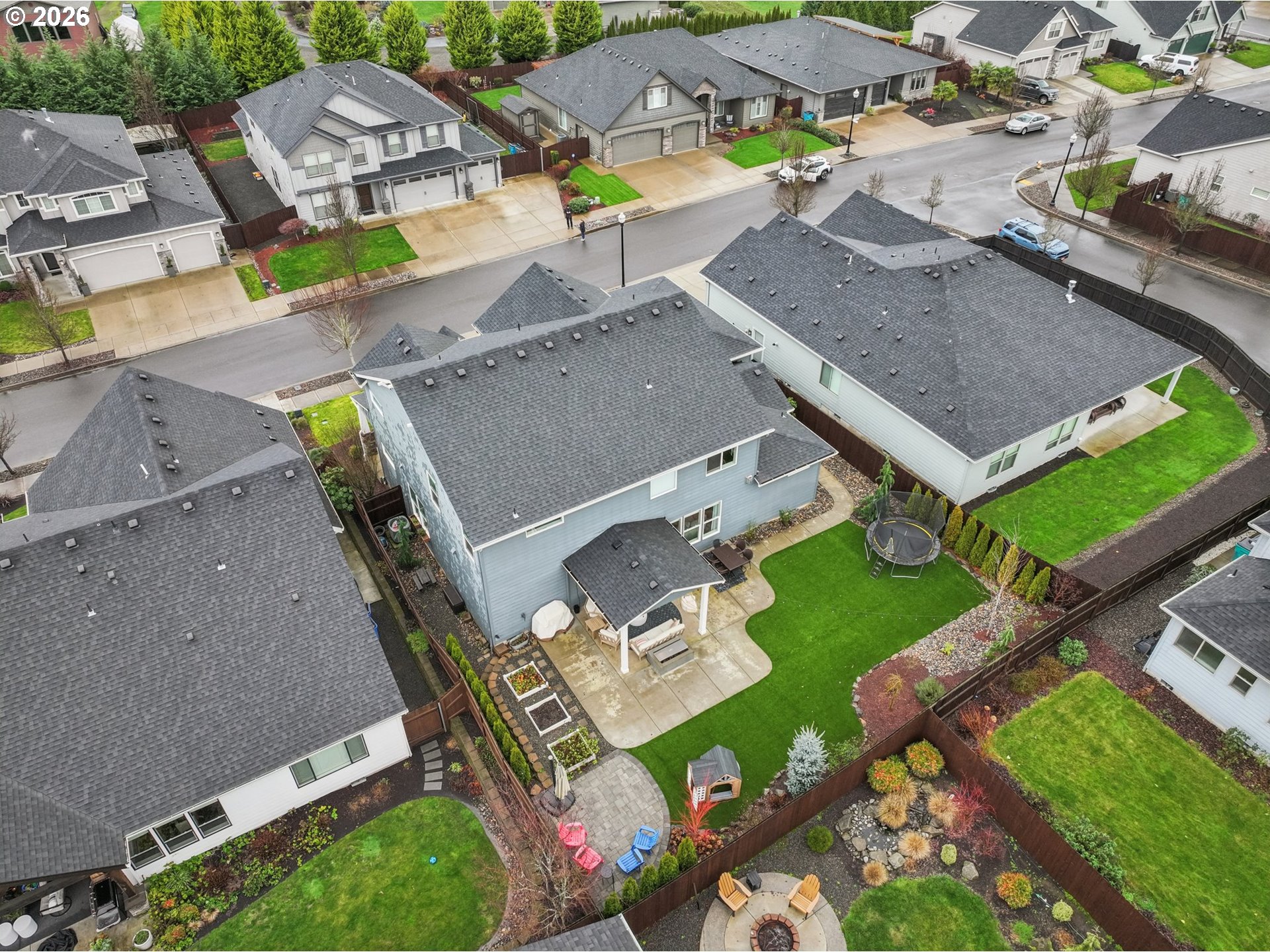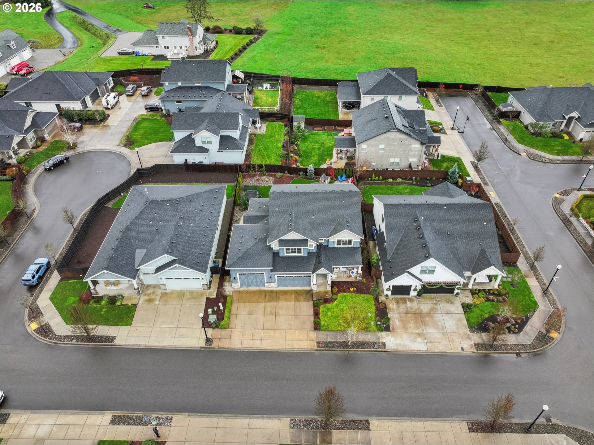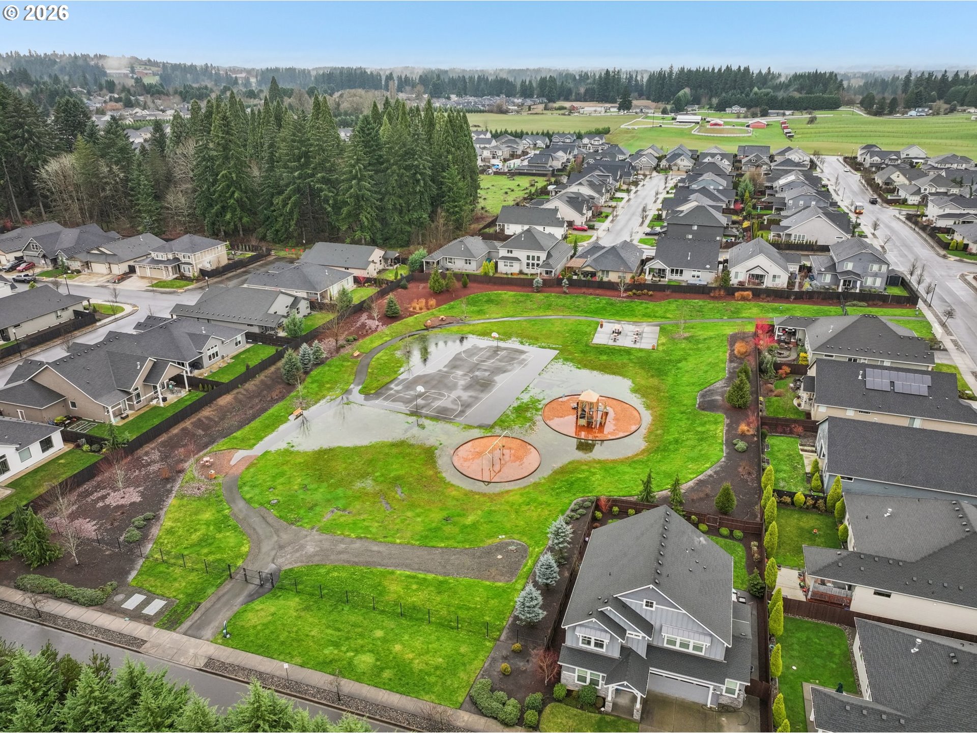 This beautiful home in sought-after Jessie Hollow blends thoughtful design & function. An open-concept plan showcases expansive living spaces anchored by a statement oversized quartz island. The main level features a private office, walk-in pantry, and one of two primary bedrooms, ideal for multi-generational living or guests. Upstairs, the second primary suite with ensuite and two walk-in closets. Three additional bedrooms provide exceptional flexibility, including one oversized for a media room, studio, or playroom. Step outside to a thoughtfully landscaped, low-maintenance turf yard, a covered patio, hanging chairs, and a custom firepit—all included. The extra-deep three-car garage is complete with a 10' garage door and raised ceiling for small RV or boat storage. Level 2 EV charger! Shows like a model and will captivate even the most discerning buyer. Multiple neighborhood parks and walking paths all in this charming neighborhood.