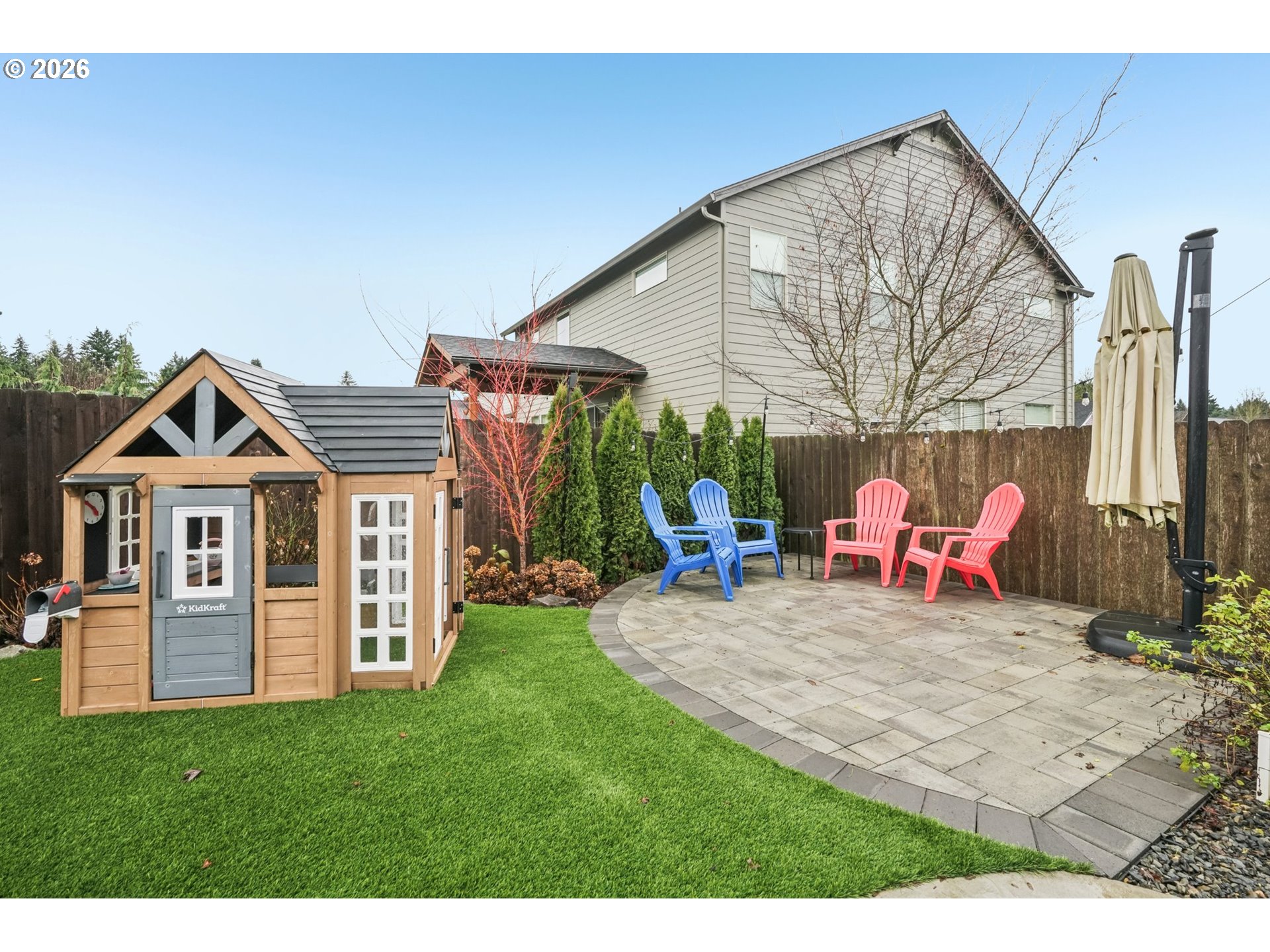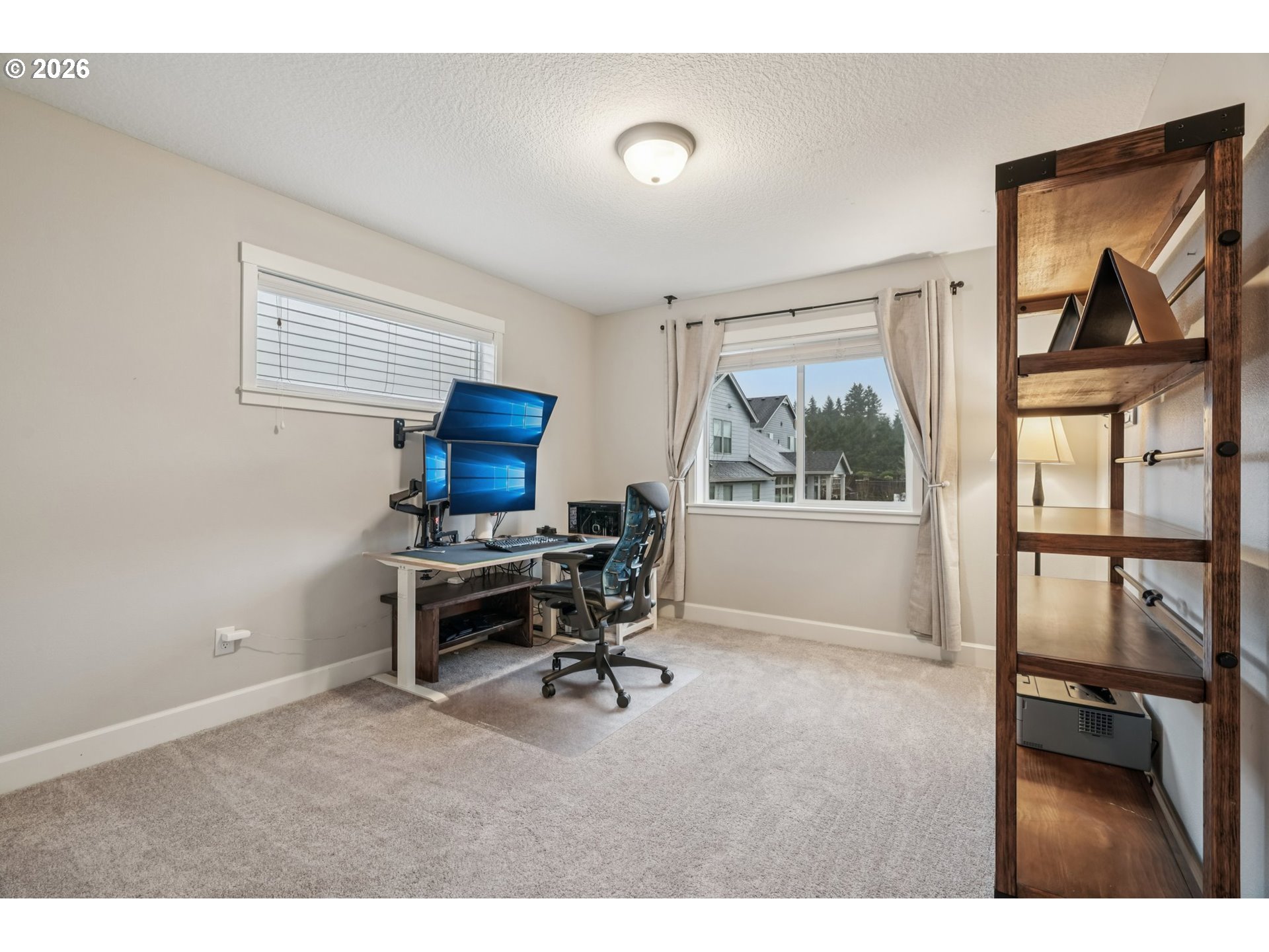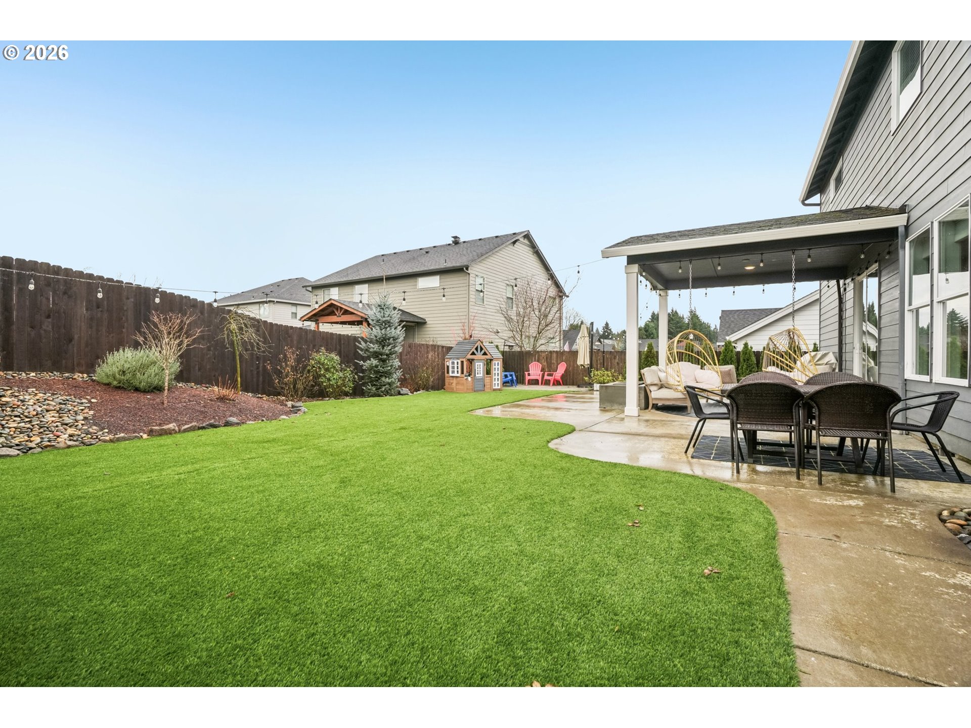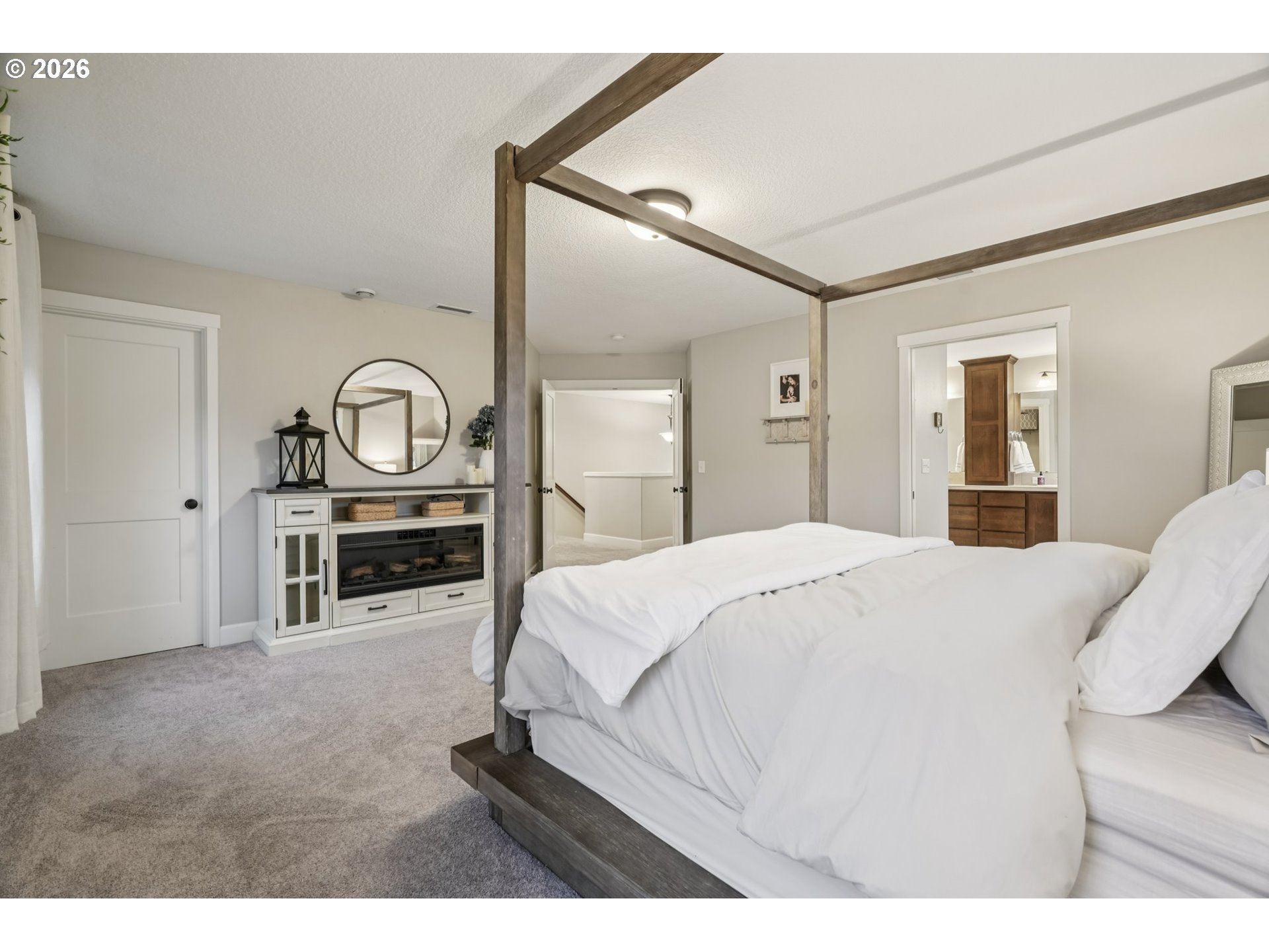 This beautiful home in sought-after Jessie Hollow blends thoughtful design & function. An open-concept plan showcases expansive living spaces anchored by a statement oversized quartz island. The main level features a private office, walk-in pantry, and one of two primary bedrooms, ideal for multi-generational living or guests. Upstairs, the second primary suite with ensuite and two walk-in closets. Three additional bedrooms provide exceptional flexibility, including one oversized for a media room, studio, or playroom. Step outside to a thoughtfully landscaped, low-maintenance turf yard, a covered patio, hanging chairs, and a custom firepit—all included. The extra-deep three-car garage is complete with a 10' garage door and raised ceiling for small RV or boat storage. Level 2 EV charger! Shows like a model and will captivate even the most discerning buyer. Multiple neighborhood parks and walking paths all in this charming neighborhood.