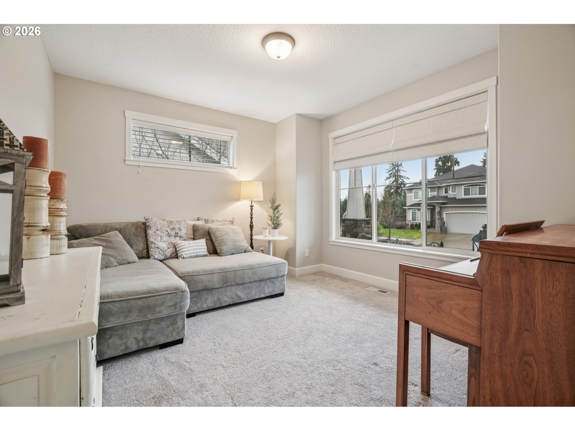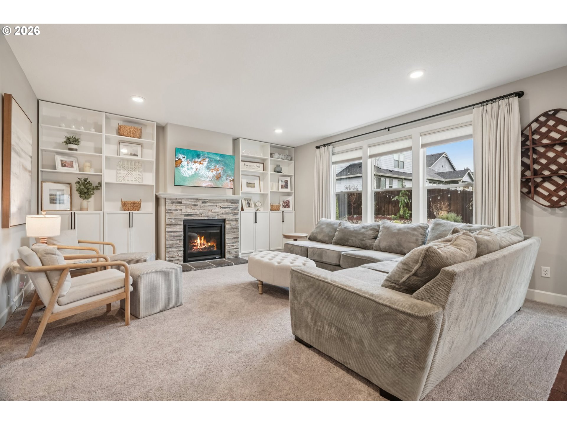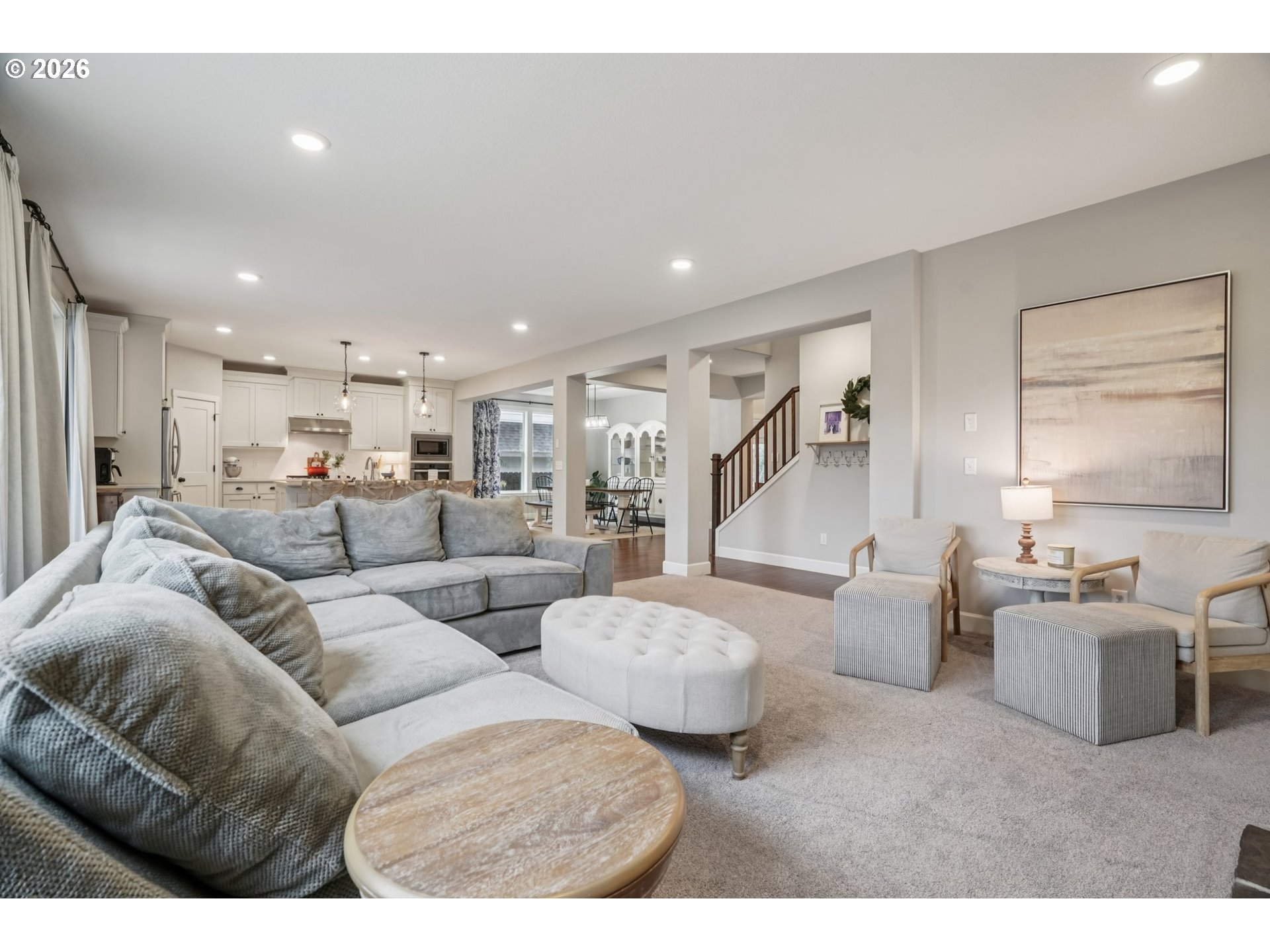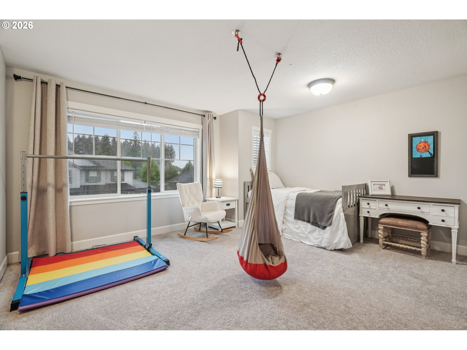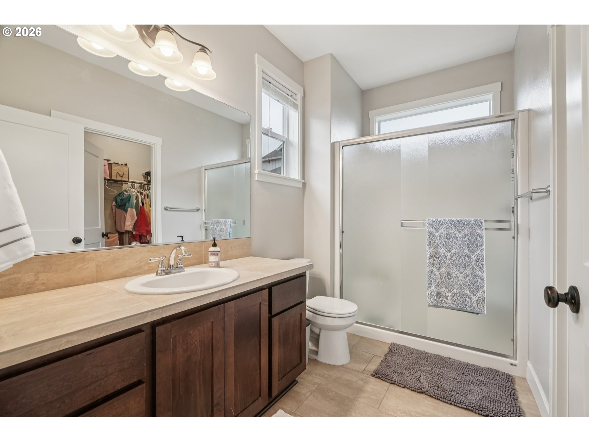 This beautiful home in sought-after Jessie Hollow blends thoughtful design & function. An open-concept plan showcases expansive living spaces anchored by a statement oversized quartz island. The main level features a private office, walk-in pantry, and one of two primary bedrooms, ideal for multi-generational living or guests. Upstairs, the second primary suite with ensuite and two walk-in closets. Three additional bedrooms provide exceptional flexibility, including one oversized for a media room, studio, or playroom. Step outside to a thoughtfully landscaped, low-maintenance turf yard, a covered patio, hanging chairs, and a custom firepit—all included. The extra-deep three-car garage is complete with a 10' garage door and raised ceiling for small RV or boat storage. Level 2 EV charger! Shows like a model and will captivate even the most discerning buyer. Multiple neighborhood parks and walking paths all in this charming neighborhood.