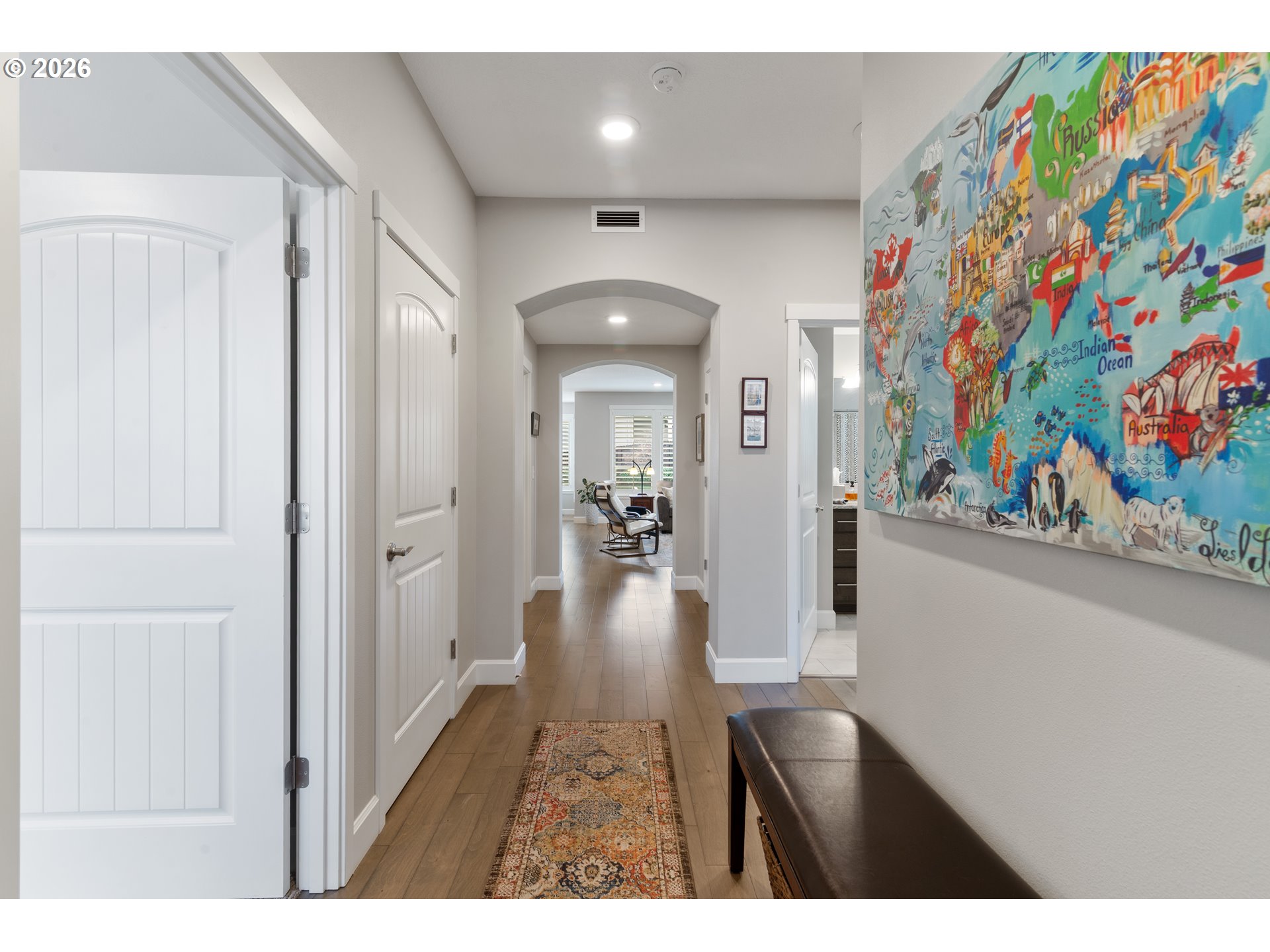 BETTER THAN NEW ONE LEVEL HOME. 3 bedrooms, 2 bathrooms, 1923 sqft, built in 2017 on a 7,745 sqft lot. Certified energy efficient home built by New Tradition Home that has lots of light and includes engineered hardwood floors in the living areas & plantation shutters throughout. Office w/ closet at the entry. Upgraded kitchen w/ huge quartz island, corner pantry & 5 burner gas range w/ stainless steel hood that opens to dining area & the great room w/ gas fireplace. Primary bedroom has walk-in closet and bathroom w/ shower & lots of storage. 3rd bedroom is large and next to the hall bathroom. Utility room off the garage w/ sink & matching cabintry. Hi-efficiency forced air heat system w/ AC. Tankless gas water heater. Covered back patio w/ extended area receives daytime sun/evening shade and overlooks the private fenced yard (no neighbors backing directly to the home). Superb neighborhood near both freeways & the conveniences of Salmon Creek.