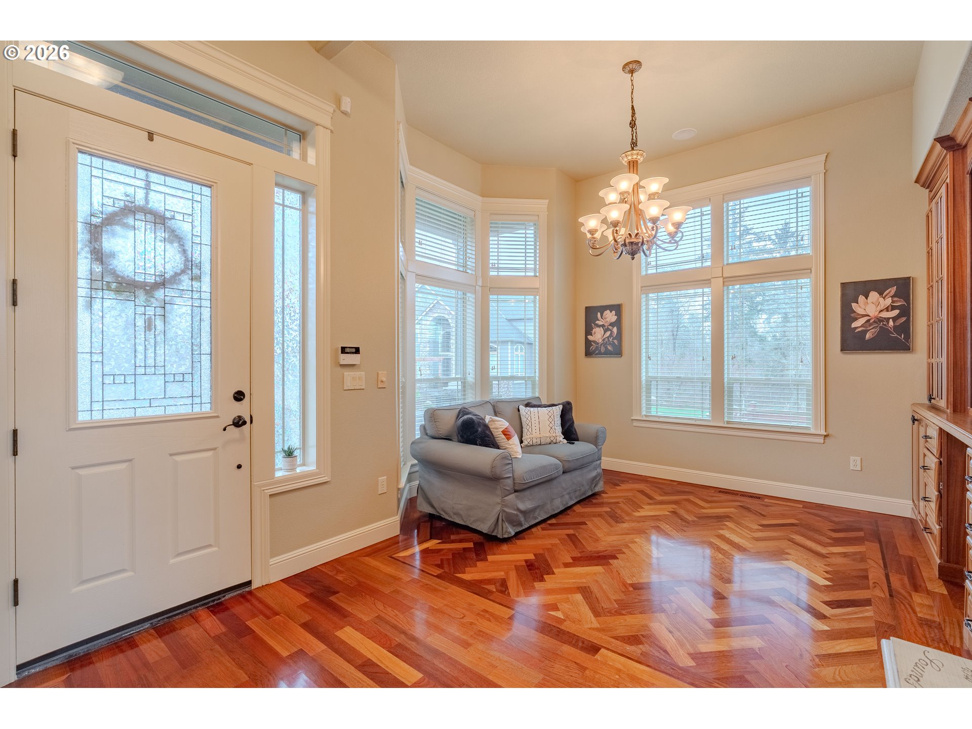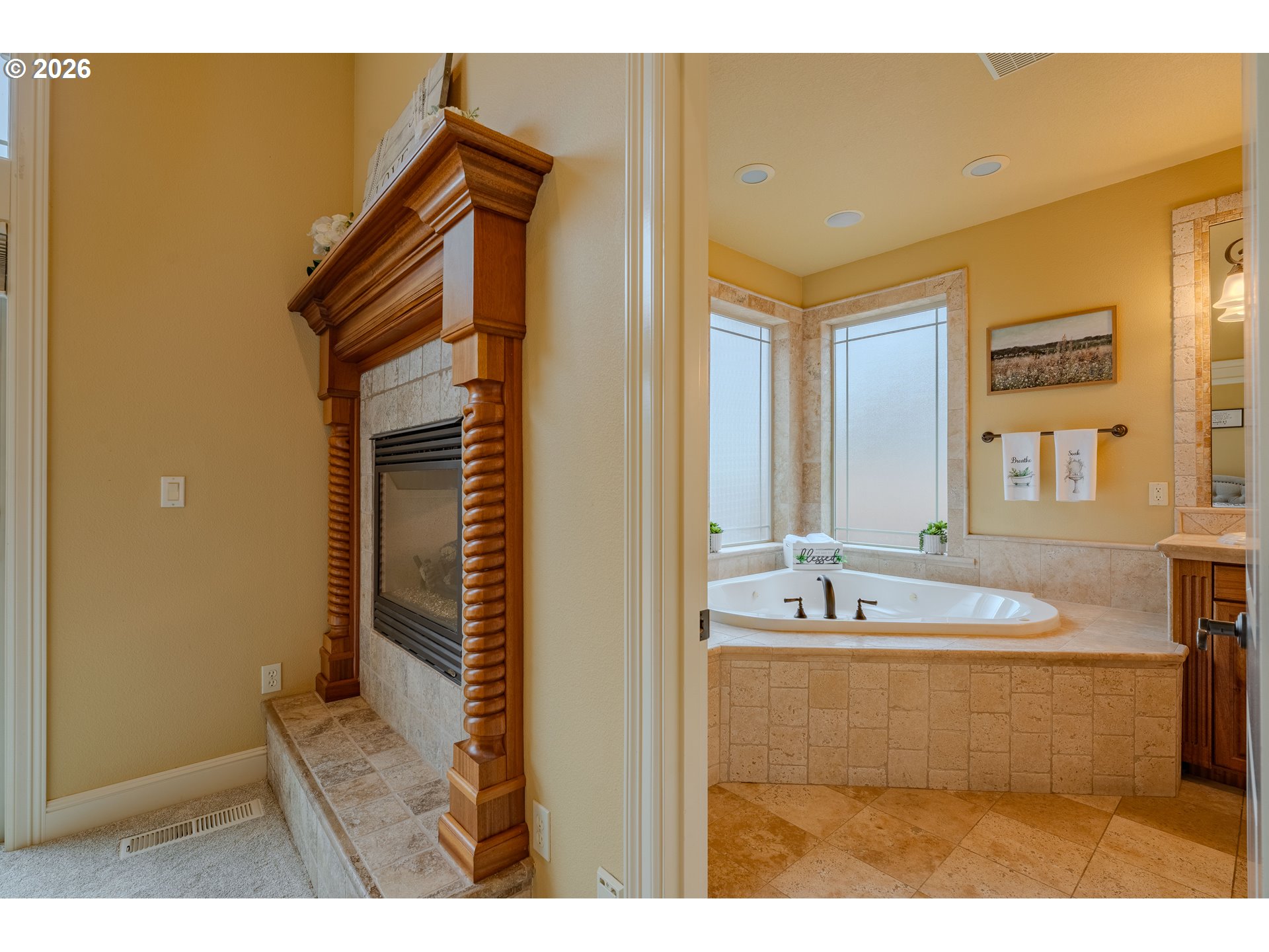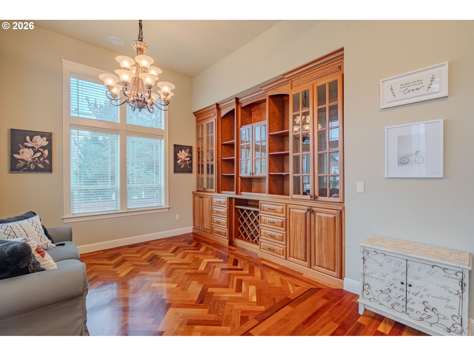Immaculate 4-bedroom plus den, 2.5-bath home showcasing exceptional craftsmanship, soaring high ceilings, and a bright, open floor plan designed for both comfort and style. At the heart of the home, the central kitchen boasts brand-new stainless steel appliances, custom mahogany cabinetry, granite counters, and built-in features, opening seamlessly to the living areas—perfect for entertaining. Throughout the expansive living spaces, you find custom built ins, custom fireplace, expansive windows that keep the open floor plan light and bright. Brazilian cherry hardwood floors add warmth and sophistication, complemented by brand-new carpet throughout. The inviting primary suite on the main level offers a true retreat, featuring a cozy two-sided fireplace, a spa-inspired bath with a soaking tub and separate shower. There is a second large bedroom upstairs that has a walk in closet and attached bathroom. Step outside to the expansive backyard entertainer’s deck, renewed this year—ideal for gatherings or quiet relaxation. In addition a designer Gazebo has been added to the expansive yard. Additional features include sprinkler system and a walking-height storage/crawl space area; a 50-year architectural roof that’s only six years old, ensuring long-term durability and peace of mind. A luxurious benefit of the 3 car garage is-a 6 car driveway for all your guests and toys. This home combines timeless design, premium finishes, and thoughtful updates—an exceptional opportunity to own a property that truly stands out.