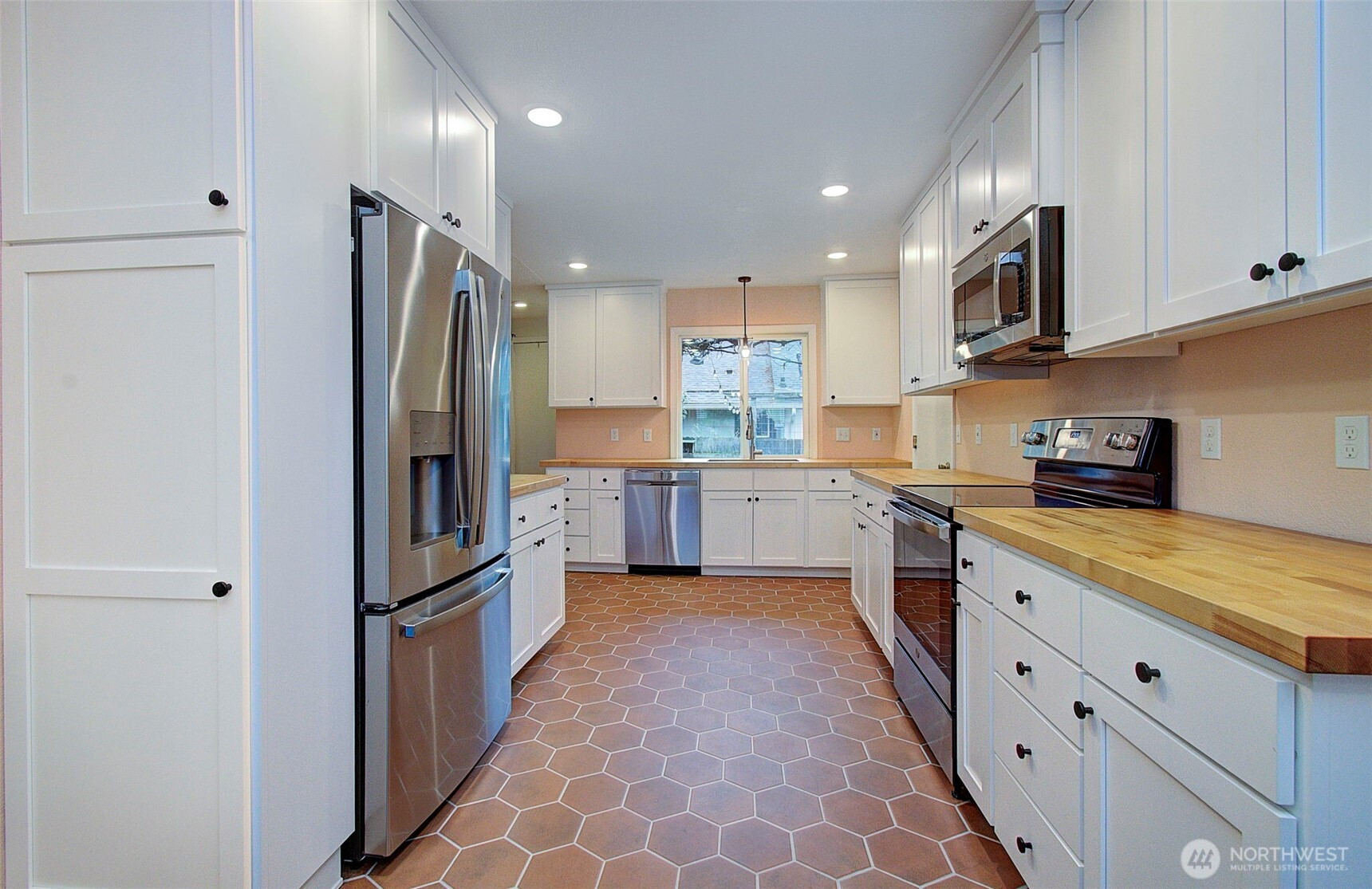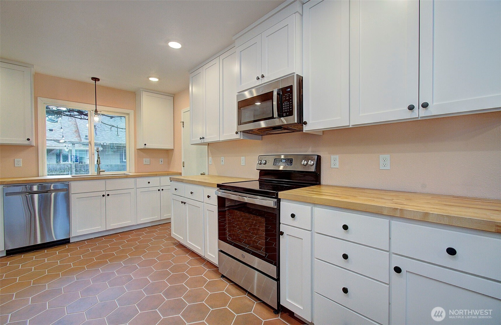 Welcome to this charming home featuring two generously sized bedrooms and thoughtful updates throughout. The updated kitchen shines with crisp white cabinetry and numerous upgrades, including a built-in spice rack, pull-out drawers, broom closet, and more. Butcher block countertops, a walk-in pantry, and a clean, modern design create a space that flows seamlessly into the living area. Stay cozy year-round with a pellet stove that adds warmth and character. The extra-deep one-car garage offers a workbench and upper storage for added functionality. Outside, enjoy beautiful landscaping with producing grape vines and lush flowering plants, fully fenced yard ideal for pets, gardening, or entertaining, plus an additional storage shed. Conveniently located near local amenities and set within an established neighborhood, this move-in-ready home is full of appeal.