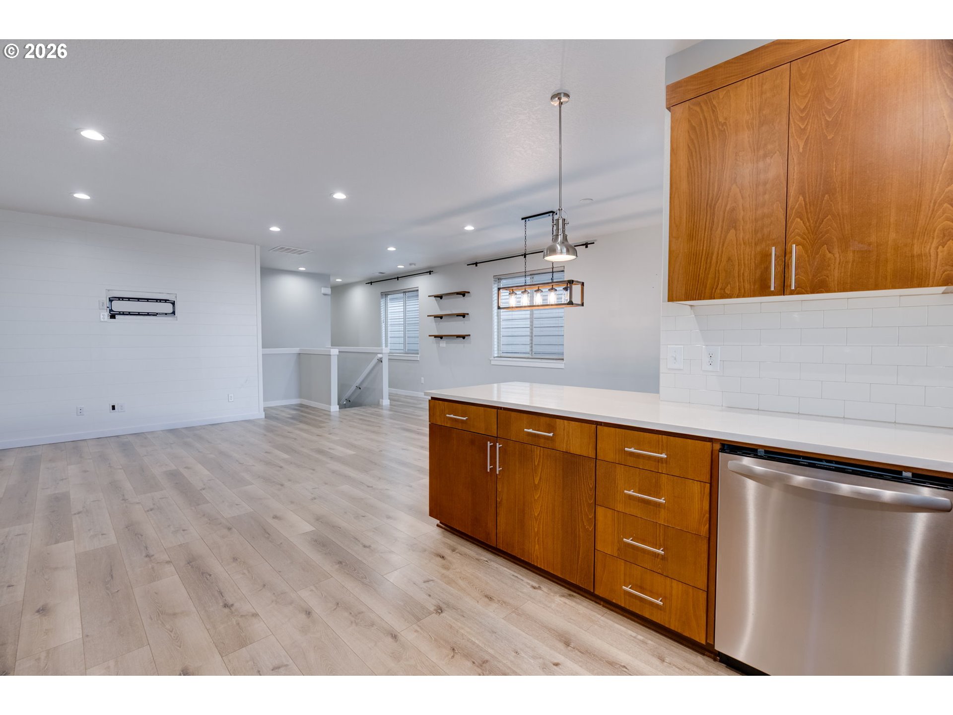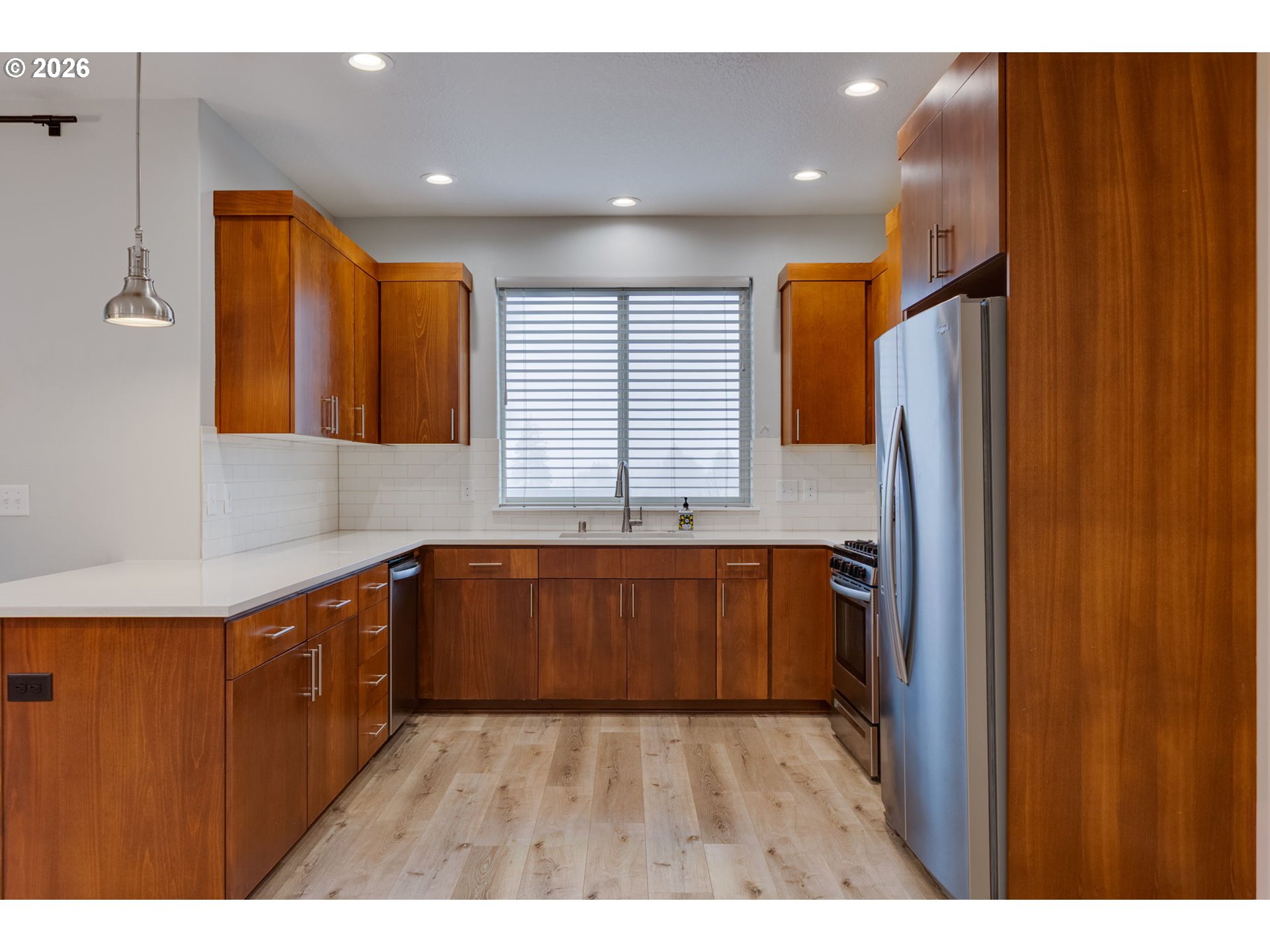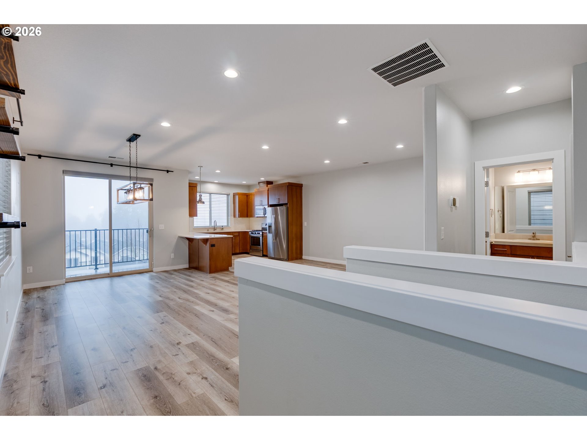 Elevated Living with Great Views & Designer Finishes. Experience the perfect blend of style and convenience in this turnkey hillside home. Designed to maximize its stunning vantage point, the main level welcomes you with an airy, open-concept living, dining, and kitchen area—perfect for entertaining against a backdrop of sweeping views.Highlights of the Home:• Chef’s Kitchen: Equipped with premium stainless steel appliances and seamless flow to the dining area and balcony.• Designer Details: Beautiful laminate wood flooring and custom moldings throughout, complemented by brand-new carpet on the stairs.• Smart Layout: All bedrooms are tucked away on the lower level for maximum privacy and quiet.• Modern Amenities: Enjoy gorgeous updated bathrooms, a tankless water heater, and a two-car garage.• Laundry Included: High-end LG washer and dryer remain with the home.Low-maintenance living meets high-end design. Just turn the key and you're home.