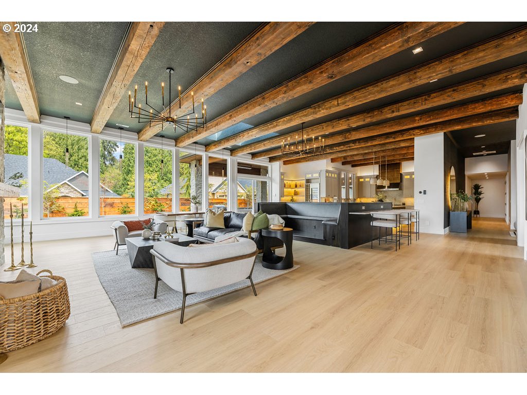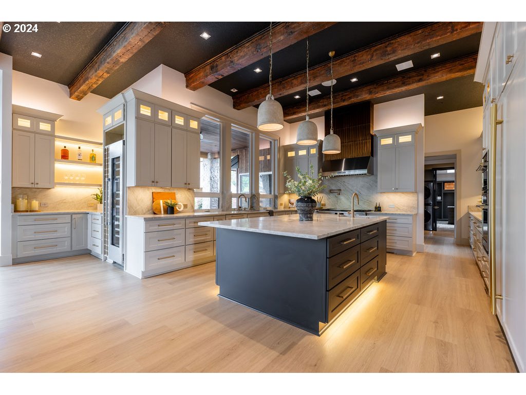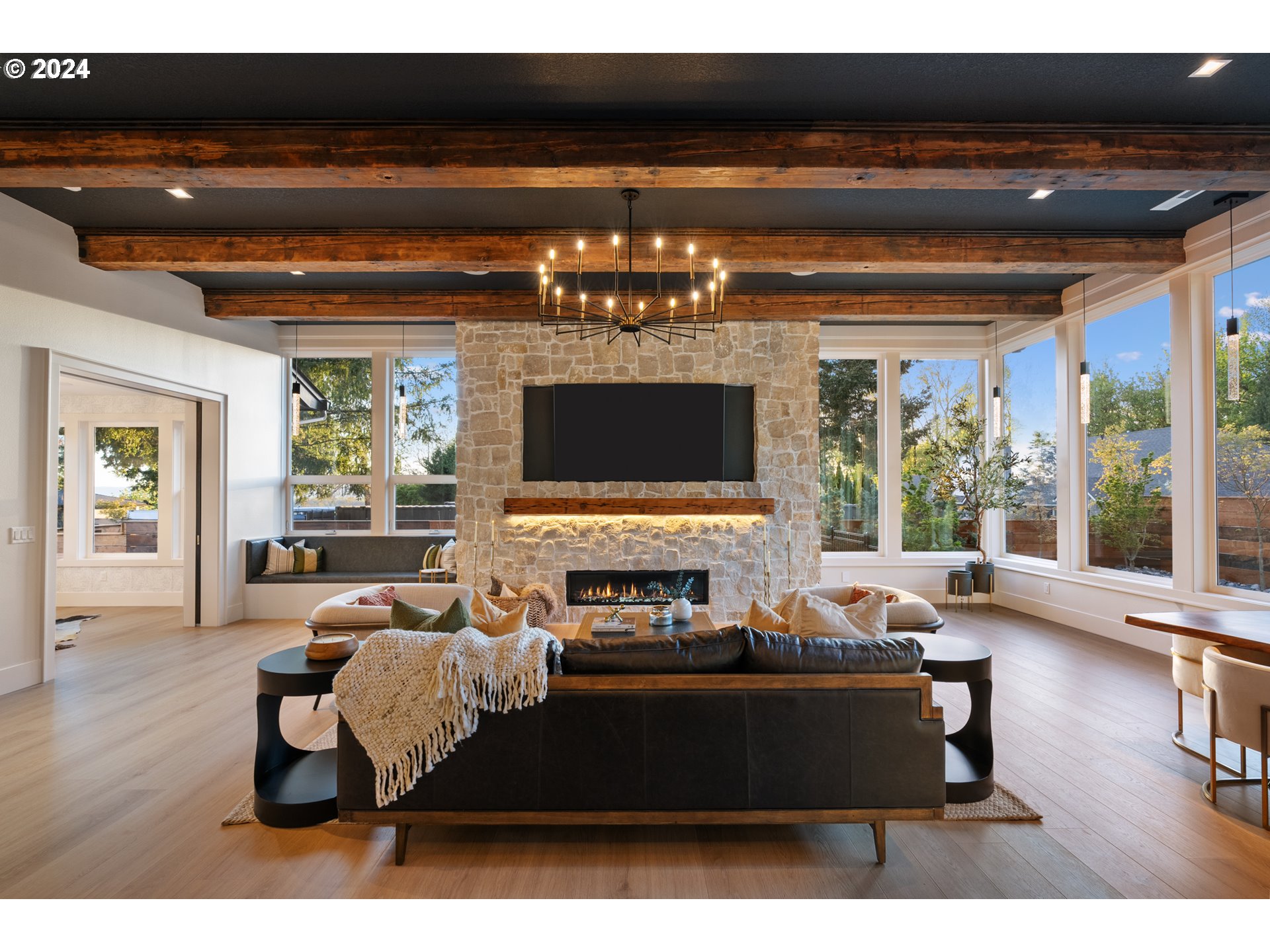 (503) 893-8874Open House March 15th & 16th 1:00pm-3:00pm. Indulge in luxury living in Lake River Estates, a gated 8-lot subdivision. This exquisite Contemporary estate has effortless elegance, many special touches, and attention to detail. From the grand, soaring ceilings with reclaimed beams and the custom walnut 10 ft door, this meticulously designed home invites you to immerse yourself in modern rustic elegance. Entertain in the gourmet kitchen with Thermador/Monogram appliances, a full wine bar, a butler's pantry, a spacious custom central entertaining island with commercial True refrigeration, a beautiful restaurant booth, and bar seating. The show-stopping great room showcases the beautiful limestone gas fireplace, additional sitting areas, and set up for entertaining! Just off the great room, you will find a full bathroom and two additional r