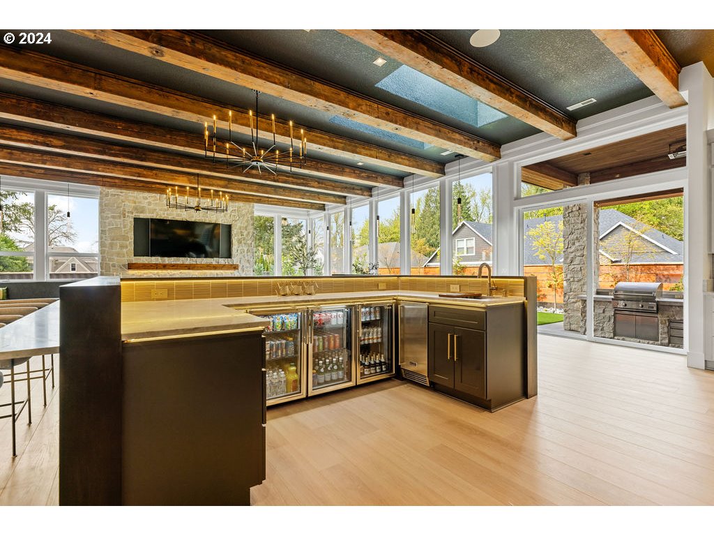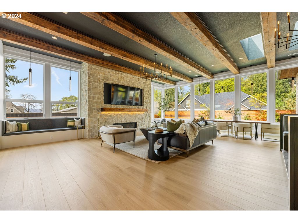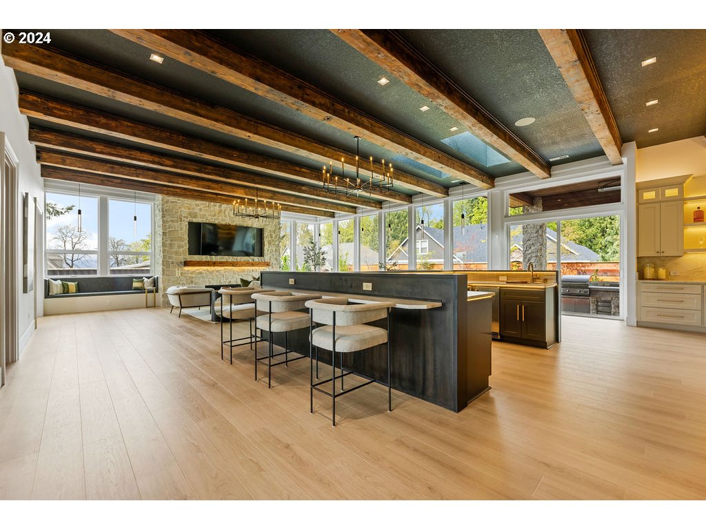 BeamedCeilings, FamilyRoomKitchenCombo, Fireplace, SoundSystem