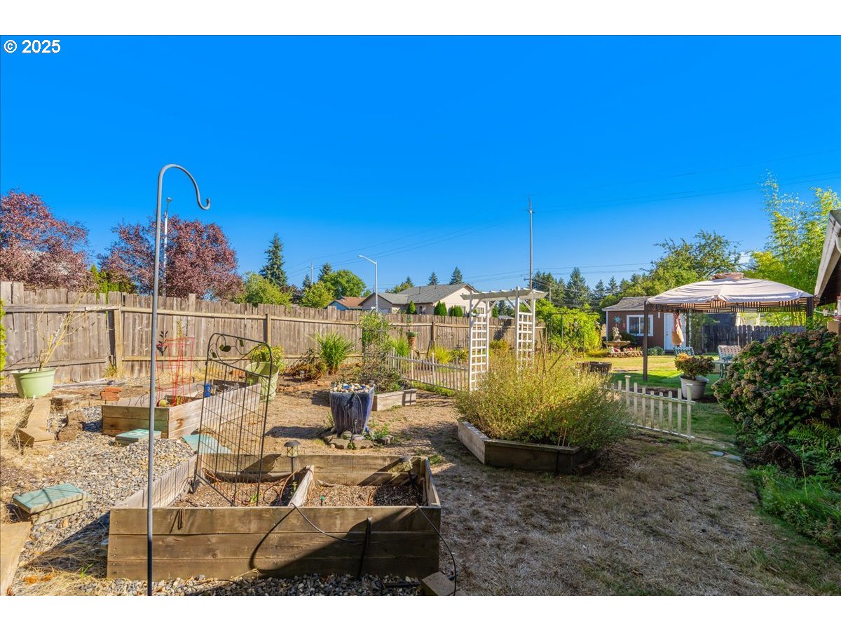 Your home with a white picket fence is right here! Come enjoy this adorable single level home. You're invited in the front door to a cozy living room complete with fireplace, laminate flooring leading into the dining room and kitchen area. The back patio door leads to an adorable patio area with a backyard that is just a relaxing space to garden, play games with the kids, smell the flowers or tinker in the workshop. Two storage sheds about back, one is approx 10x14 and the other 10x20! 3 bedrooms down the hall with 2 bathrooms. A true bonus is the converted garage that is a huge family room complete with cozy fireplace and plenty of space!! New Roof installed in 2025! Steps to Heritage High School and all shopping, grocery and restaurant amenities you need! Private drive, so no through traffic!!