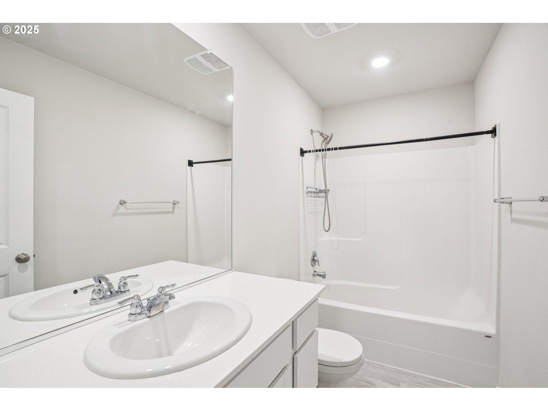 Welcoming covered front porch with keyless entry leads into a bright, open great-room layout with seamless flow between the family room, dining area, and island/breakfast bar kitchen. The family room features recessed lighting and laminate flooring, while the kitchen offers stainless Whirlpool appliances—including a built-in dishwasher, microwave, and glass-cooktop range—plus a stainless Samsung refrigerator. Quartz countertops, abundant cabinetry with display space above, a walk-in pantry, and a generous island with breakfast bar create an ideal space for cooking and gathering. The adjacent dining area provides slider access to the back deck. Upstairs, the primary en-suite includes recessed lighting, LVP flooring, a walk-in closet, and an en-suite bath with single sink quartz vanity and shower. The upper level also hosts three additional bedrooms, a full bath with single sink quartz vanity and combo soak tub and shower, and a dedicated laundry room equipped with a Samsung washer and dryer. A convenient main-level powder room with pedestal sink serves guests. Interior highlights include an open great-room design, island/breakfast bar kitchen, stainless appliances, walk-in pantry, upper-level linen closet, and a blend of laminate, LVP, and carpet throughout. Outside, the home offers a covered front porch, back deck, and a fully landscaped corner lot with sprinklers front and back. The two-car garage adds comfort and practicality to this well-appointed property. Mortgage savings may be available for buyers of this listing.