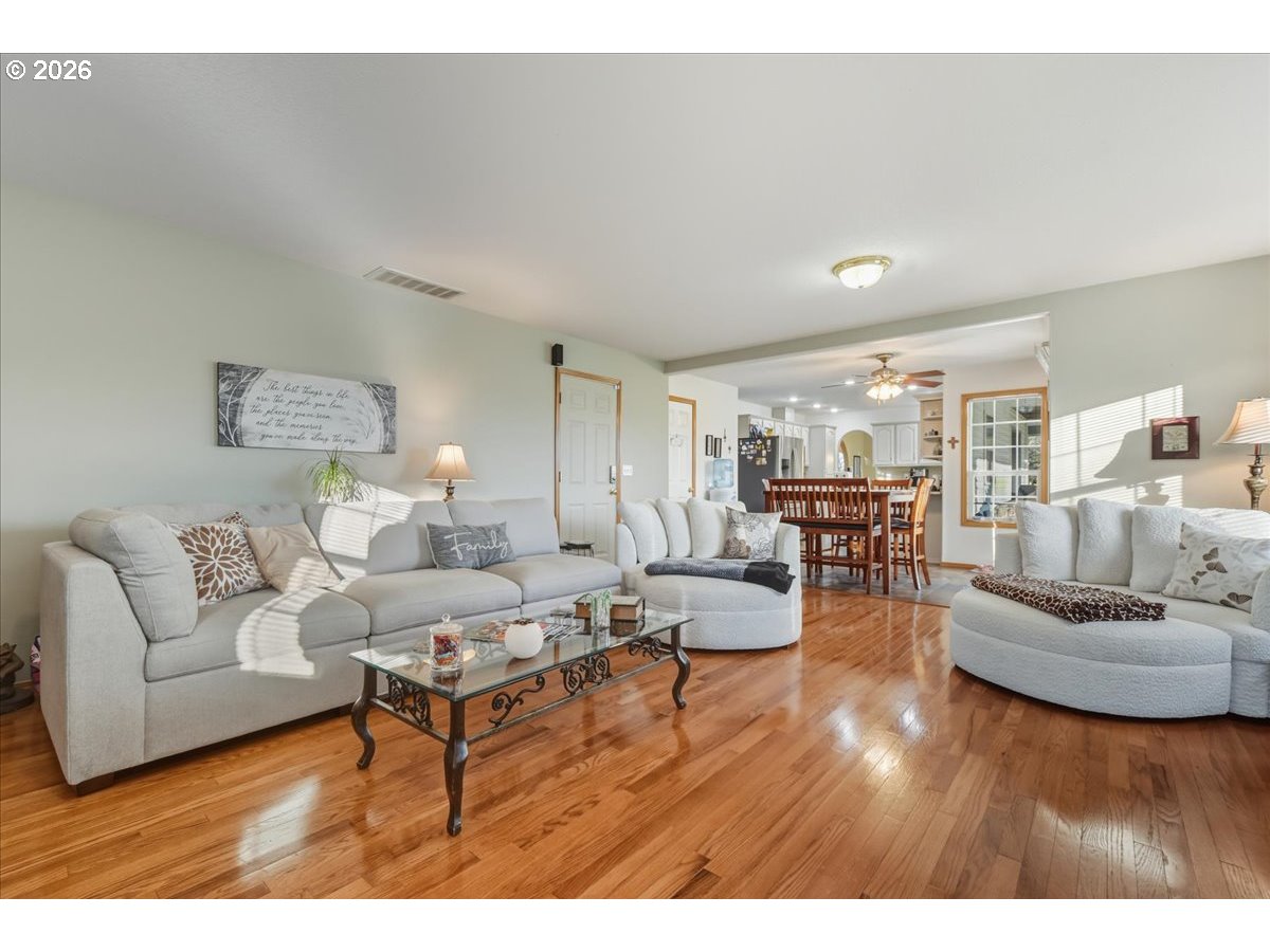 (503) 893-8874Enjoy a big slice of peaceful life in this custom farmhouse! This incredibly maintained home features a newer roof (replaced two years ago), attached 3-car garage, upgraded flooring & remodeled On demand hot tankless hot water heater, FA Heat & Central AC. The main level includes a formal LR & DR, Den/office w/ a closet or 4th bedroom. Remodeled kitchen that opens to a dining nook & family room. Spacious Trex veranda. Upstairs, bamboo flooring greets you. The primary bedroom has a walk-in closet, a private SW-facing balcony, Primary bathroom features Tile Floors, WI Tile Shower, Deep Soaking Tub, Quarts CT w/ undermount sinks. Laundry & Hall Bath have cork floors. The expansive bonus room is perfect for working or playing. In the detached shop, you'll find 40X60 (2400sf) to store your toys & dive into your hobbies. Outside is a gardener's canvas, with plenty of sun exposure & raised garden beds. Deck plumbed for Propane BBQ. This incredible property is bright, open, and ready for you to call it home! View of Mountain.
