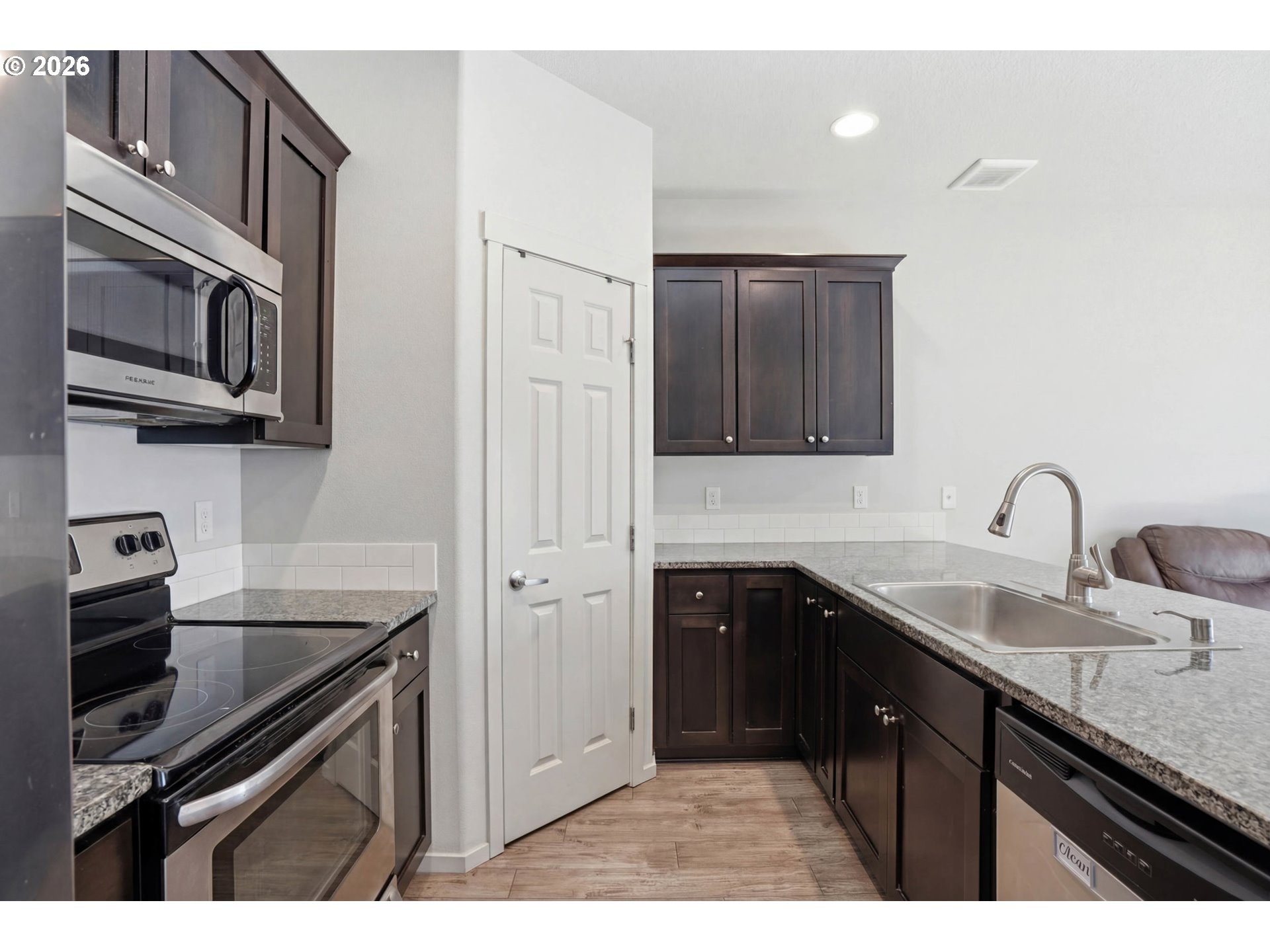 Welcome home to this well-maintained end-unit, two-story townhouse offering comfort and functionality in a thoughtfully designed layout. The main level features a welcoming living area with a sliding glass door that leads directly to the patio—perfect for enjoying a little outdoor space for morning coffee or relaxing at the end of the day. The kitchen is both practical and stylish, complete with abundant granite counter space, stainless steel appliances, and a generous pantry to keep everything organized and within reach. Upstairs, you’ll find three bedrooms and two full bathrooms. The primary suite includes a double-sink vanity and walk-in shower, while the second full bath offers a tub—ideal for guests or everyday convenience. With its desirable end-unit location and efficient use of space, this townhouse offers comfortable living and easy maintenance in a convenient setting.