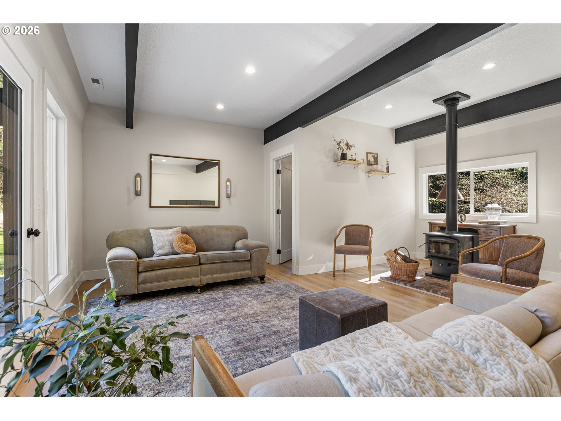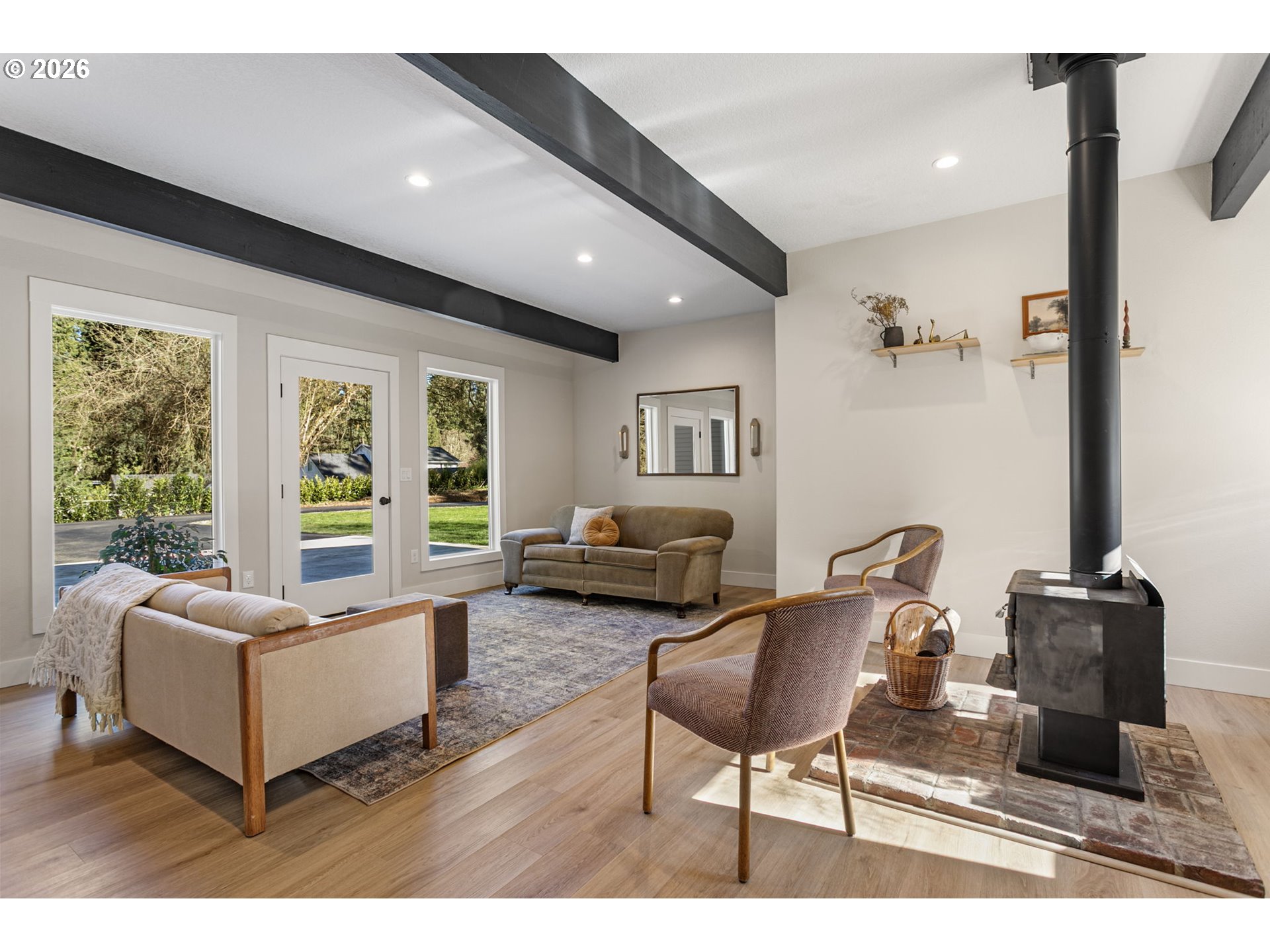 (503) 893-8874BEAUTIFUL HOME ON AN AGERAGE!! Tucked away on a private, level 1 acre lot, this 3 bed, 2 bath home offers 2,358 sqft of comfortable living with a great mix of space and privacy. This home has been fully renovated with a clean, modern design. It features a kitchen with all new cabinets, countertops, and appliances, opening nicely into the main living areas.You’ll find two separate living spaces; one with a cozy wood burning stove and the other with a built in electric fireplace. Giving flexibility for everyday living or entertaining. The primary suite is spacious with high ceilings, its own electric fireplace, a nursery, and a storage room tucked away to the side. The primary bath includes dual vanities and a walk-in shower.Outside is where this property really stands out. A large covered concrete patio with a timber frame cover creates an ideal outdoor living space, complemented by concrete walkways and bordered flower beds. The freshly paved private driveway leads you into a peaceful setting with a flat, usable yard and a stream behind the home. Quiet and private, yet conveniently located just minutes from shopping and amenities, this is one you don’t want to miss. Schedule your showing today! The adjacent 4 acre lot is for sale also.