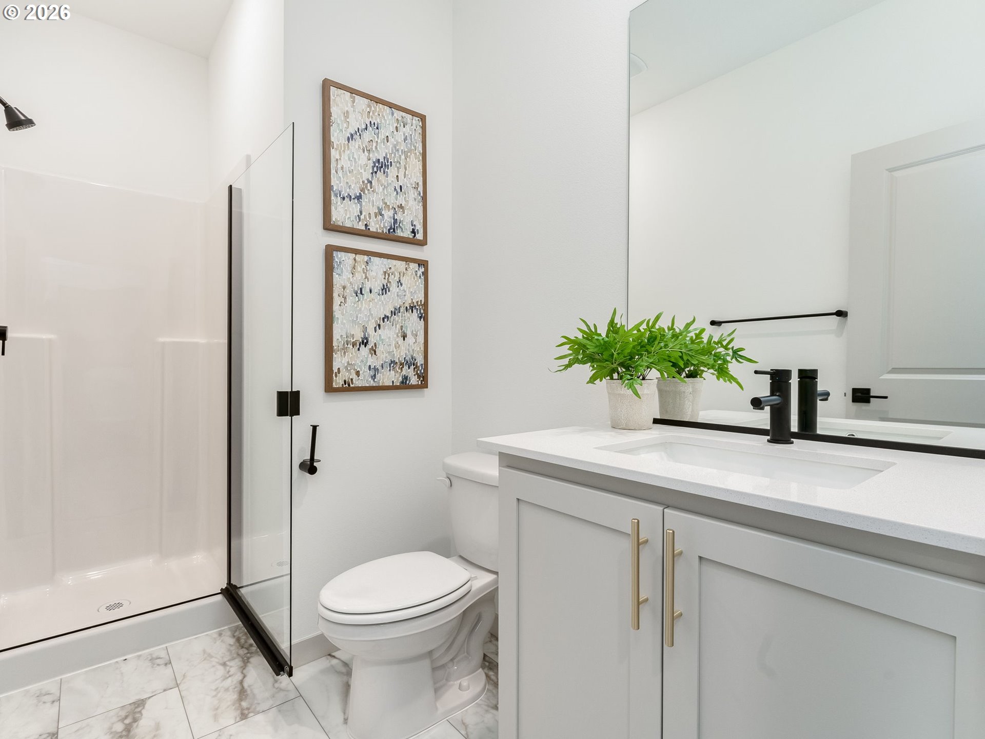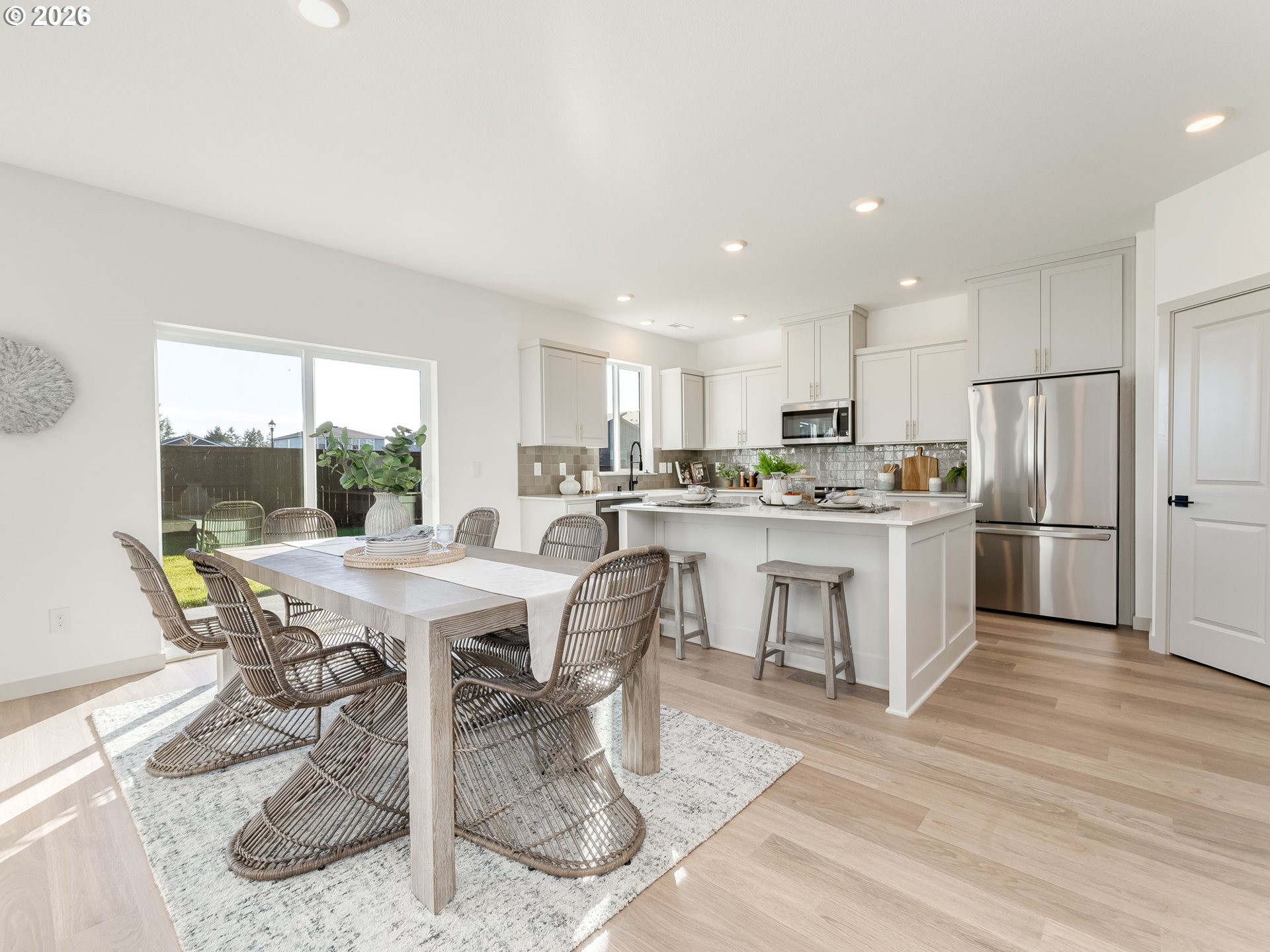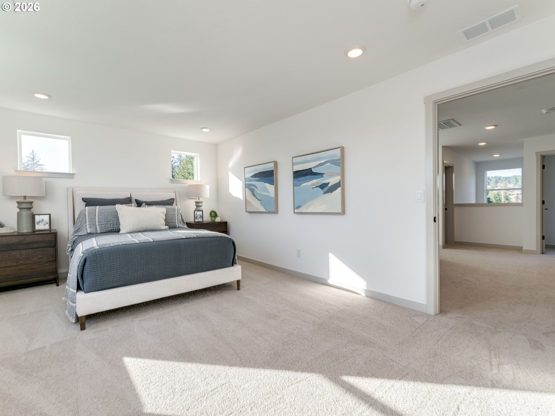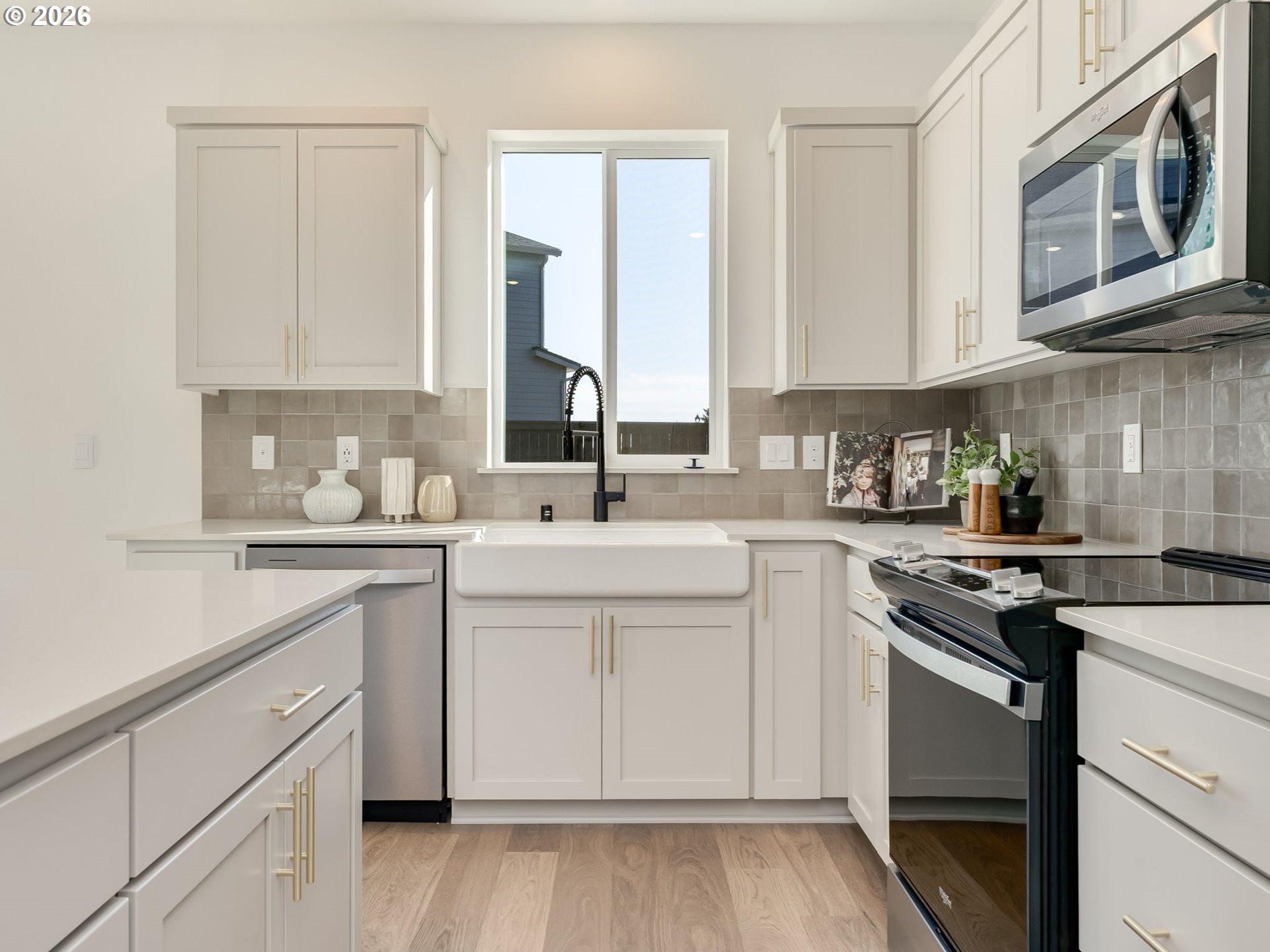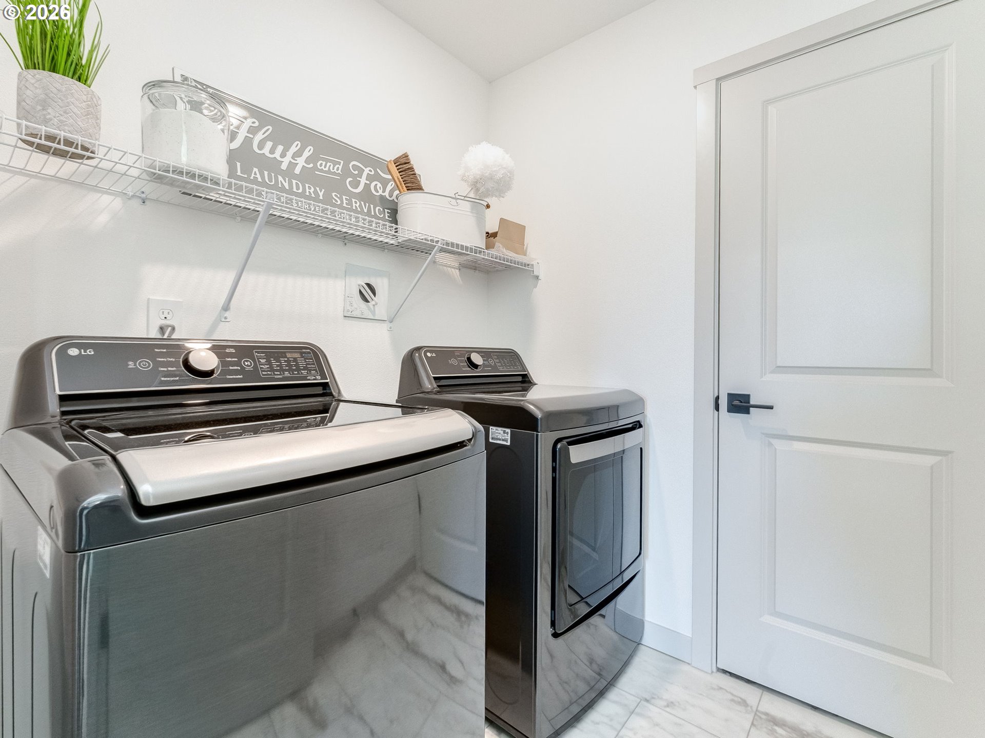 Move in Ready! Special interest rate on a 30-year fixed loan AND a closing cost credit with use of sellers preferred lender! This beautiful corner lot 2-story home offers 5 bedrooms, 2.75 bathrooms and a 2-car attached garage. It has a bedroom and 3 /4 bath on the main level. The sparkling great room is the perfect space to entertain, with a sliding glass door out to the patio to the landscaped back yard. The cute country kitchen is complete with a farmhouse sink, a walk-in pantry, and an island with a breakfast bar, refrigerator. A floor-to-ceiling fireplace with a shiplap hearth in the living area warms the room on chilly evenings. Wander upstairs to find 4 bedrooms surrounding the convenient laundry room with washer/dryer included. The primary suite sports an attached bath with a double vanity and a walk-in closet. Residents of Highland Terrace will attend La Center’s schools. Commute north or south easily via I-5. Enjoy La Center’s many outdoor spaces, including several parks, walking trails, and conveniently located near the Lewis River. Highland Terrace has its own pocket park for homeowners to use as well. A 10-year limited warranty and smart features are included! Photos are of the actual home, staging furniture not included in sale.