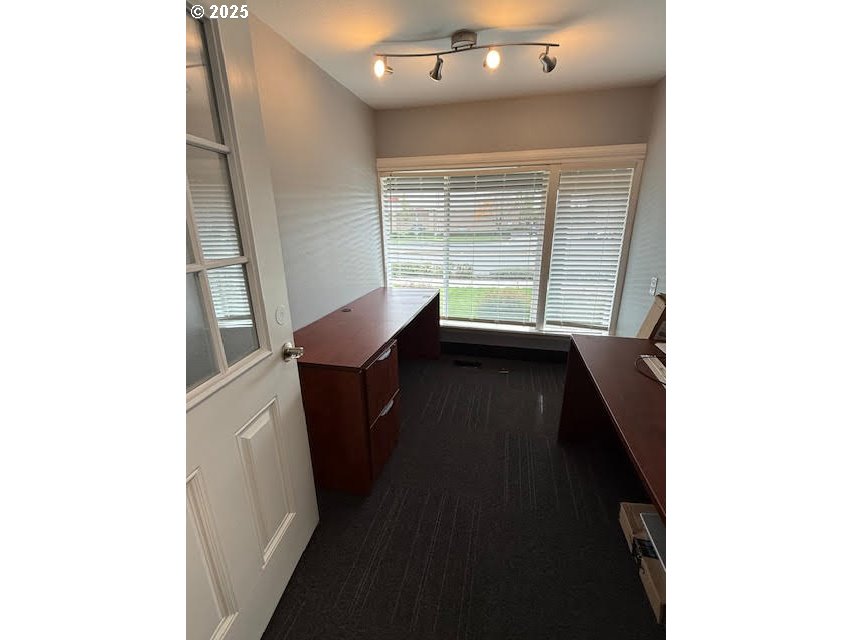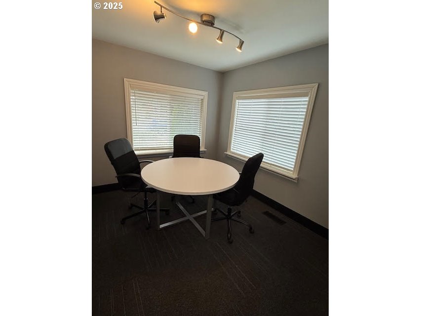 Renovated in 2023, this commercial property features a contemporary interior layout. The space includes six private offices, a reception area, shared conference room, private restroom, and a dedicated break room. Perfect for a variety of professional uses.
