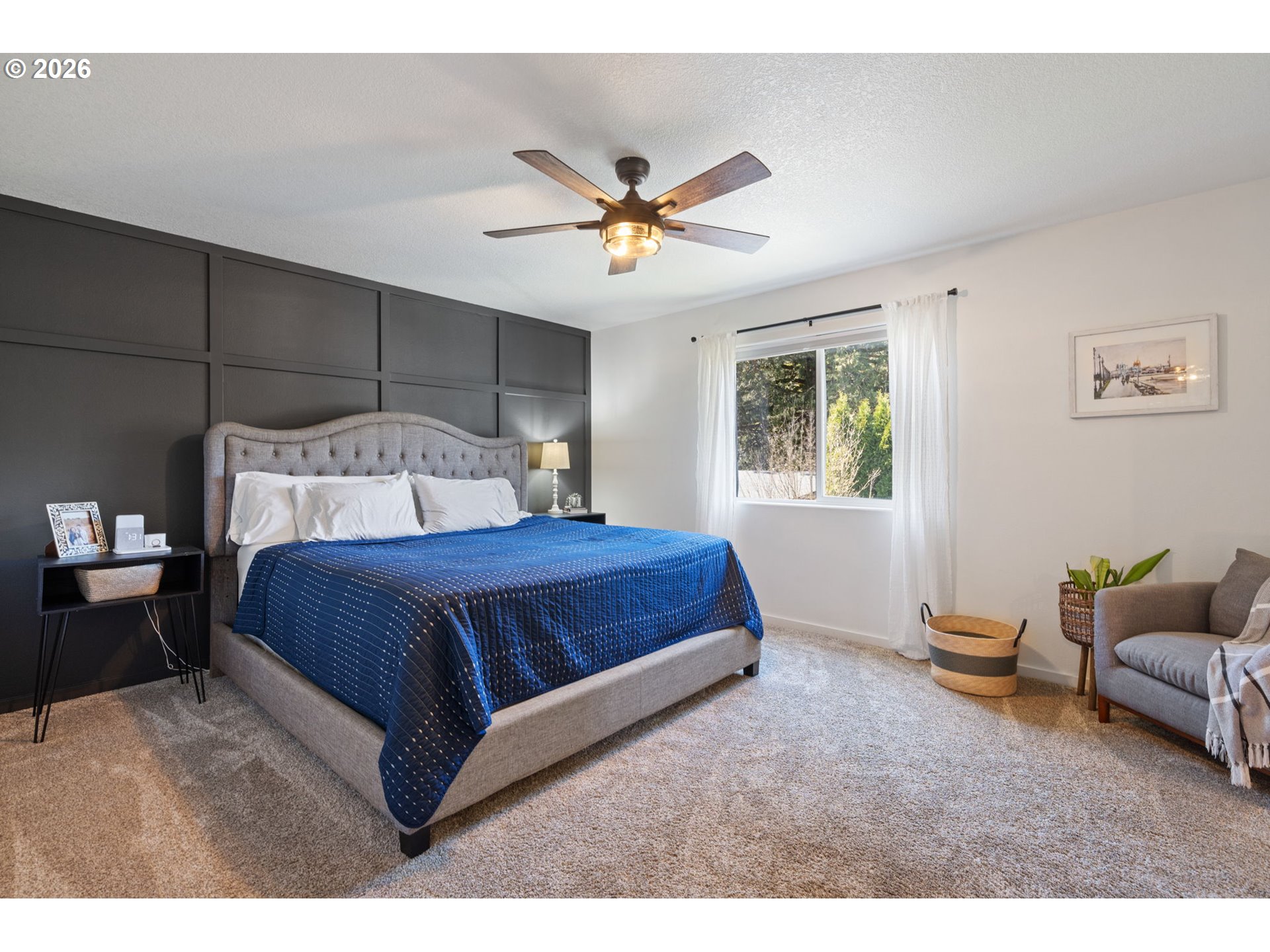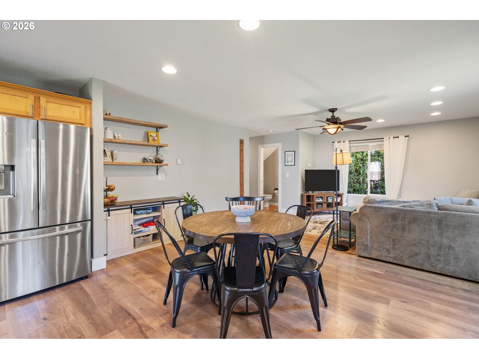 One of the best landscaped yards in Yacolt! Raised garden beds, hydrangeas, blueberry bushes covered patio, sprinklers and low voltage lighting. New roof in 2025 (nearly all new sheathing AND transferrable warranty), new exhaust vents and venting out of the attic. New carpet in 2024, LVT floors. Both bathrooms have new vanities, LVT flooring, new light fixtures and mirrors. 2023 Kitchen appliances replaced. Ceiling fans in every bedroom. Primary suite features accent wall, attached bathroom with walk in shower, separate water closet, and walk in closet. Upstairs Den/office makes a great hideaway! All of the included extras: Above ground pool, play structure, shed, Refrigerator.