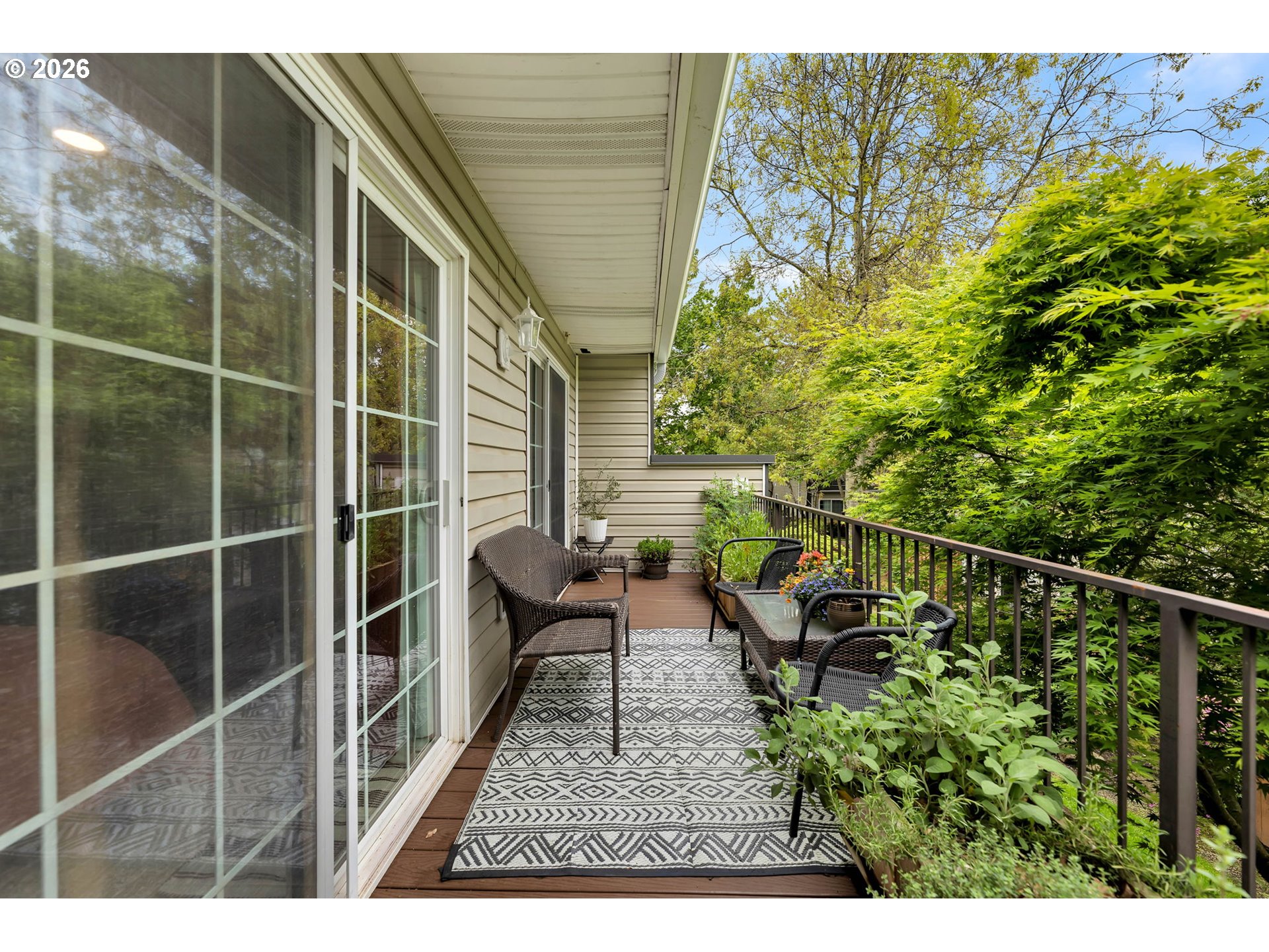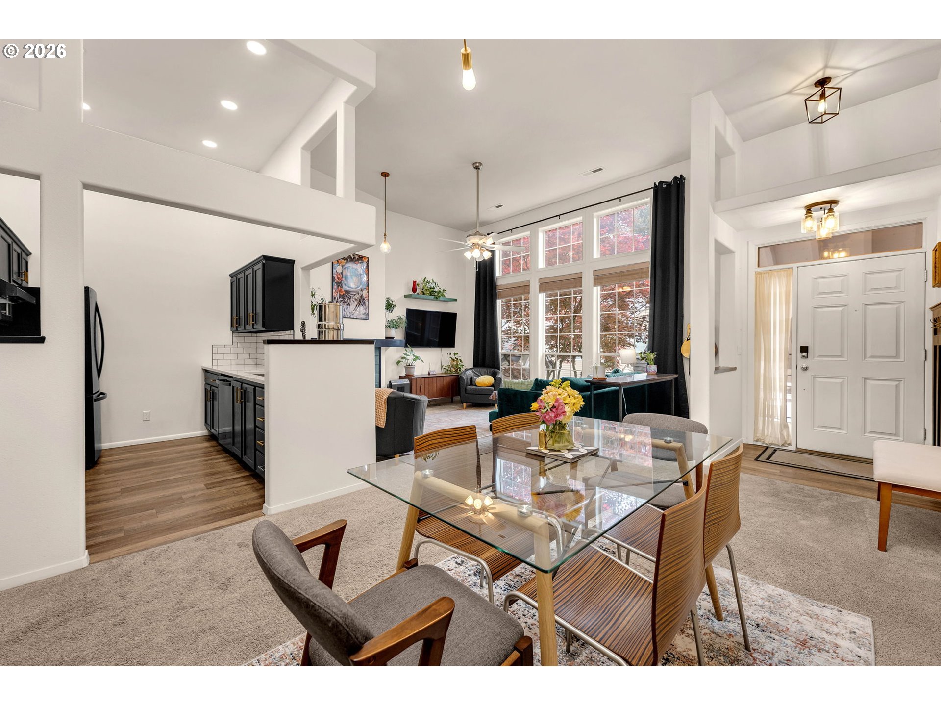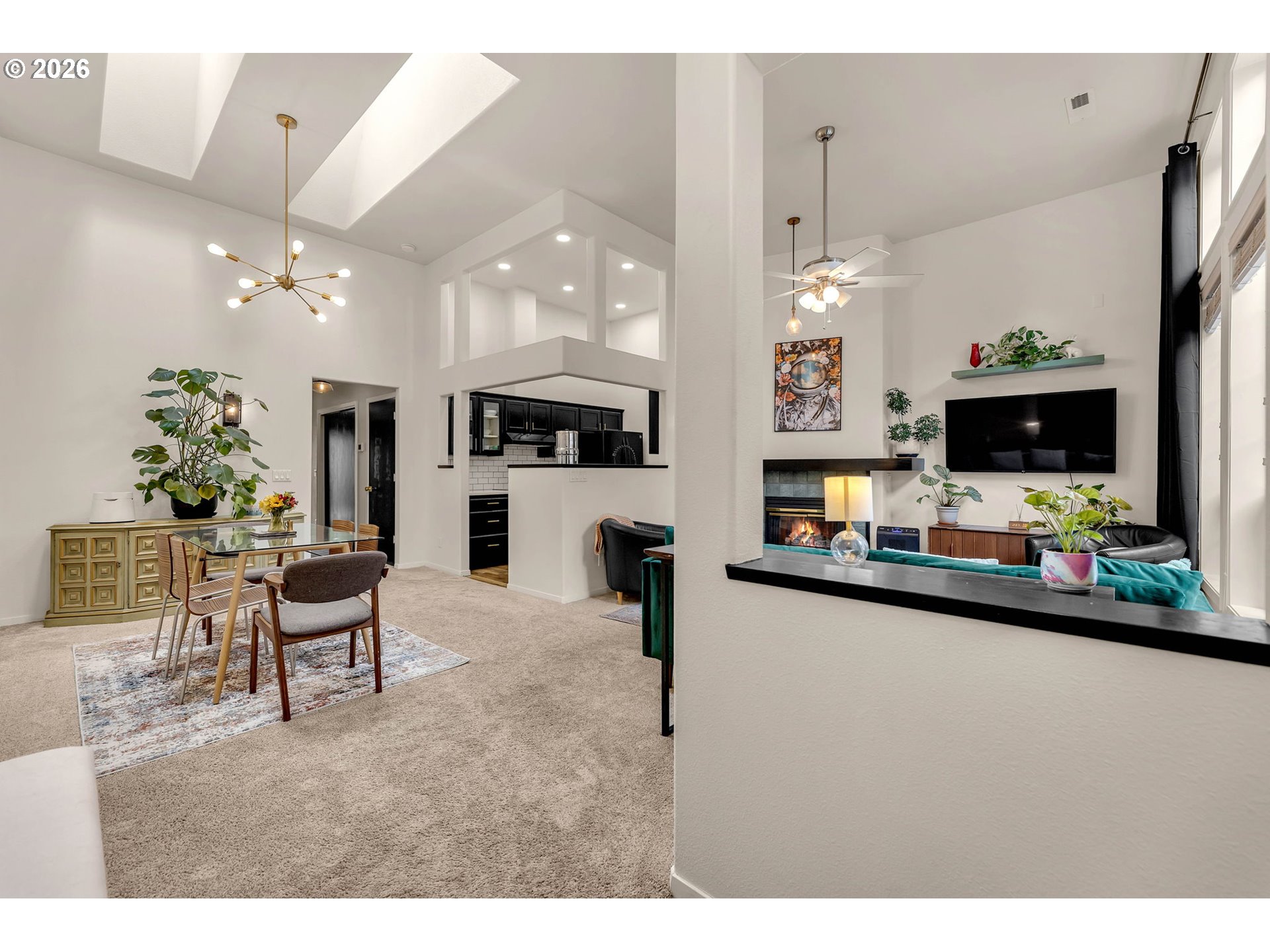 Step into this beautifully updated condo located in a gated community, featuring soaring ceilings and an abundance of natural light that creates an open, airy feel throughout. The thoughtfully upgraded interior showcases quartz countertops in every space, complemented by added recessed lighting and fresh interior paint for a modern, polished look. The kitchen and bathrooms have been tastefully updated and feature durable LVP flooring, while a cozy gas fireplace anchors the living area. Both bedrooms are generously sized and include walk-in closets, offering ample storage and comfort. Recent exterior improvements—including a new roof, gutters, exterior lights, and skylights—provide peace of mind, while the new Trex deck is perfect for relaxing or entertaining. The extra-wide garage offers additional storage space, a rare and valuable feature. Ideally located close to the freeway, shopping, dining, parks, and schools, this home combines convenience, security, and style with everyday functionality. A must-see property that’s move-in ready and designed for easy living.
