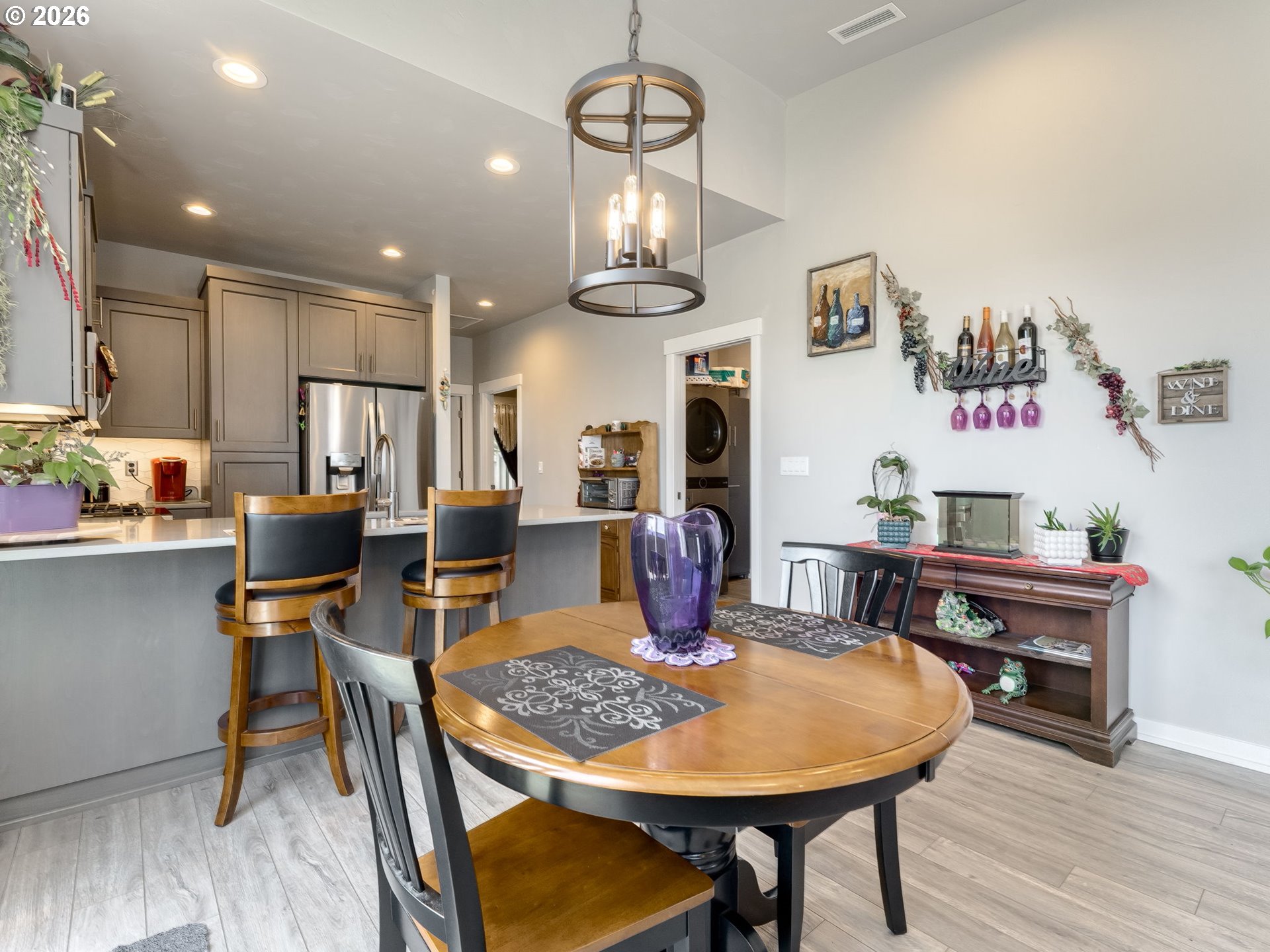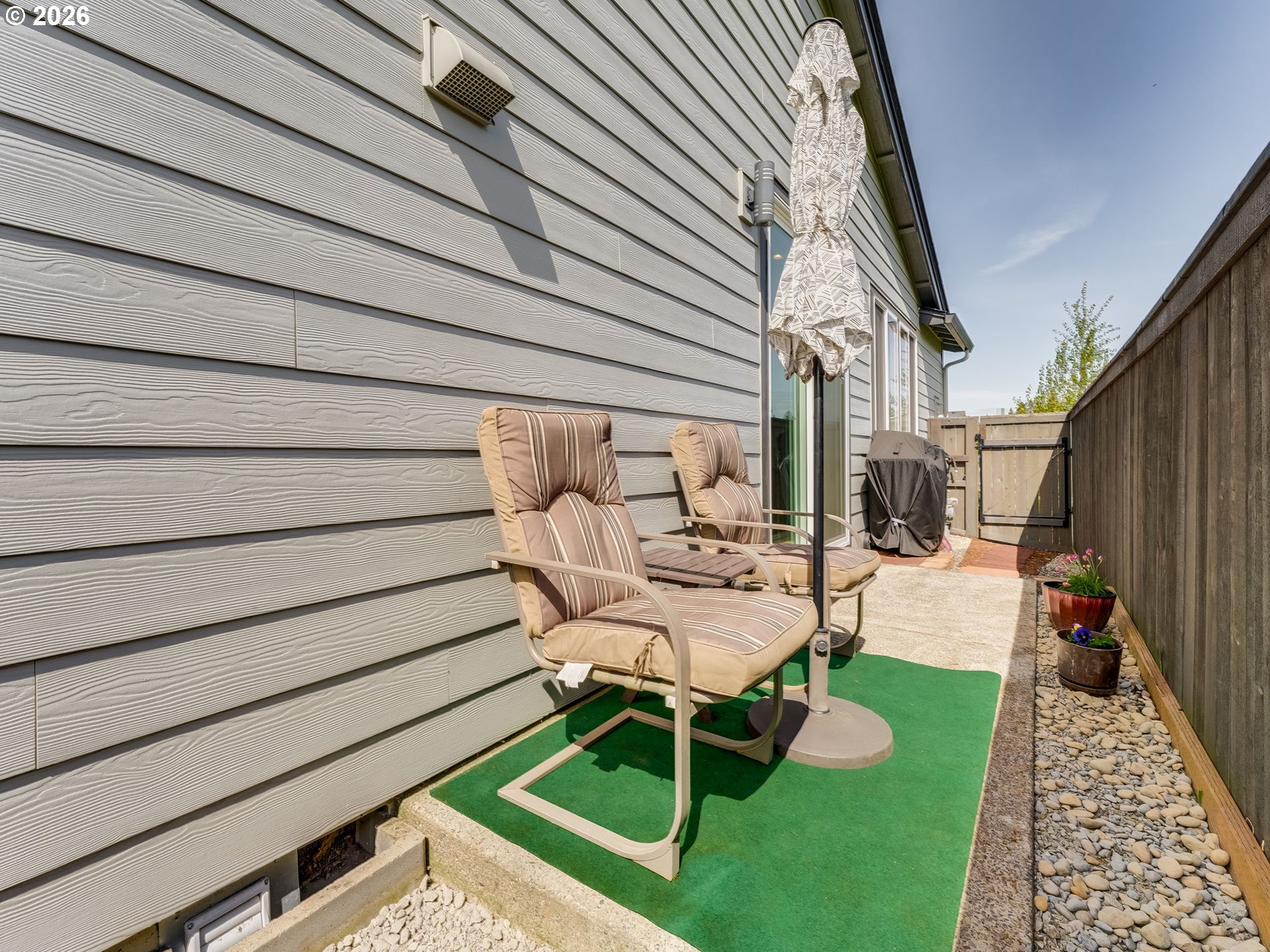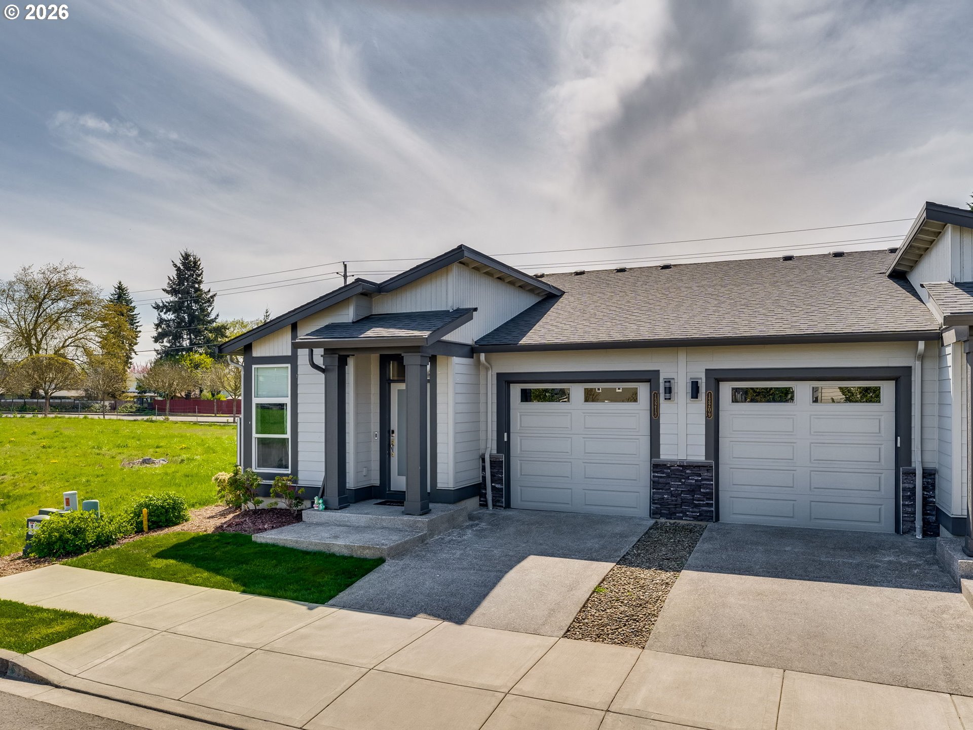 (503) 893-8874Welcome to this 1-level open concept attached home built in 2021 in a great community with outdoor pool, party room and nearby walking paths! The spacious great room has vaulted ceilings and ample kitchen which includes gas stove & beautiful quartz countertops. Ceiling fans and A/C have been added for your year-round comfort. The generous Primary Suite includes sliding door to the easy maintenance fenced back yard with a pergola covered patio and new turf! In addition to the community amenities, the HOA covers front yard landscaping & exterior maintenance.