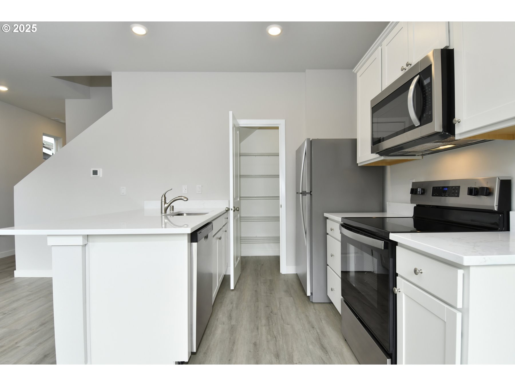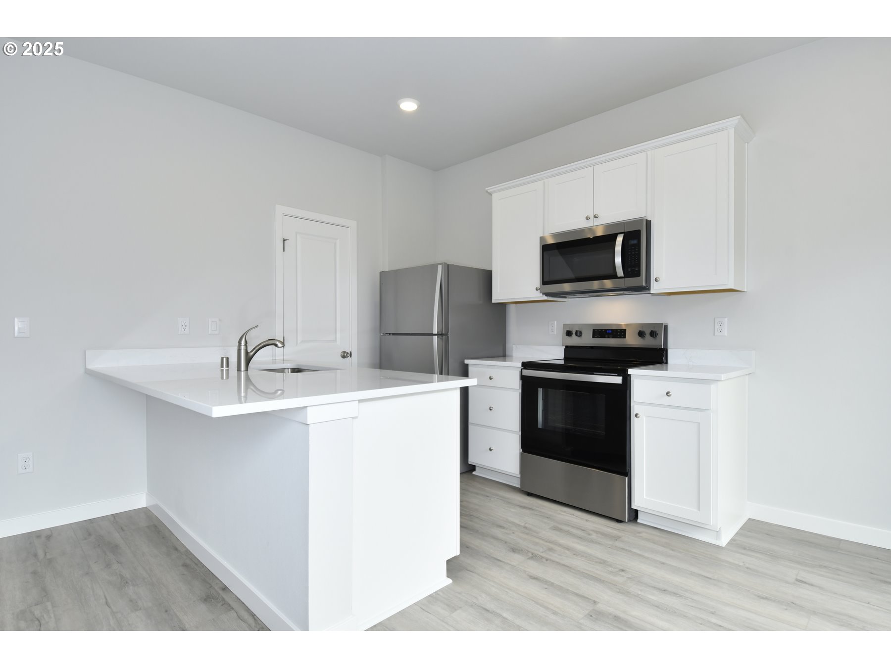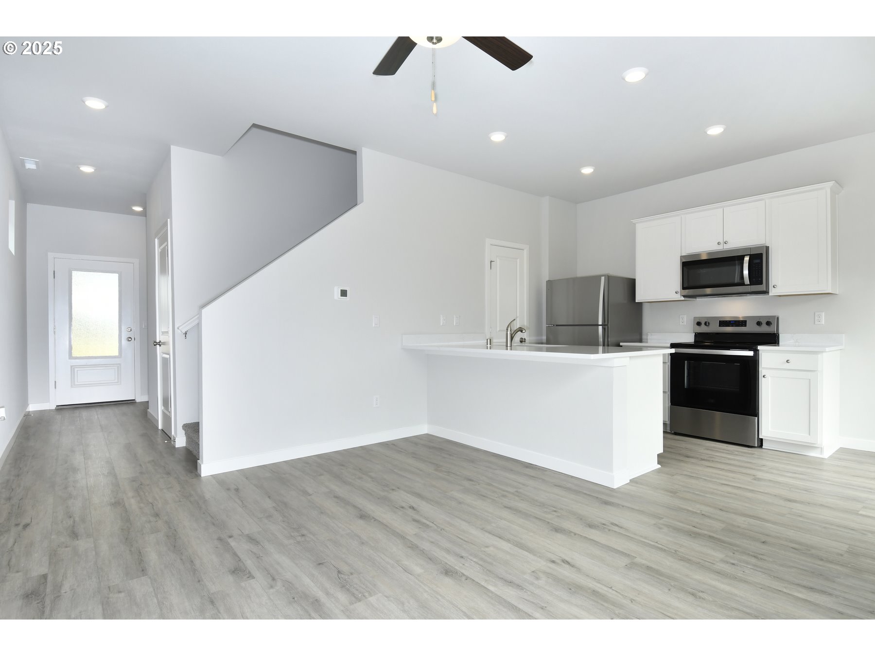 Ideal for those who love to entertain, this thoughtfully designed home showcases an open-concept layout with a spacious living room, modern kitchen, and elegant dining area. The upgraded kitchen is a true centerpiece, offering sleek quartz countertops, ample cabinetry, and a large breakfast bar perfect for casual gatherings. The owner's suite is a peaceful retreat, featuring a luxurious bathroom with a walk-in shower, stylish vanity, and generous walk-in closet. Two additional bedrooms offer flexible options for family, guests, or a home workspace.