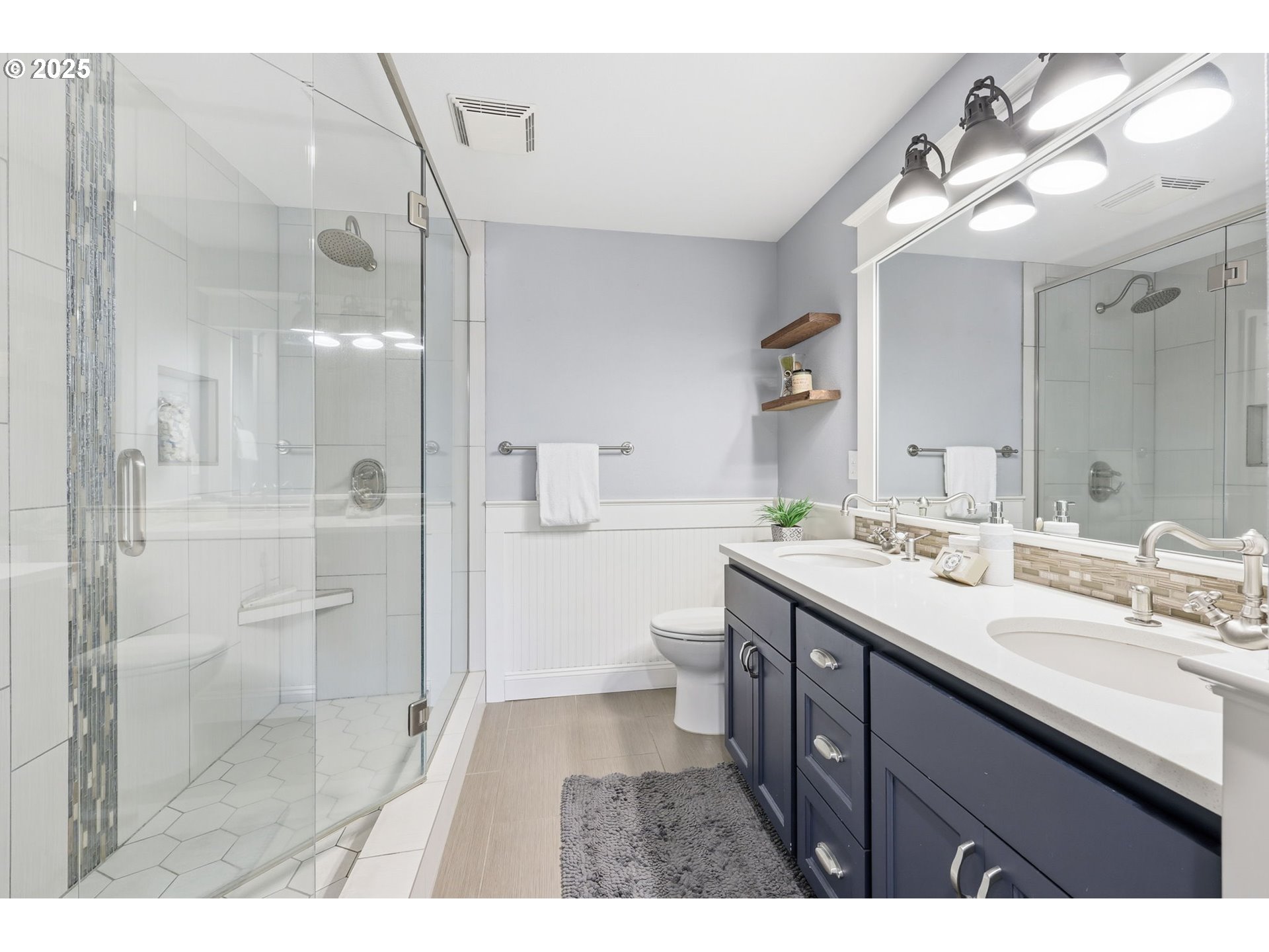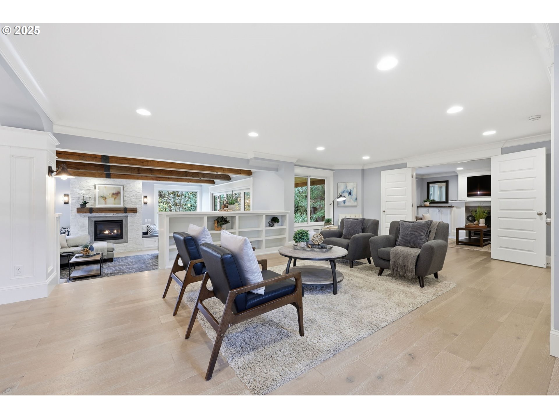 Rare opportunity for a remodeled, high-end WA estate with over $200K in post-2018 upgrades! This home offers discerning buyers the ultimate turn-key luxury experience. Enjoy a newly added, custom Chef's Kitchen featuring top-tier Viking appliances including double ovens, impressively large sub-zero fridge, new countertops including am oversized central island, instant-hot water, large pantry, soft close cabinets/drawers and a recirculation system. The living space seamlessly transitions to the outdoors via a stunning accordion glass door to the private patio—the perfect set up for entertaining! The infrastructure features a 3-Zone AC System, dedicated primary suite climate control, and heated primary bathroom floors. High quality-design features throughout the home include custom wood beam ceilings pulled from the Willamette River, with the iron work custom-forged by a former Forged in-Fire winner! The private Primary Suite is a true spa-inspired sanctuary, with a large sitting room, skylights, and a luxurious walk-through shower with dual rainfall shower heads and features a generous walk-in closet space. All of this is sitting on a spacious near-acre lot with a beautifully landscaped yard, providing ample room to gather, garden, or simply unwind. Automotive and hobby enthusiasts will be thrilled by the 5-Car Garage, which includes dedicated covered RV parking and a large, versatile workshop mezzanine space above. This is one you simply must visit to experience the wonderment of!