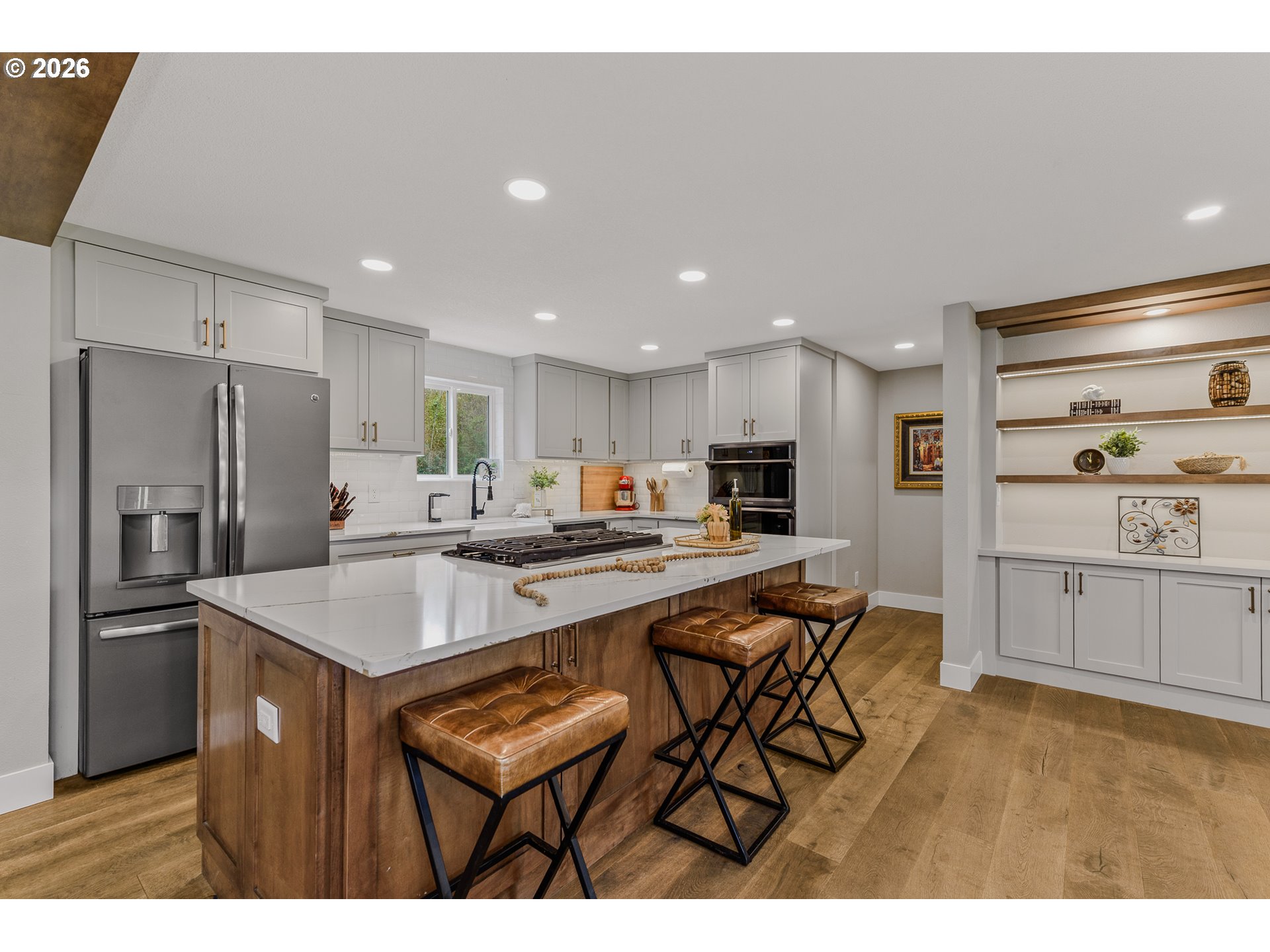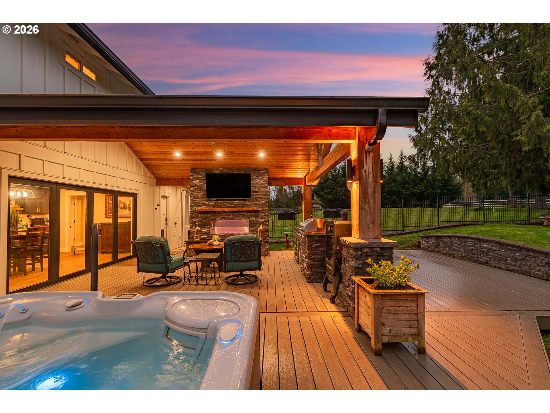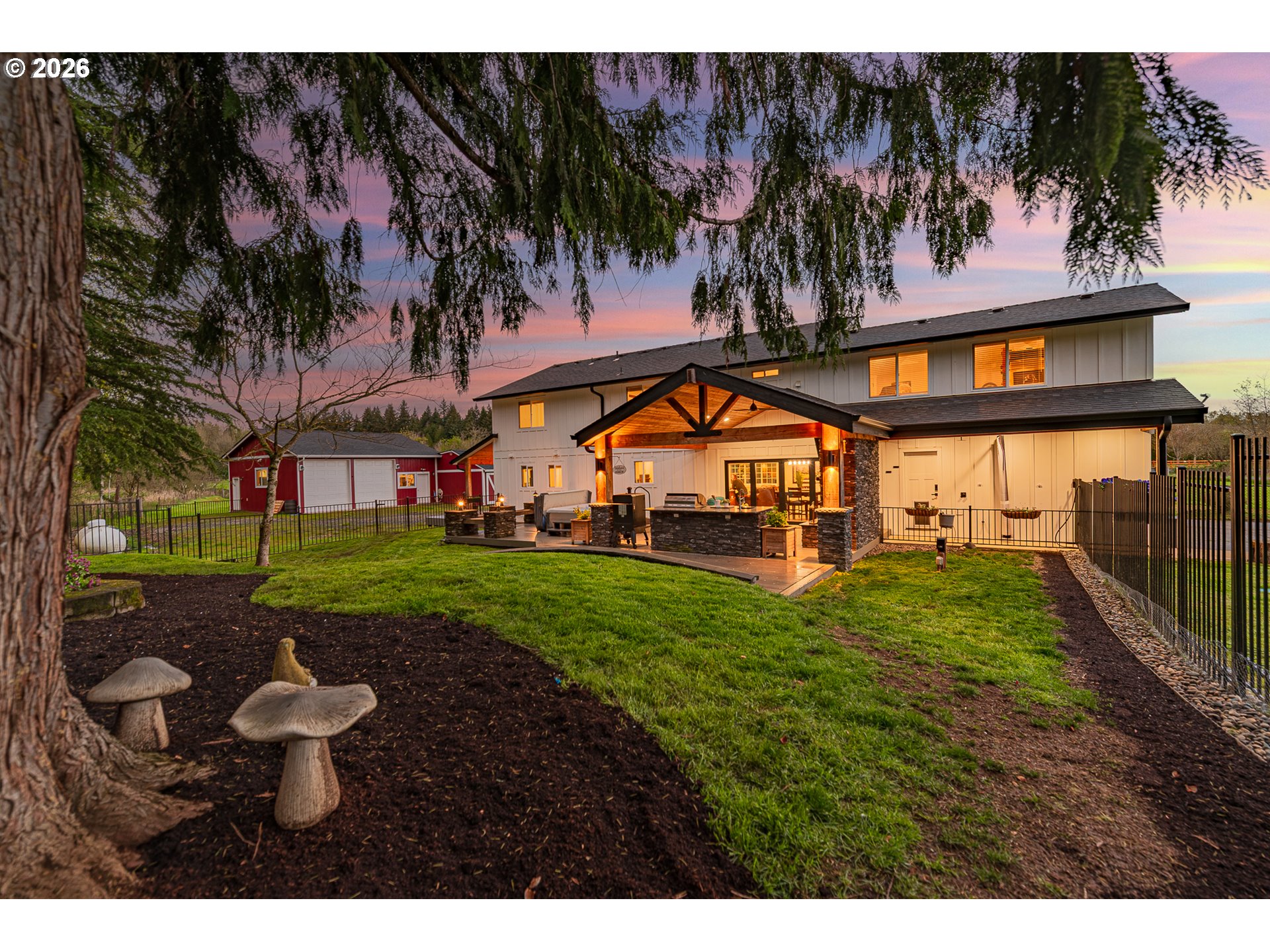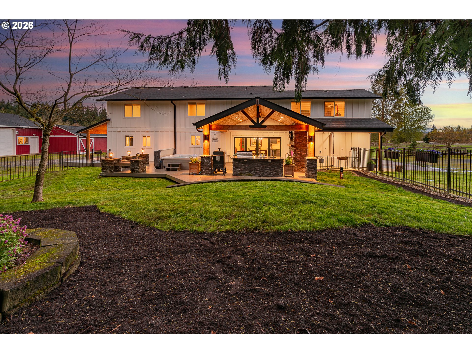 (503) 893-8874Situated on a 1.44-acre corner lot, this beautifully remodeled and expanded home offers 5 bedrooms, including two primary suites, and 4.5 bathrooms. The layout includes a main-level office, a spacious upstairs bonus room, and convenient utility rooms on both levels. The kitchen features a large island, gas appliances, and flows seamlessly into the dining area. The main-level primary suite offers a walk-in closet, additional shoe closet, and a spacious bath with soaking tub, walk-in shower, and double sinks.Designed for entertaining, the home opens to an impressive outdoor living space with a 12-foot panoramic door, covered cedar wrap-around porch, gas fireplace, outdoor kitchen, built-in seating, TV, and an 8-person hot tub, all within a fenced backyard.The property also includes a 900 sq ft insulated shop with power and water, a 2-stall barn, greenhouse, raised garden beds, and two 50-amp RV pads with electric and water hookups. This home offers the perfect blend of comfort, space, and functionality. Don’t miss this opportunity to make it yours!