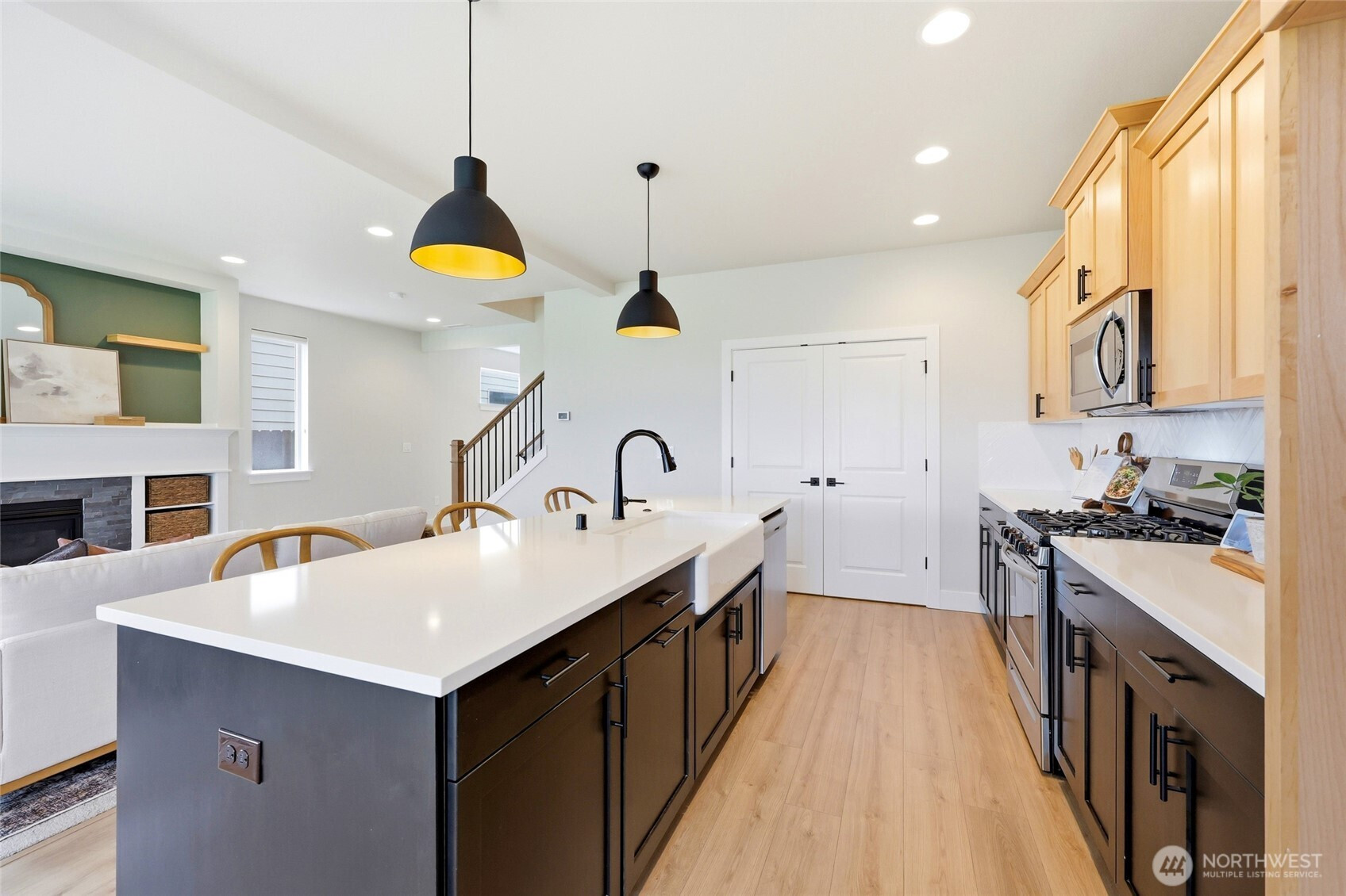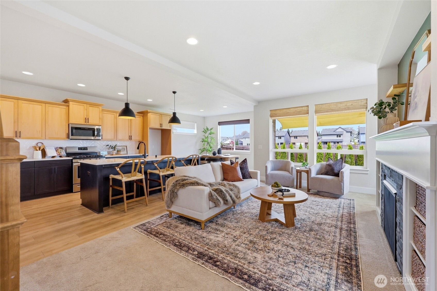 There are homes that ask you to squint a little, to envision yourself into a space that's only halfway there. This isn't one of them. A Pacific Lifestyles build; and in Clark County, that name carries its own distinction and credibility: thoughtful construction, true craftsmanship, long-term durability. Conscientious sellers have taken care of it since, evident in every room. The kitchen earns attention without demanding it. A gas range, custom finishes that read as intentional rather than common, and a walk-in pantry that quietly inspires organization. The details are the kind you notice on move-in day and keep noticing after. Inside, two bonus spaces in addition to four full bedrooms, do what most homes in this price range won't offer you: a proper office nook for focused work, and a generous upstairs landing that stays open to interpretation. Play, study, storage, creative overflow, or some combination that fulfills your needs. Outside, the backyard trades lawn obligation for turf, pristine year-round and maintenance-free by design. A covered patio with an outdoor electric TV mount makes the case, rather persuasively, for hosting. Beyond the property line, a greenspace buffer extends the sense of the lot without extending the upkeep, lending the yard a quietness and privacy that feels rare. The practicalities are already sorted: an EV charger, an extended driveway that makes off-street parking a given rather than a negotiation.