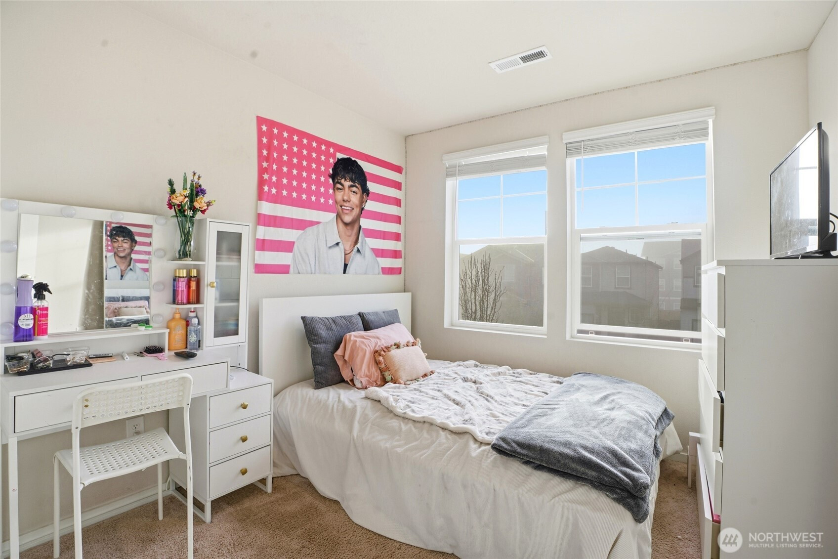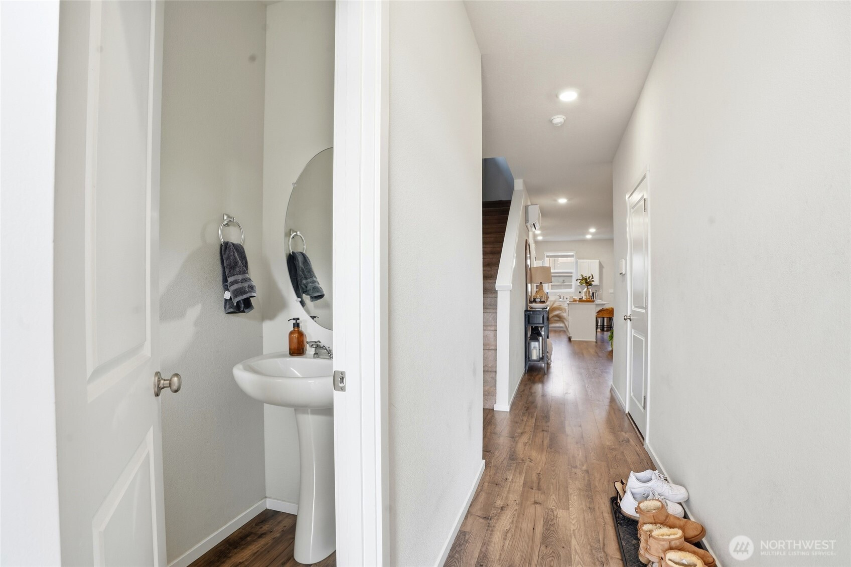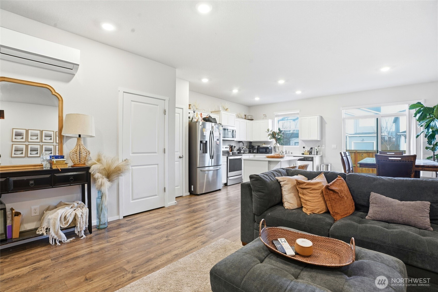 Refined and move-in ready, this beautifully maintained 3-bedroom, 2.5-bath residence offers a sought-after floor plan filled with natural light. The designer kitchen features crisp white cabinetry, quartz countertops, stainless steel appliances, and a generous pantry, seamlessly flowing into the dining area and great room for effortless entertaining. Laminate flooring enhances the main level, complemented by smart home technology, air conditioning, and a fully fenced outdoor space. Ideally situated near premier shopping, dining, and major commuter routes, this home delivers both sophistication and convenience.