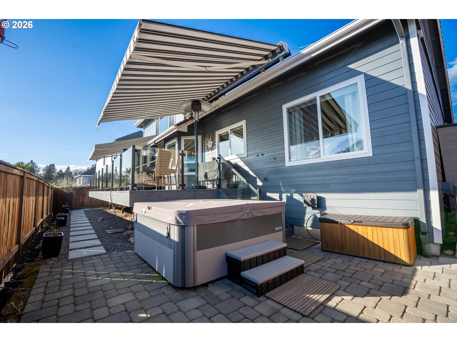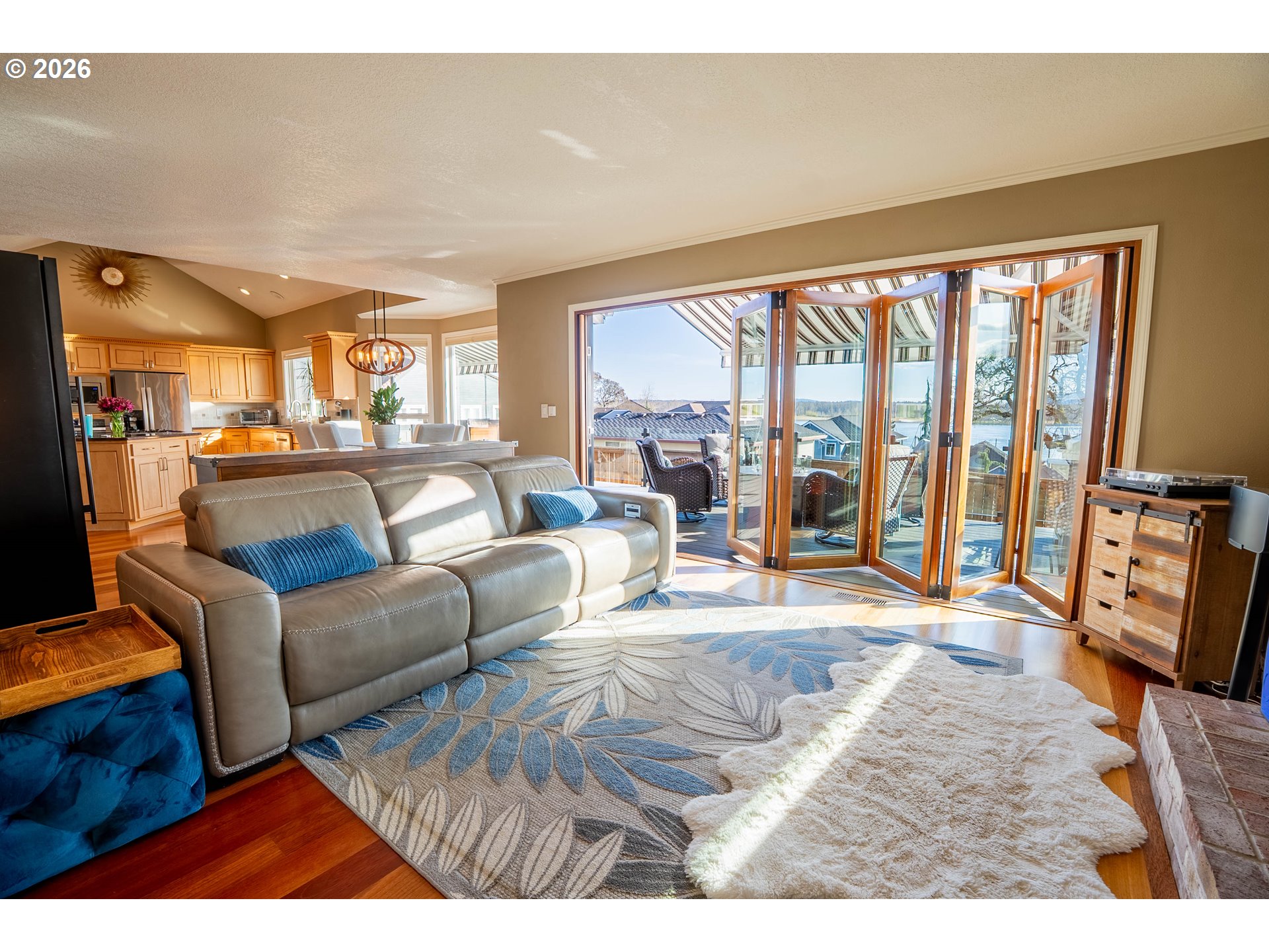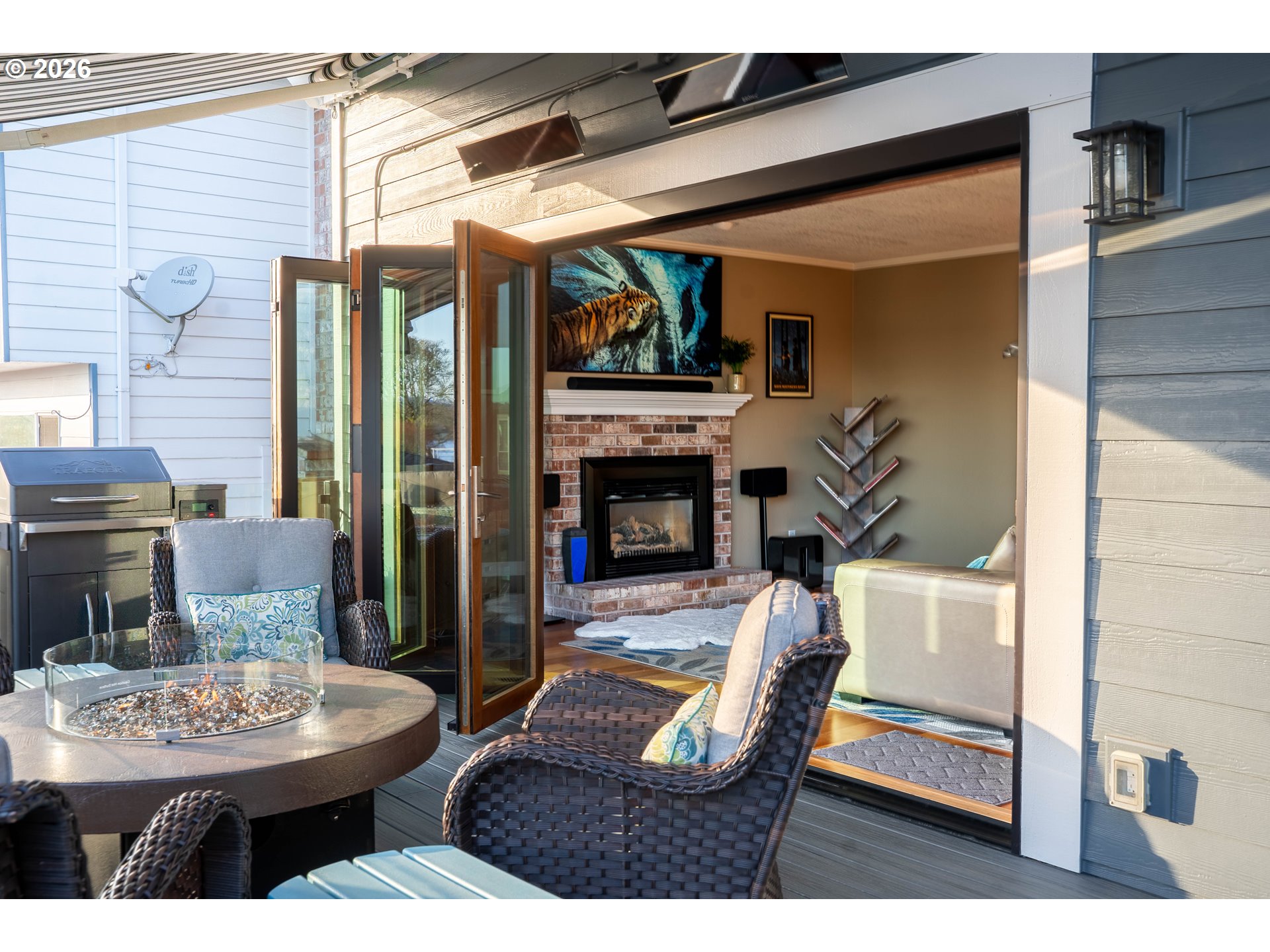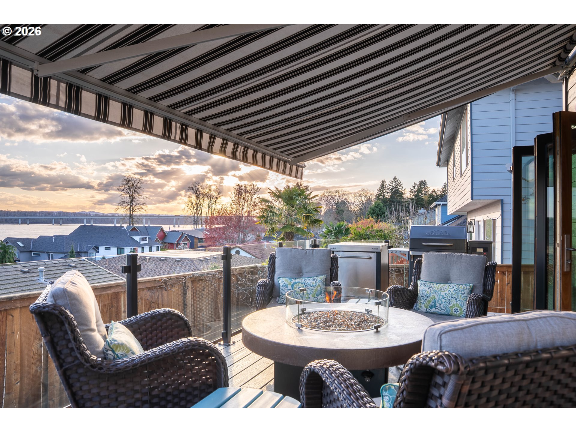 Experience the pinnacle of Pacific Northwest living in the gated community of Steamboat Landing. This meticulous 3-bedroom, 2.5-bath home offers a rare lifestyle in the Portland/Vancouver area: a private beach & marina access, providing a rare gateway to the Columbia River. Sweeping views of the Columbia River. Watch river traffic by day, & the city lights reflecting off the water at night. The heart of the home is a stunning 13-foot Centor 5-panel folding door, creating a indoor/outdoor living space w/420-sq ft composite deck. This outdoor oasis features Bromic electric heaters, gas firepit, & motorized awnings w/wind sensors. With five natural gas hookups & added electrical outlets, the deck is perfect for sunsets over the river. Fresh interior & exterior paint, accented by a custom sliding barn door & a newly remodeled bar hutch. Gourmet kitchen is equipped w/Bosch dishwasher, KitchenAid ice maker, & custom coffee nook. The primary suite features stunning views, & heated tile floors in the bathroom. Upgraded systems include a Lennox Elite HVAC system, high-efficiency heat pump, Navien tankless water heater, & GE water treatment system. The garage includes epoxy flooring, New Age custom cabinetry, & EV charging station. Yard features low-maintenance hardscaping, a serene fountain, & private Aquaterra hot tub. Residents enjoy a lifestyle defined by private beach days and community marina access in a secure environment. A pre-listing home inspection has also been completed.