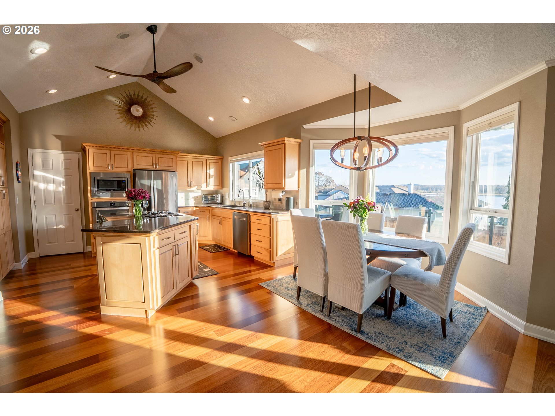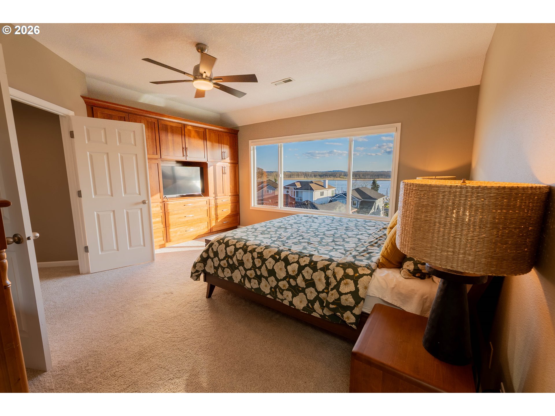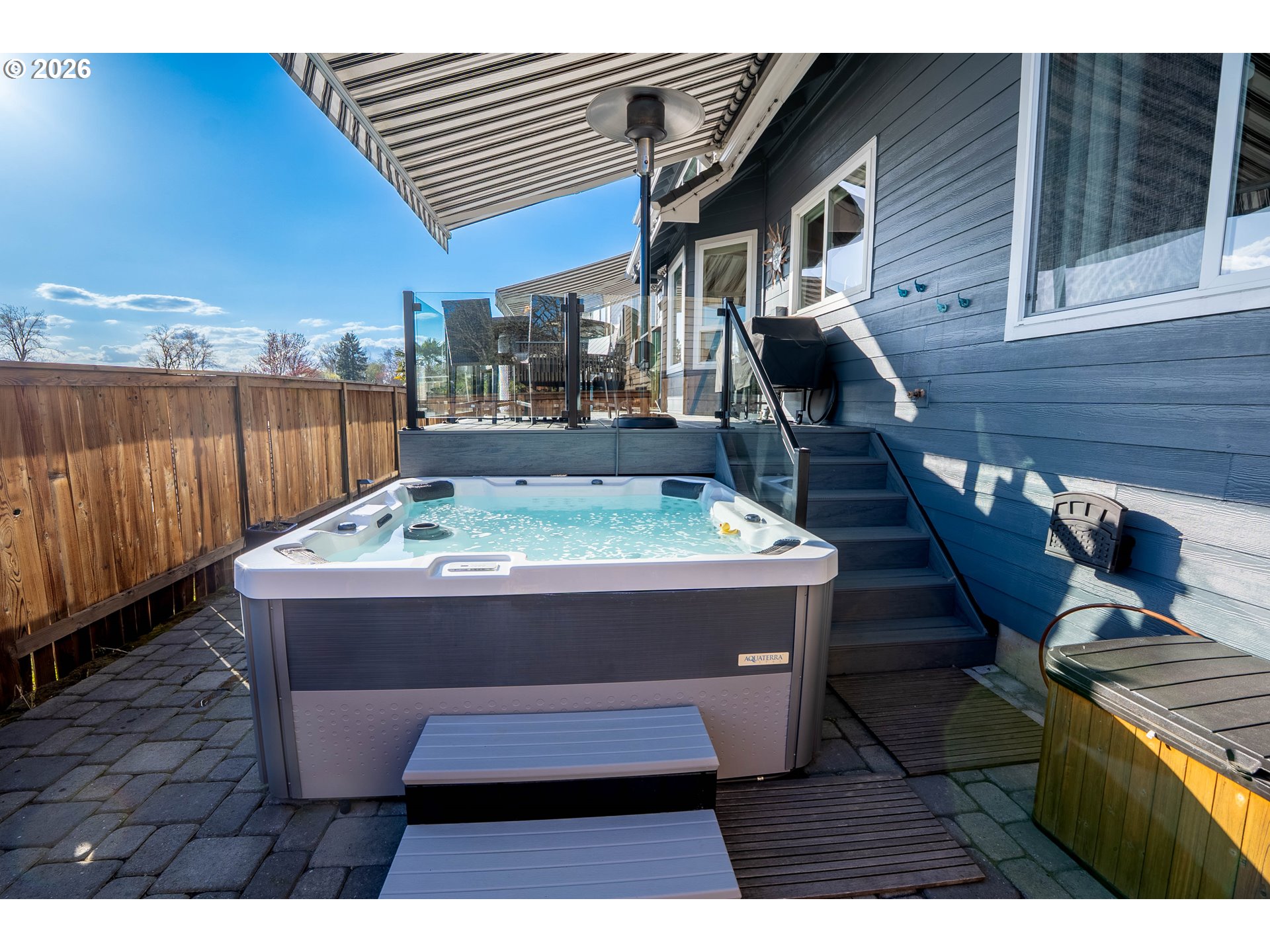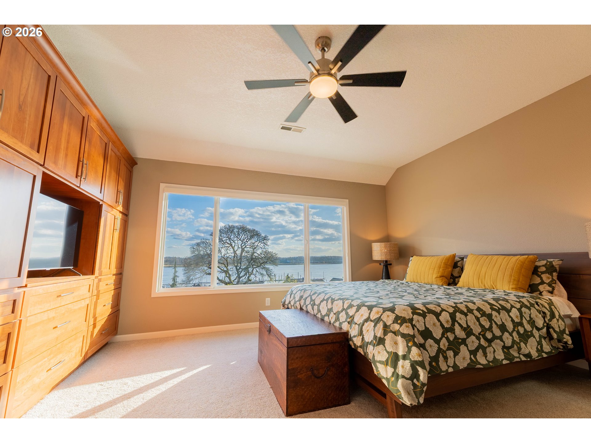 Experience the pinnacle of Pacific Northwest living in the gated community of Steamboat Landing. This meticulous 3-bedroom, 2.5-bath home offers a rare lifestyle in the Portland/Vancouver area: a private beach & marina access, providing a rare gateway to the Columbia River. Sweeping views of the Columbia River. Watch river traffic by day, & the city lights reflecting off the water at night. The heart of the home is a stunning 13-foot Centor 5-panel folding door, creating a indoor/outdoor living space w/420-sq ft composite deck. This outdoor oasis features Bromic electric heaters, gas firepit, & motorized awnings w/wind sensors. With five natural gas hookups & added electrical outlets, the deck is perfect for sunsets over the river. Fresh interior & exterior paint, accented by a custom sliding barn door & a newly remodeled bar hutch. Gourmet kitchen is equipped w/Bosch dishwasher, KitchenAid ice maker, & custom coffee nook. The primary suite features stunning views, & heated tile floors in the bathroom. Upgraded systems include a Lennox Elite HVAC system, high-efficiency heat pump, Navien tankless water heater, & GE water treatment system. The garage includes epoxy flooring, New Age custom cabinetry, & EV charging station. Yard features low-maintenance hardscaping, a serene fountain, & private Aquaterra hot tub. Residents enjoy a lifestyle defined by private beach days and community marina access in a secure environment. A pre-listing home inspection has also been completed.