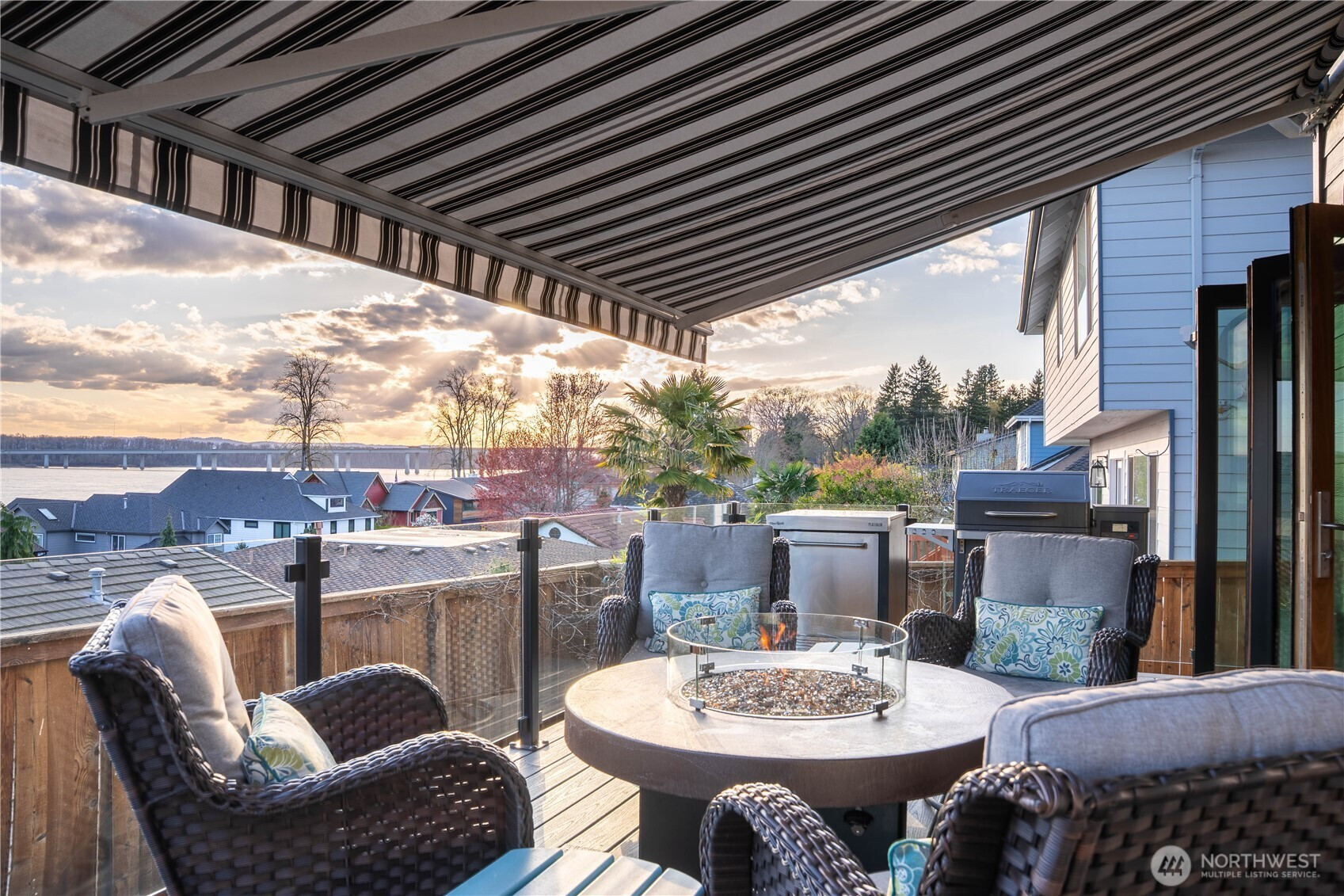 Experience the pinnacle of Pacific Northwest living in the gated community of Steamboat Landing. This meticulous 3-bedroom, 2.5-bath home offers a rare lifestyle in the Portland/Vancouver area: a private beach & marina access, providing a rare gateway to the Columbia River. Sweeping views of the Columbia River. Watch river traffic by day, & the city lights reflecting off the water at night. The heart of the home is a stunning 13-foot Centor 5-panel folding door, creating a indoor/outdoor living space w/420-sq ft composite deck. This outdoor oasis features Bromic electric heaters, gas firepit, & motorized awnings w/wind sensors. With five natural gas hookups & added electrical outlets, the deck is perfect for sunsets over the river. Fresh interior & exterior paint, accented by a custom sliding barn door & a newly remodeled bar hutch. Gourmet kitchen is equipped w/Bosch dishwasher, KitchenAid ice maker, & custom coffee nook. The primary suite features stunning views, & heated tile floors in the bathroom. Upgraded systems include a Lennox Elite HVAC system, high-efficiency heat pump, Navien tankless water heater, & GE water treatment system. The garage includes epoxy flooring, New Age custom cabinetry, & EV charging station. Yard features low-maintenance hardscaping, a serene fountain, & private Aquaterra hot tub. Residents enjoy a lifestyle defined by private beach days and community marina access in a secure environment. A pre-listing home inspection has also been completed.
