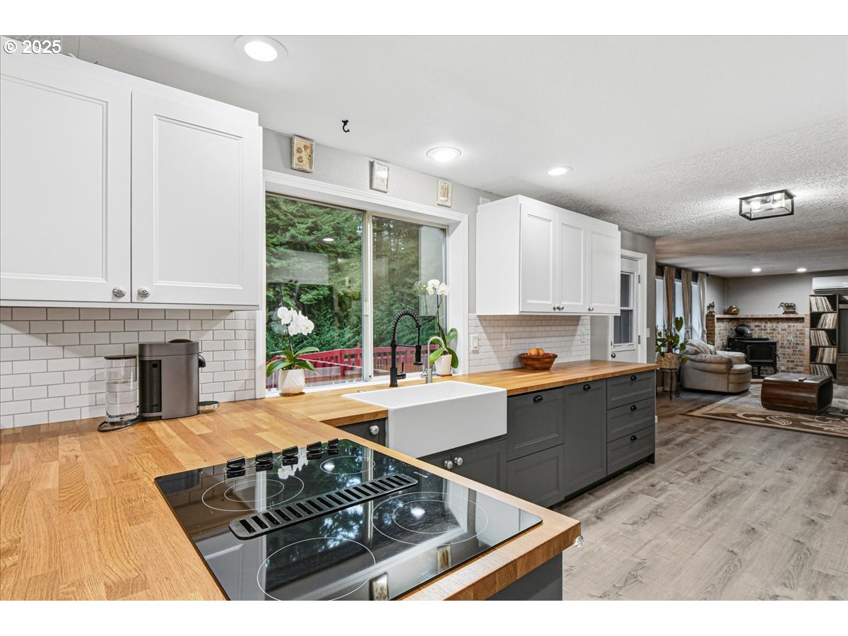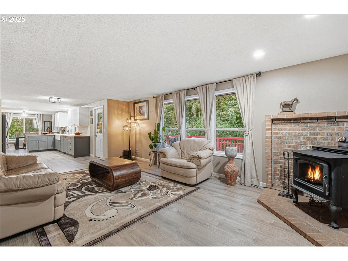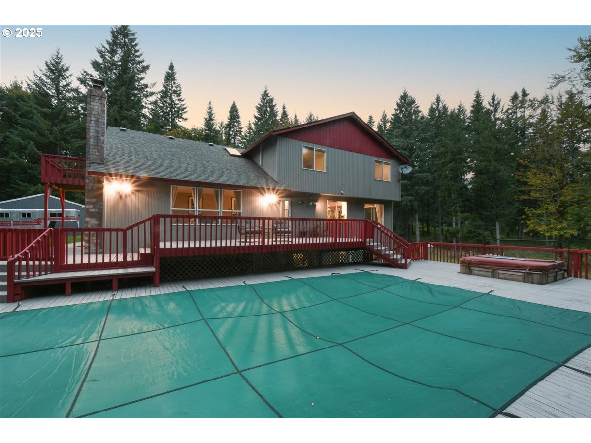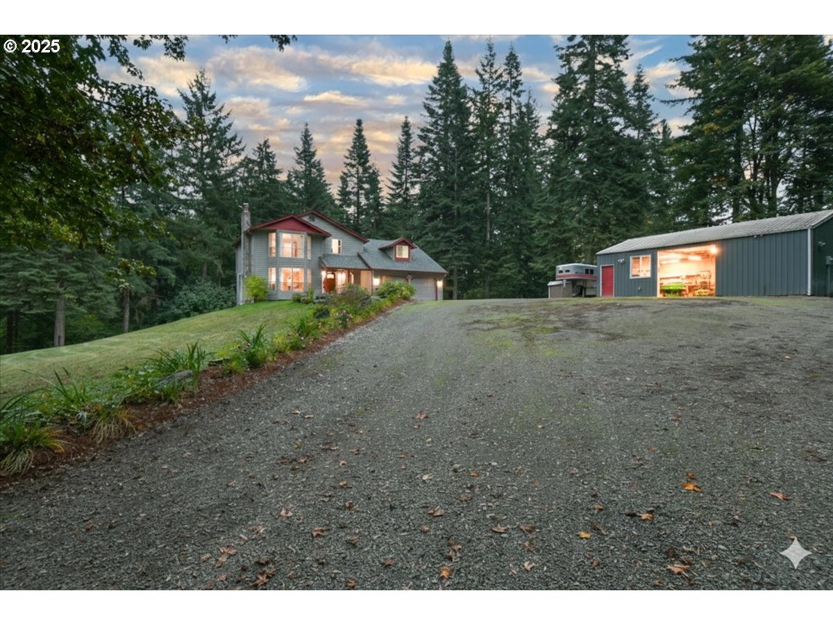 (503) 893-8874I would like to share details about this beautiful Valley View home. This property is nestled among old growth trees on a 5-acre lot, just 10 minutes from the Lewis River Recreation Area. It offers charming views from nearly every room. Floor coverings are Luxury Vinyl Plank Flooring & WW Carpet. The home features a cozy wood-burning fireplace in the living room and wood-burning stoves in both the family room and the downstairs basement. The stunning kitchen includes a farmhouse sink, stainless steel appliances, built-in double ovens, BI glass top stove, butcher block countertops, an eating bar, ample storage & a View. Upstairs, you'll find the primary suite, three additional bedrooms, and an office area. The home spans a total of 3,271 square feet, which includes a partial daylight basement. Note: the laundry room and a half bathroom is located in the basement and is plumbed for a wet bar. Outdoor amenities comprise a spacious deck with a built in pool, hot tub, RV parking, shop, greenhouse, chicken coop, front water feature, 2 car attached garage & an additional 2 car garage in the shop area with an additional storage shed. There is an abundance of firewood all stacked up and ready to go for your three wood burning fireplaces. The property also boasts several key upgrades from 2022, including a new water heater, a Mitsubishi Hyper-Heat system by Intek Corp, security gates, and a new roof on three-quarters of the house. The roof over the garage area is in excellent condition.