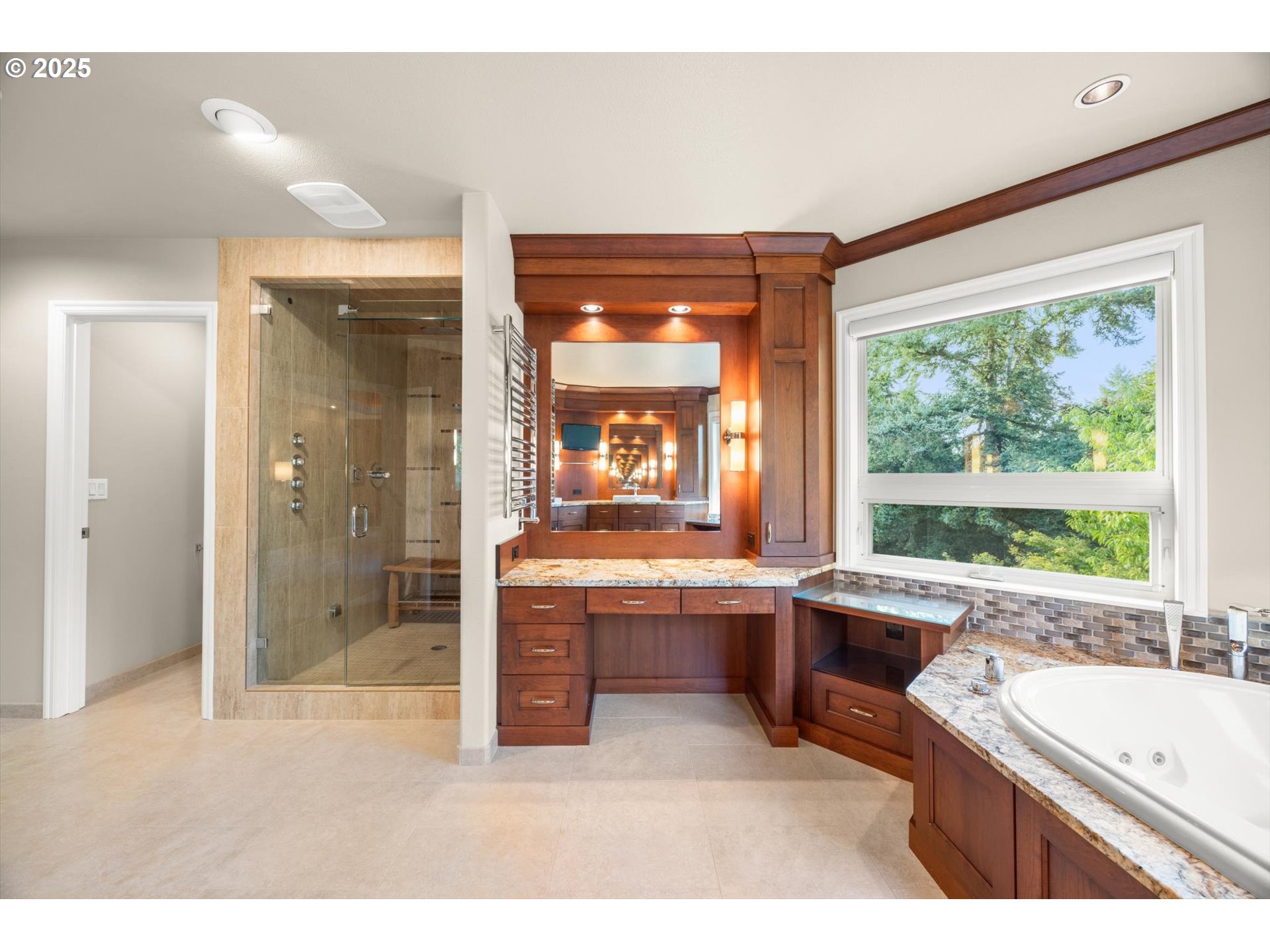 (503) 893-8874Spacious custom-built home in the gated Ashley Heights community of Felida. Enjoy the park-like backyard that affords privacy on 1.29 acres. Double doors open to a grand entry with high ceilings and limestone floors. Large windows fill the home with natural light. Formal dining and living rooms plus a main floor office with built-ins provide elegant and functional spaces. The open kitchen features a gas cooktop, island with eating bar, pantry and stainless appliances. The family room offers a built-in entertainment center and access to a large deck overlooking the backyard. The primary suite includes a gas fireplace, spa-like bath with steam shower, jetted tub, heated tile floors and walk-in closet. Three additional bedrooms, two with en suite baths, and a huge bonus room that could serve as a fifth bedroom. The lower level is perfect for entertaining with a kitchenette, TV room, eating area, Murphy bed and a theater with built-in seating. Additional flexible rooms allow for a gym, storage or garden space. The backyard backs to greenspace and features patios, a fire pit, hot tub, water feature and a fully fenced dog run. Oversized three-car garage with workbench and storage. Mudroom with dog wash plus laundry with Miele washer and dryer. Convenient to shopping, restaurants and Salmon Creek Trail, with excellent schools and a highly desirable community. Gated community - Appointment Only!